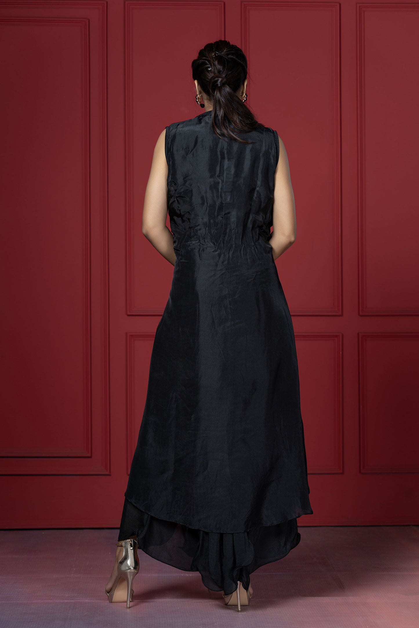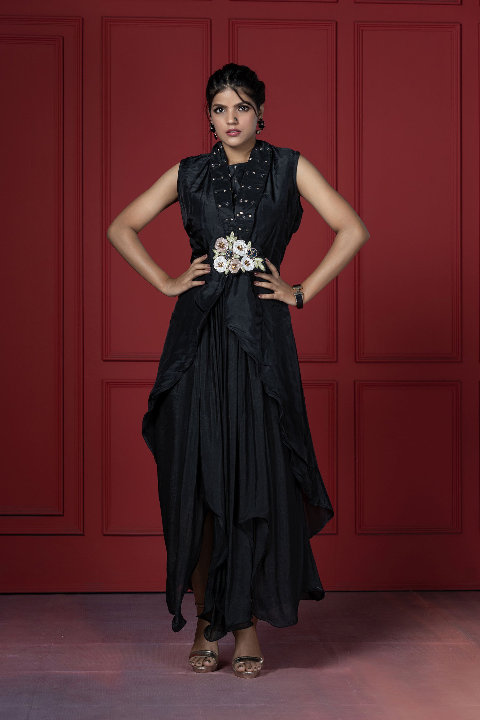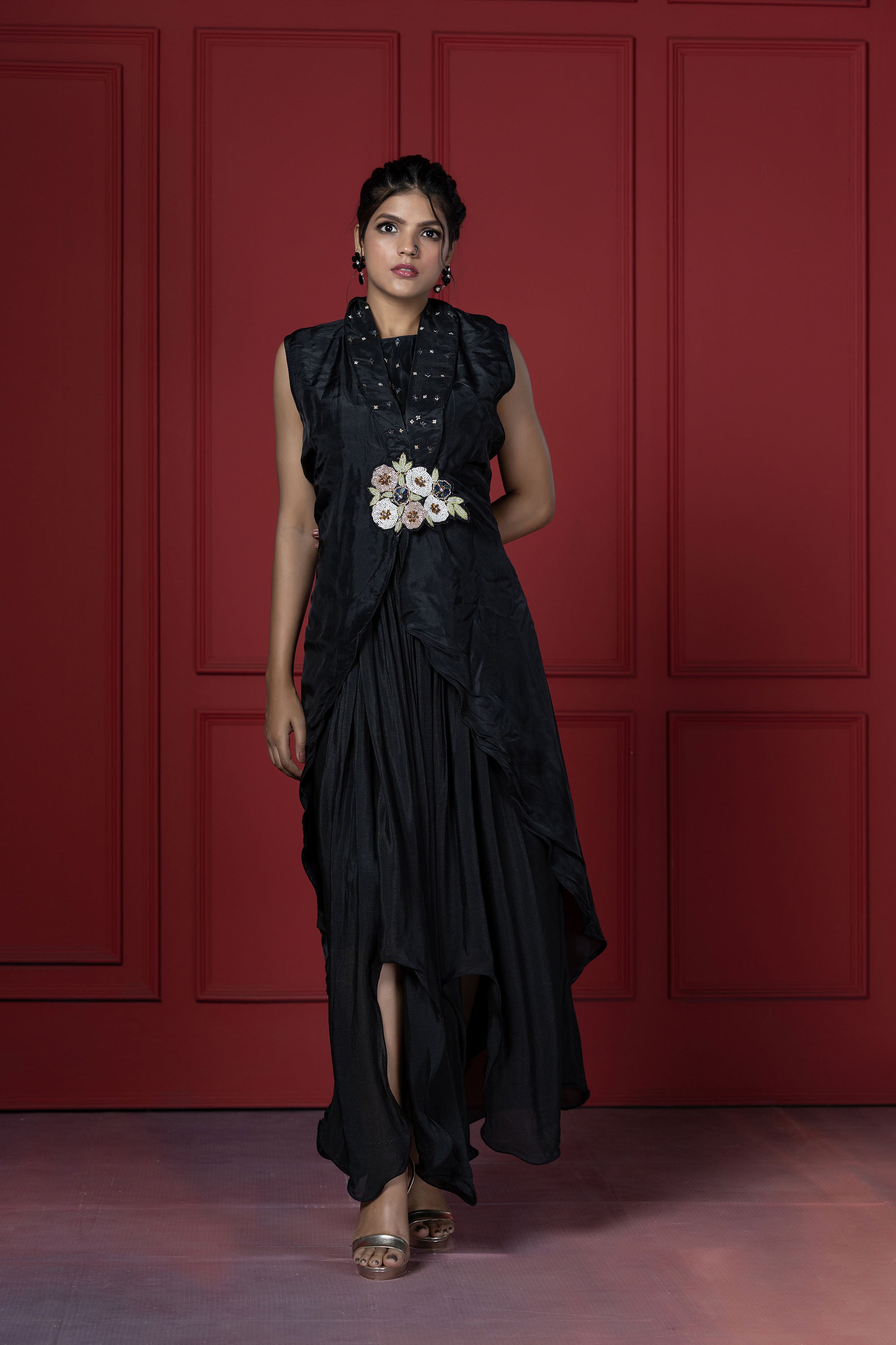 Free flowing gown with flower pattern patchwork embellishing bead work