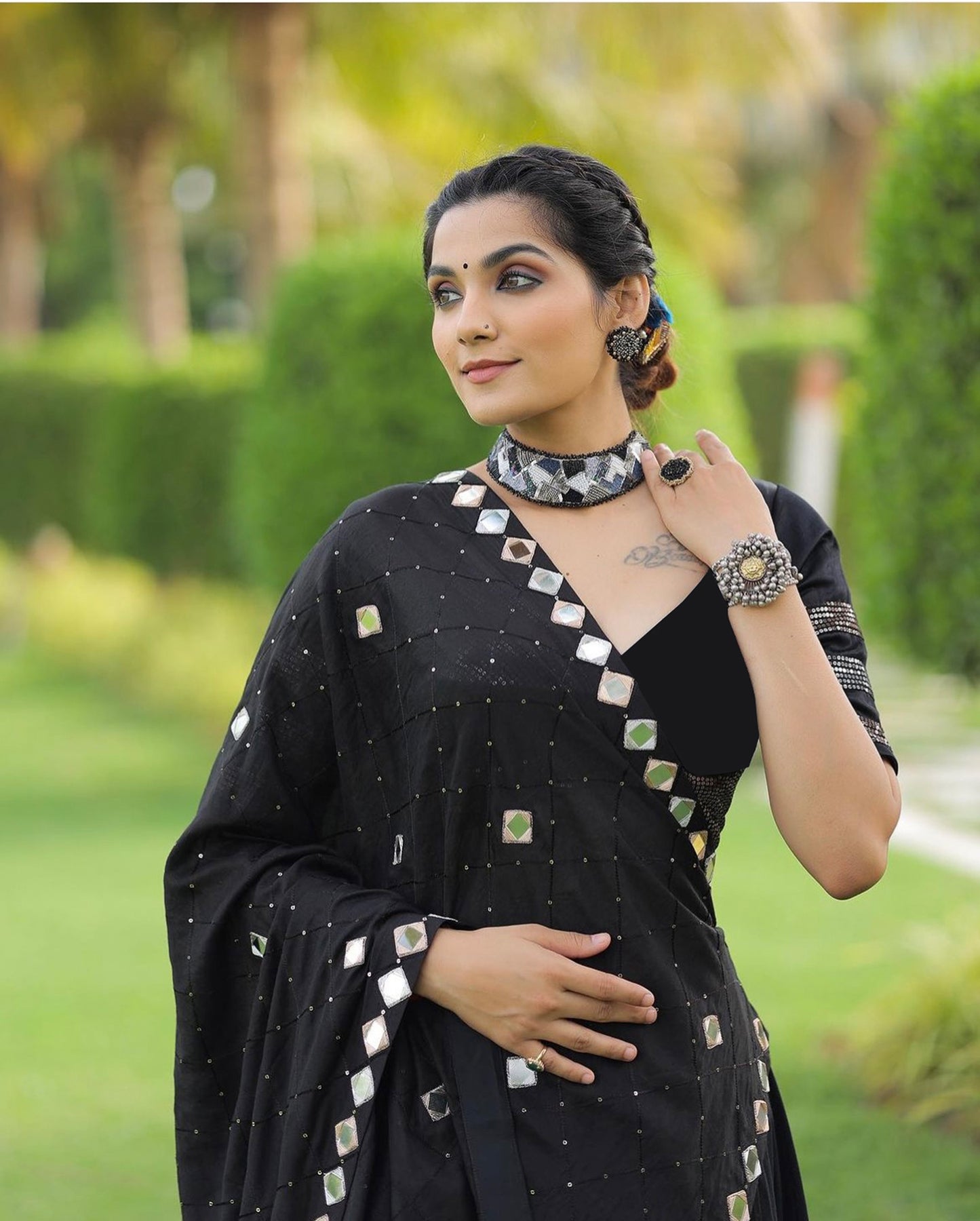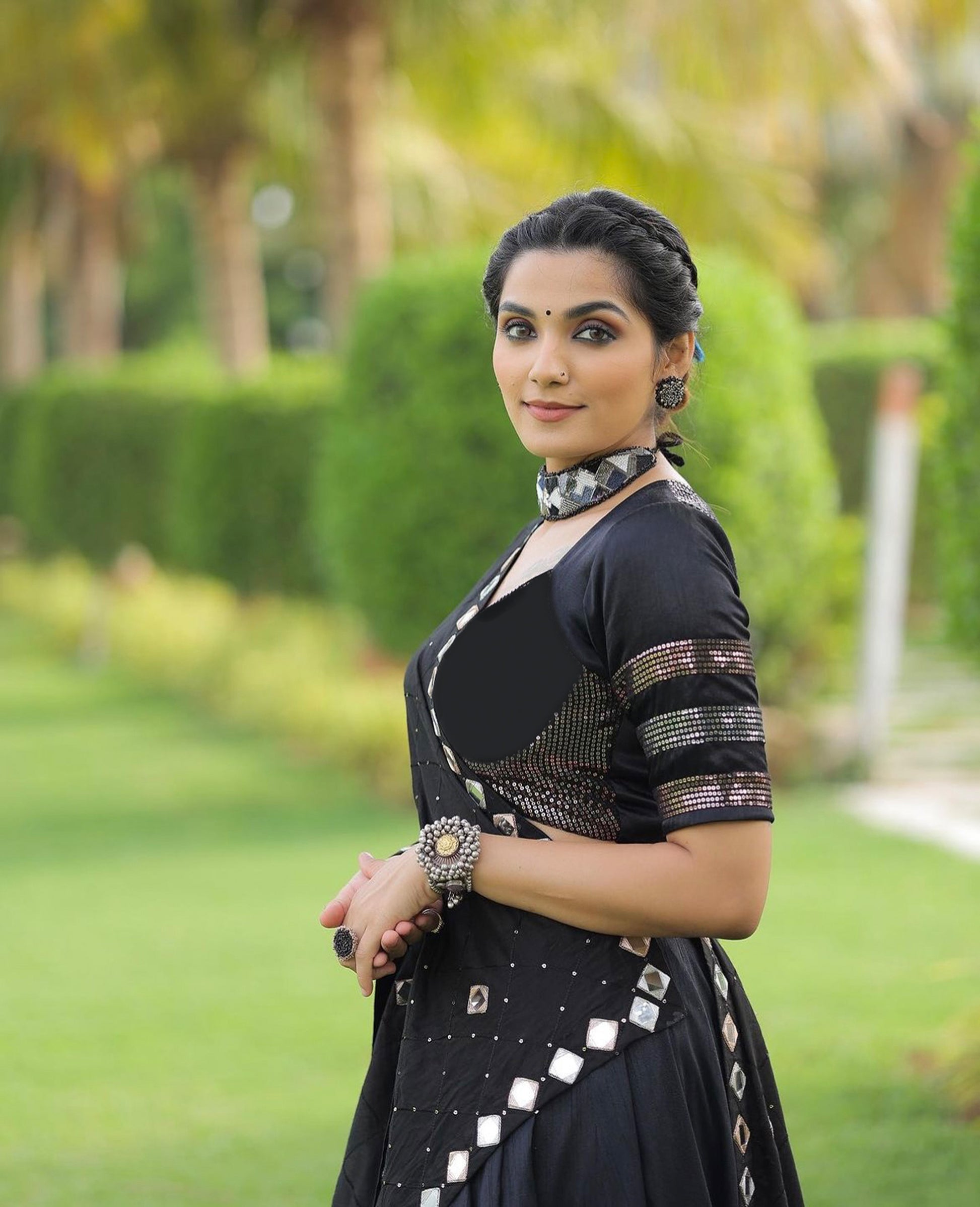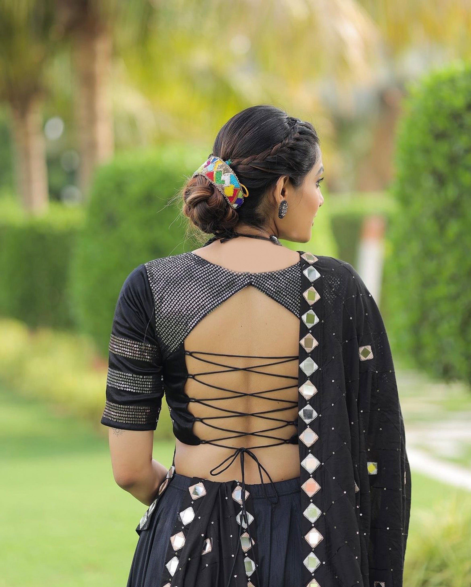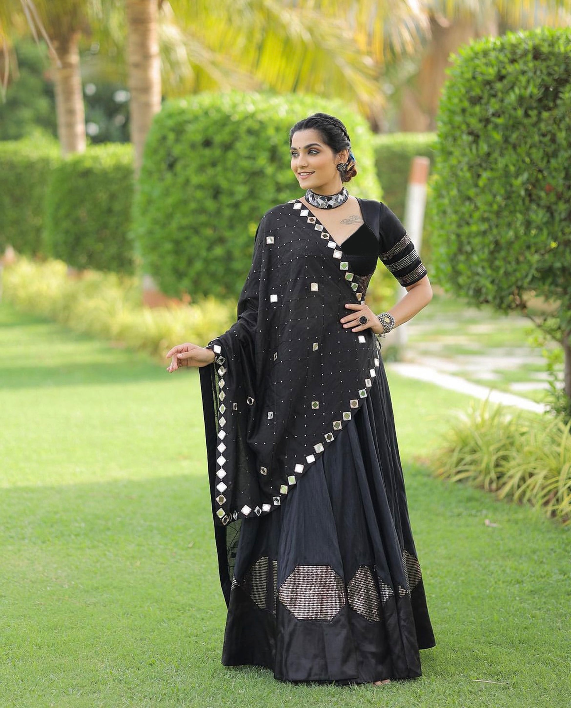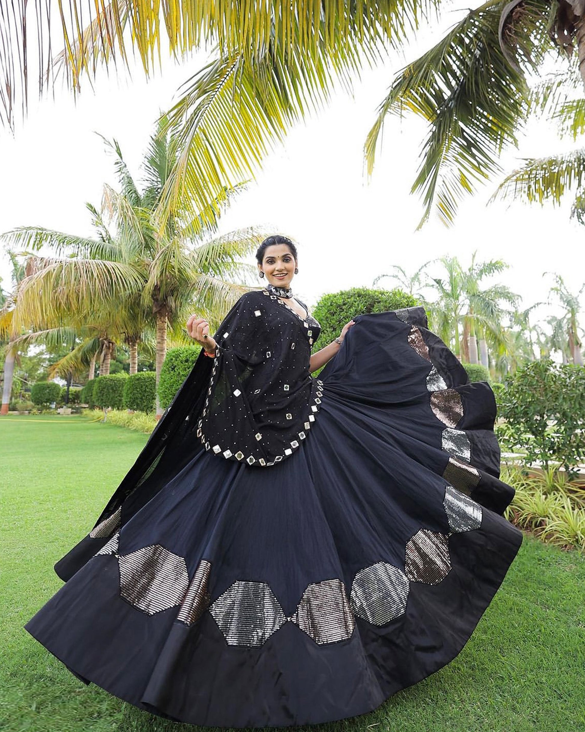 Black Pure Cotton Silk Sequins Embroidered Navratri Lehenga