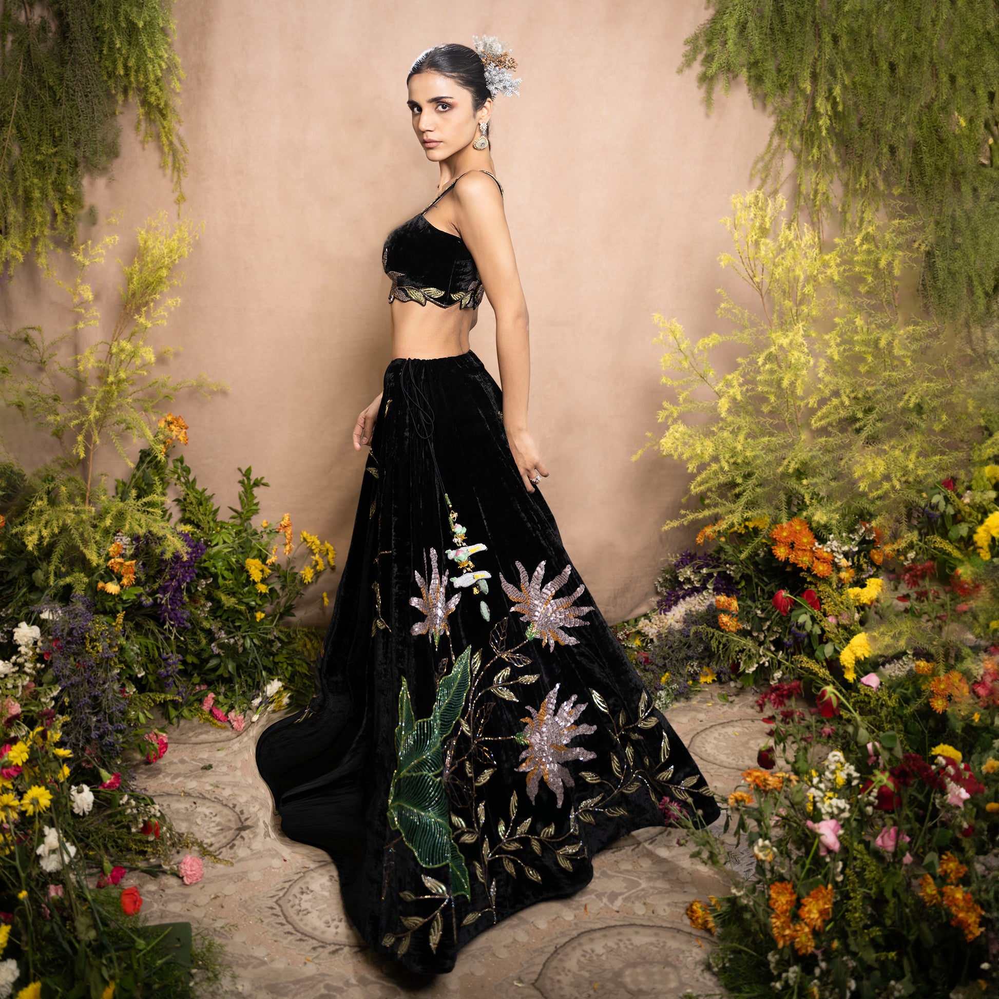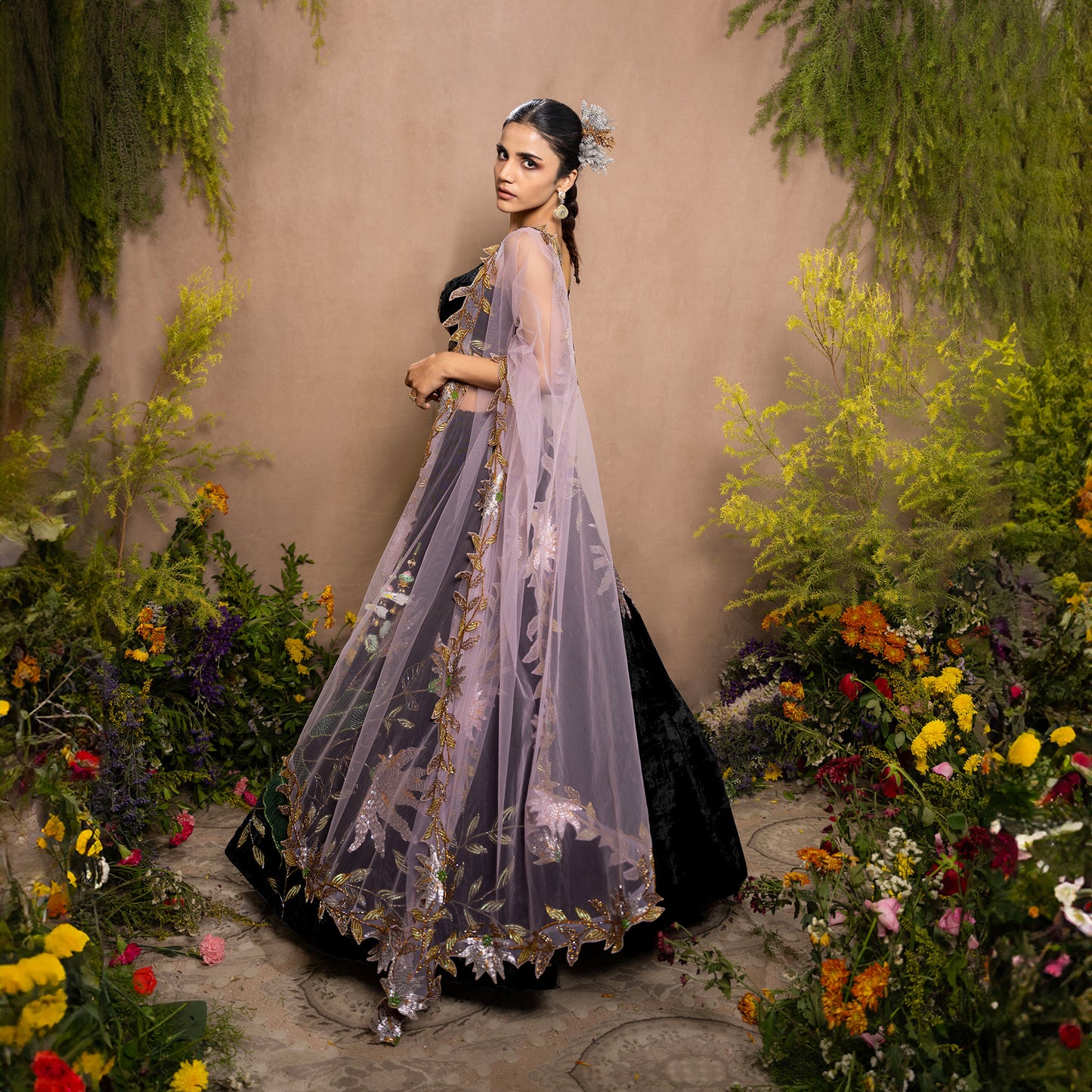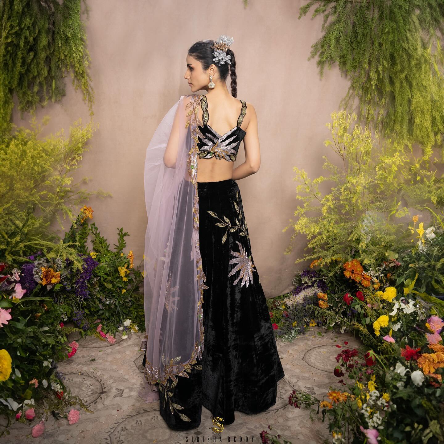 Black Velvet Sequins Embroidered Designer Flying Soul Bridal Lehenga