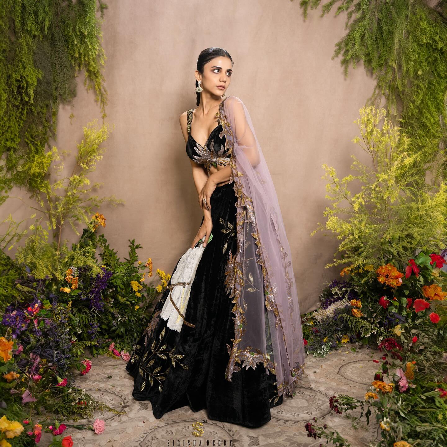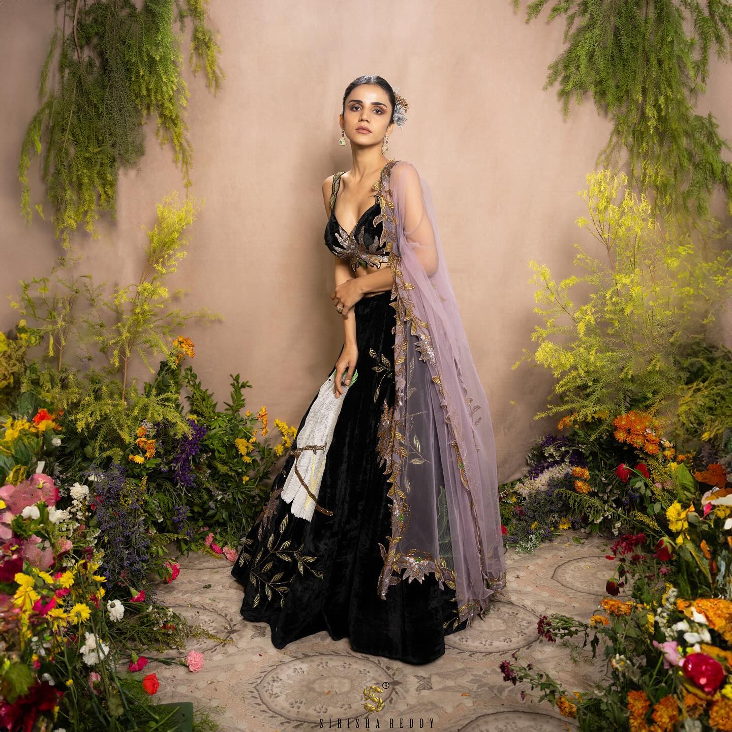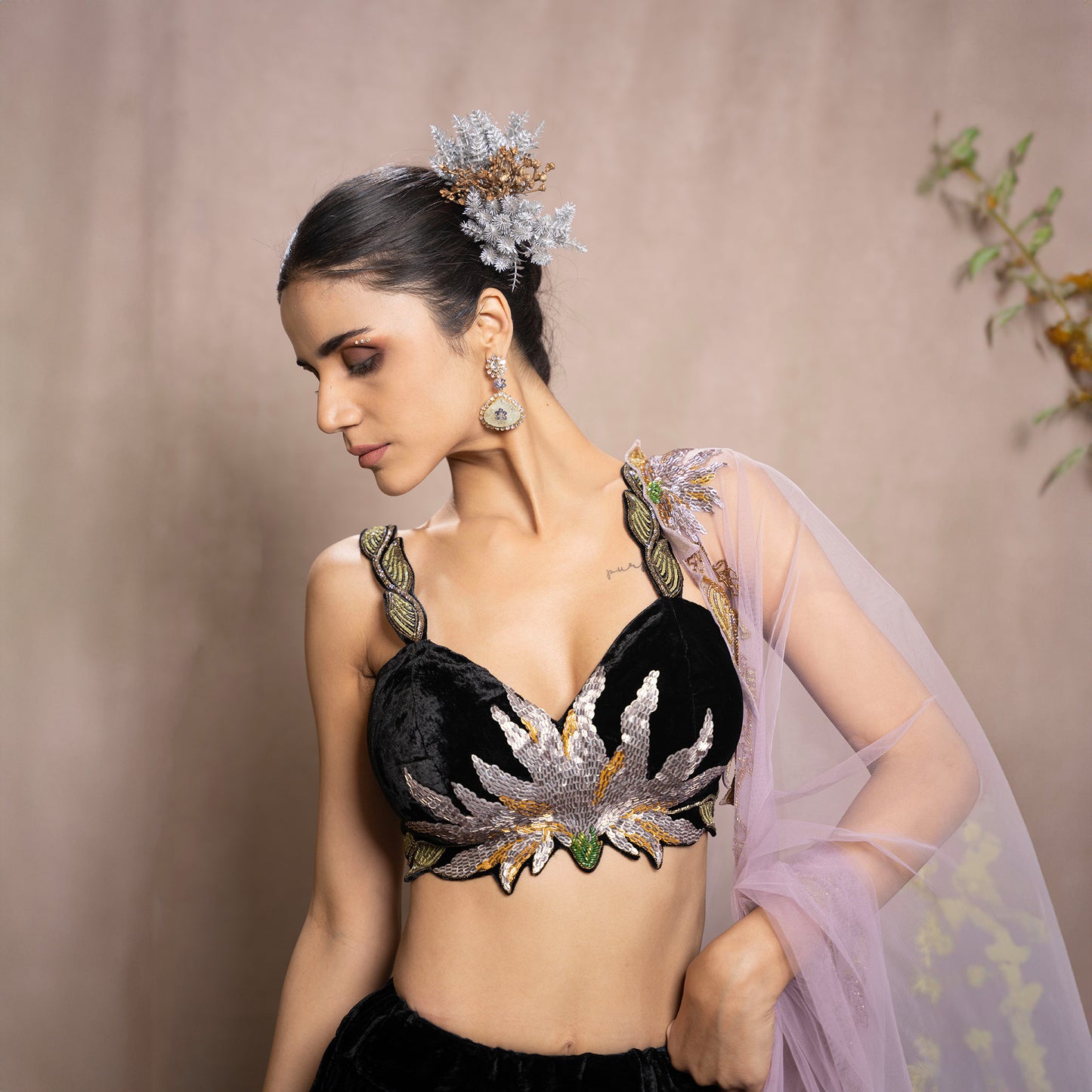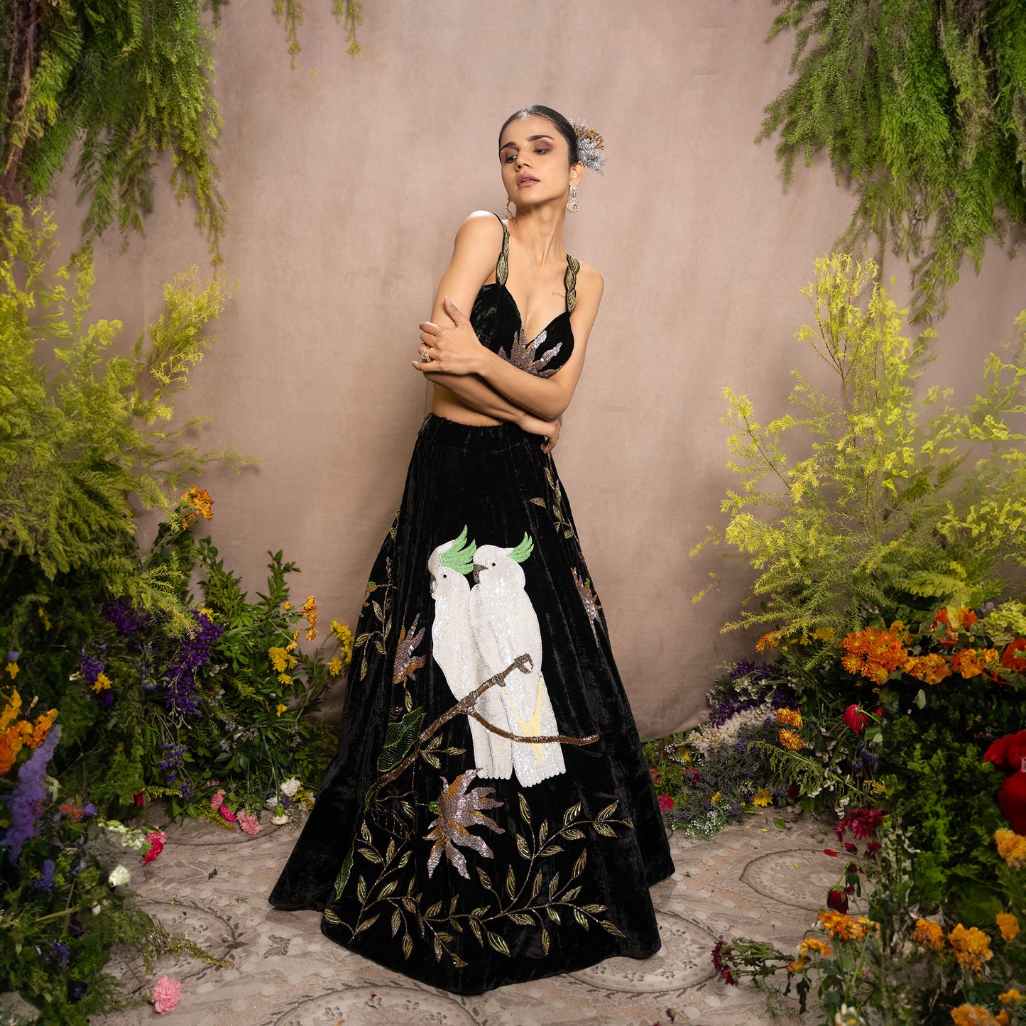 Black Velvet Sequins Embroidered Designer Flying Soul Bridal Lehenga