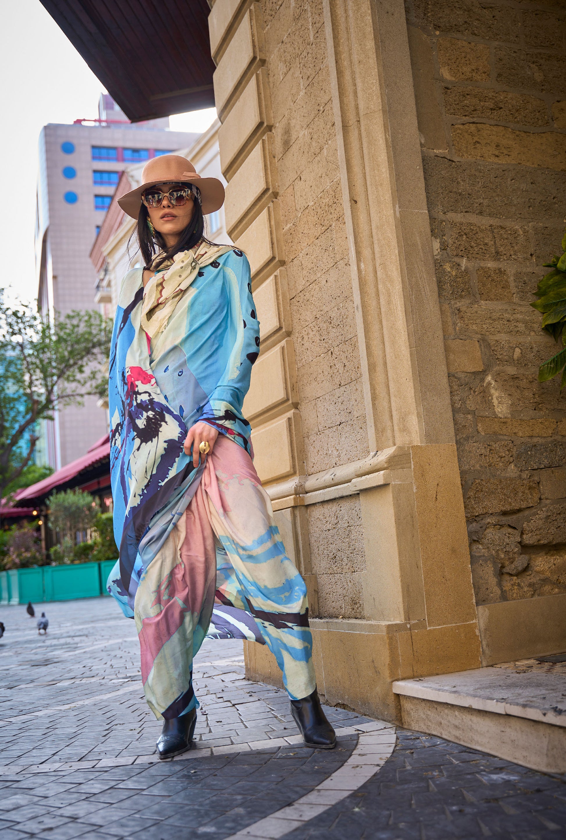 Blue Abstract Krayon Pure Silk Crepe Print Saree