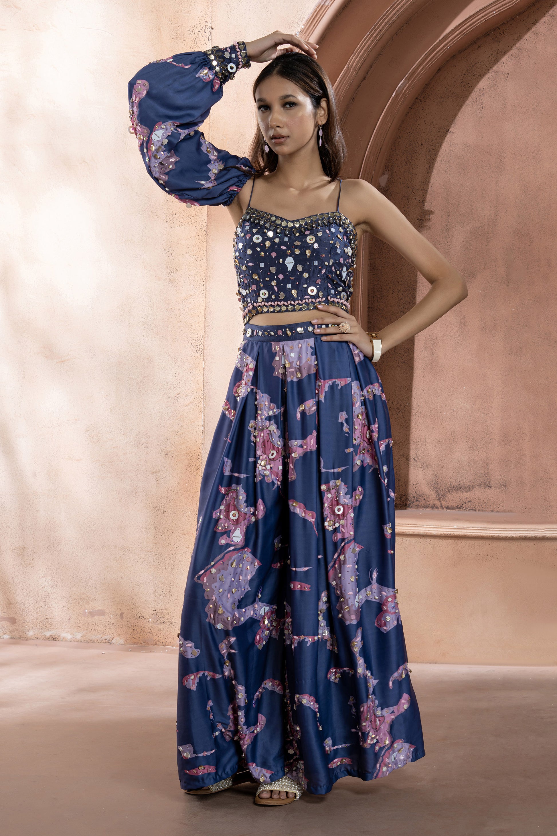 Printed Embellished Jumpsuit with embroidered yoke & Pleated bottom with Detachable sleeve