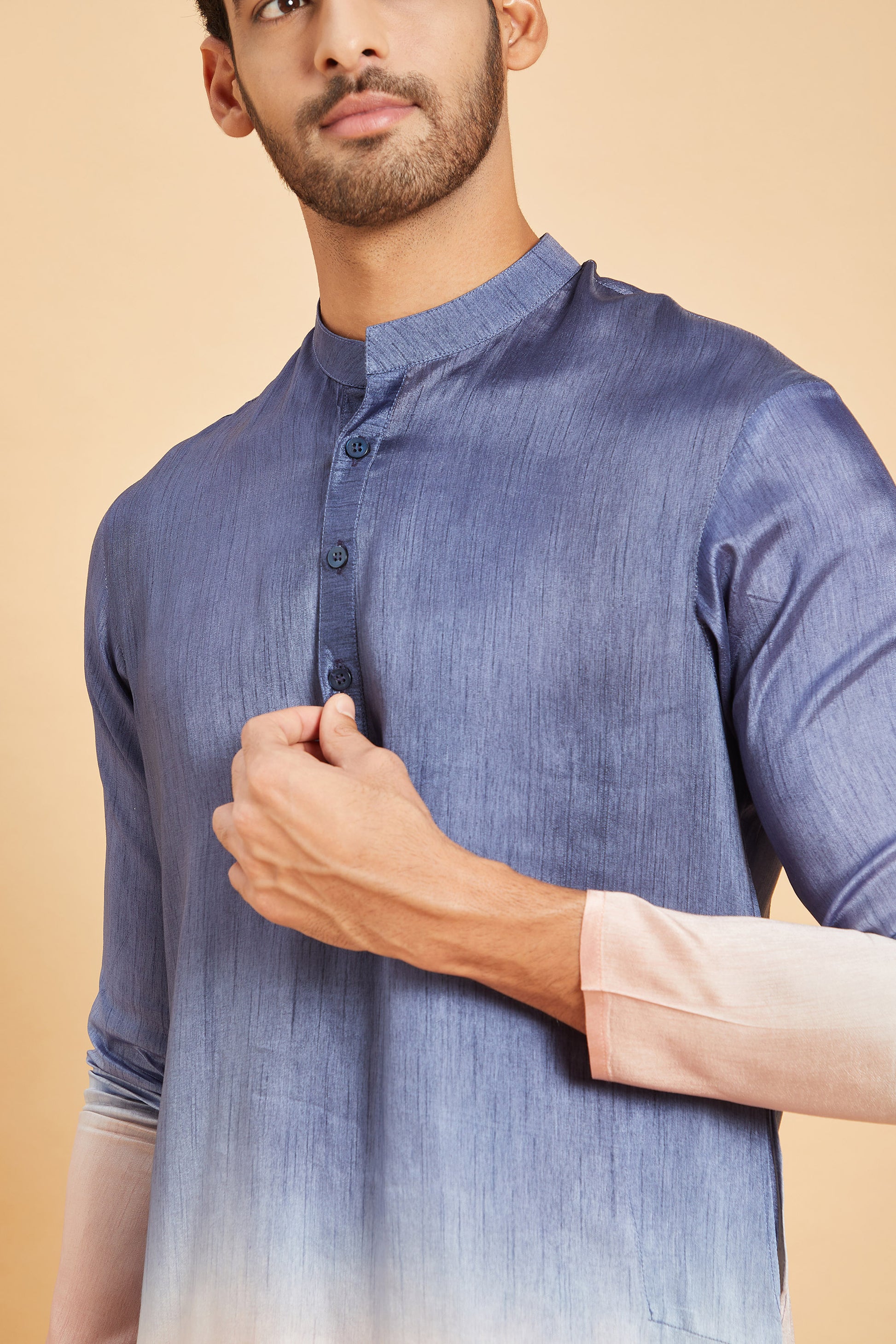 Blue & Peach Raw Silk Ombre ( only Kurta )