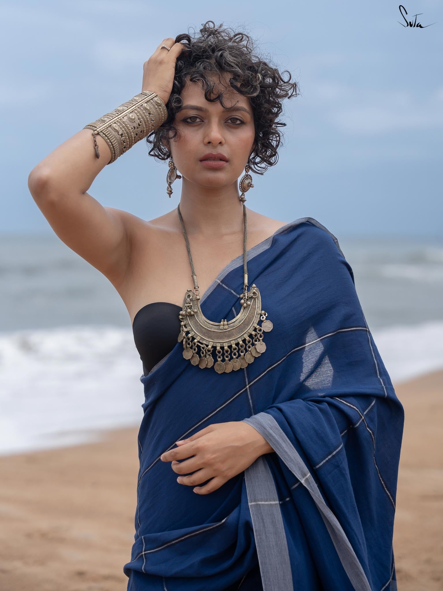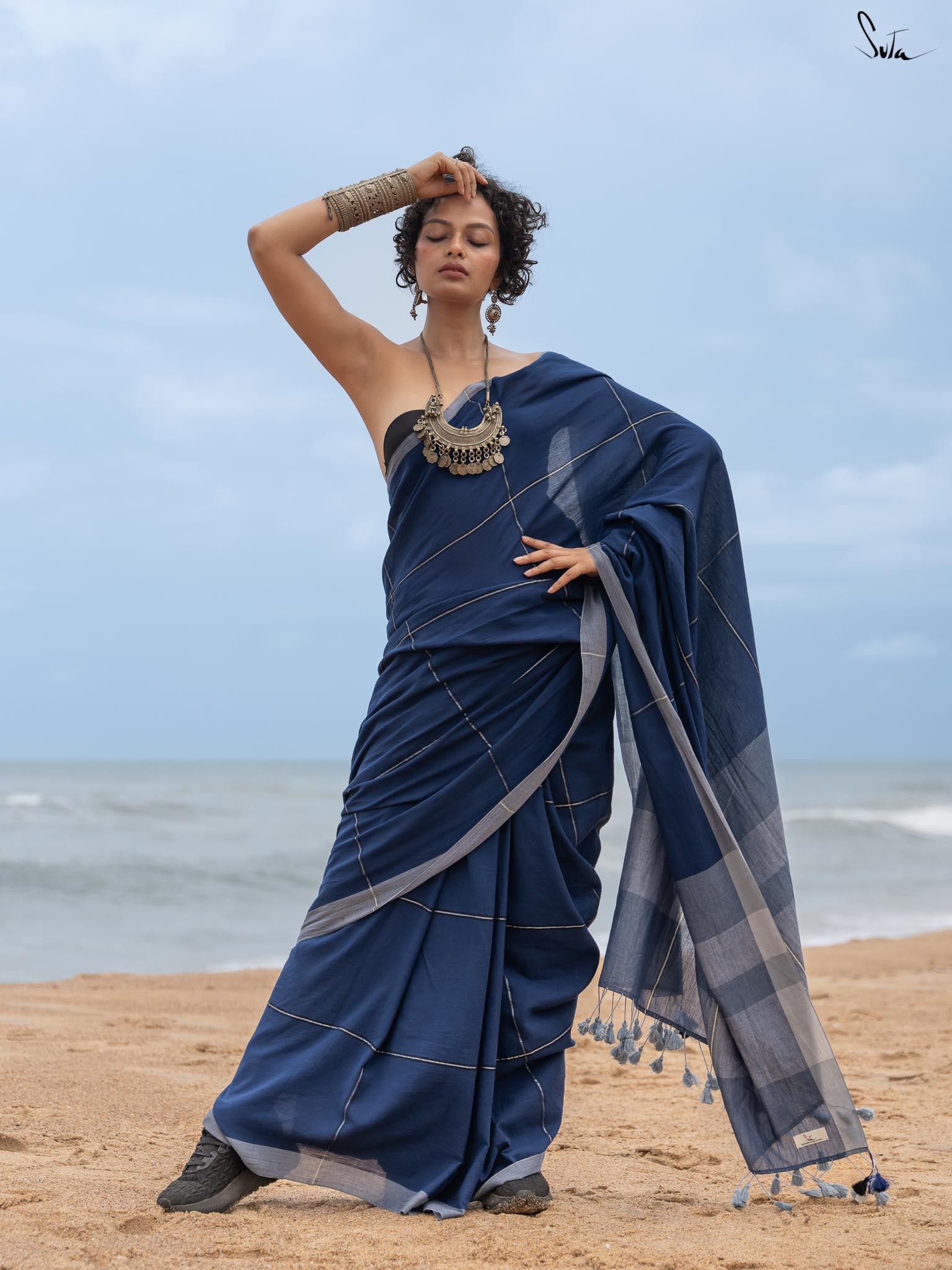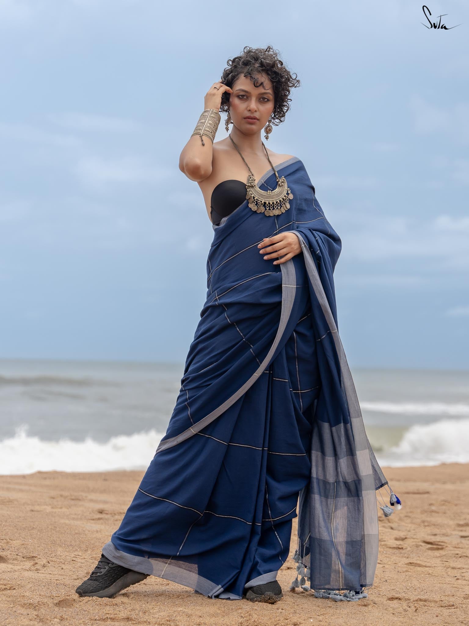 Soft and comfy, this saree is your new go-to for modern style. Crafted from slub cotton, it's like wearing a cloud, but with a bold twist.