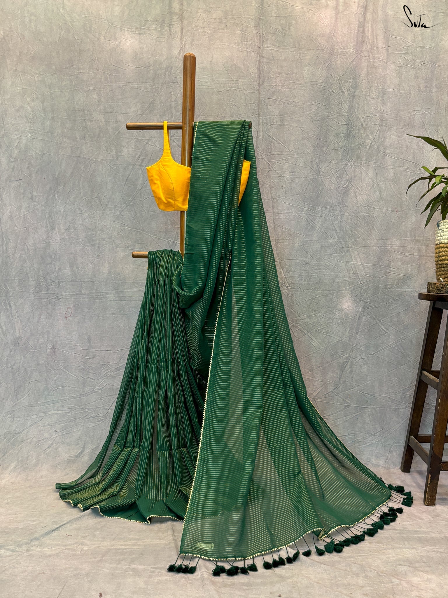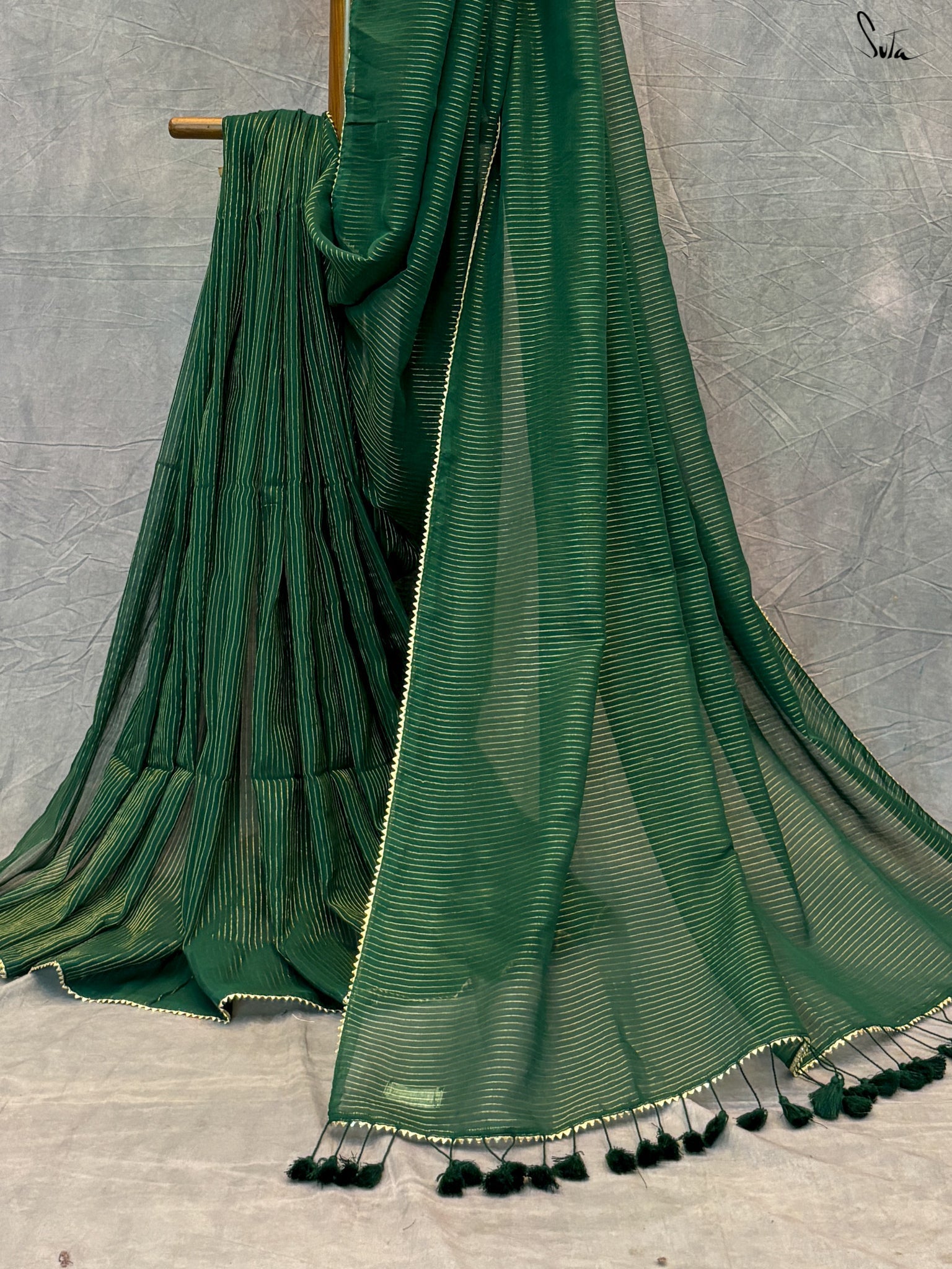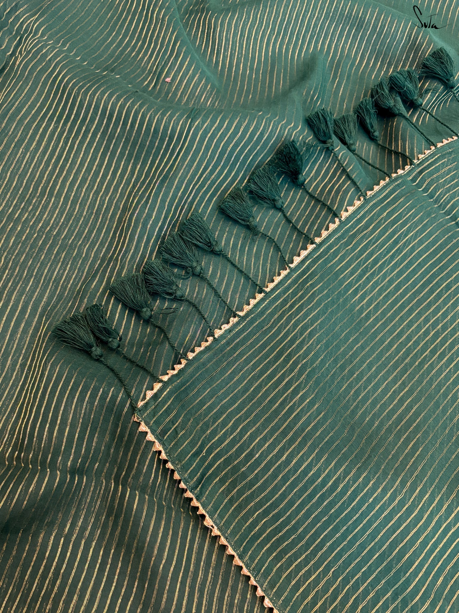 The zari threads add the golden shimmer to the fabric in a very subtle yet beautiful way.
