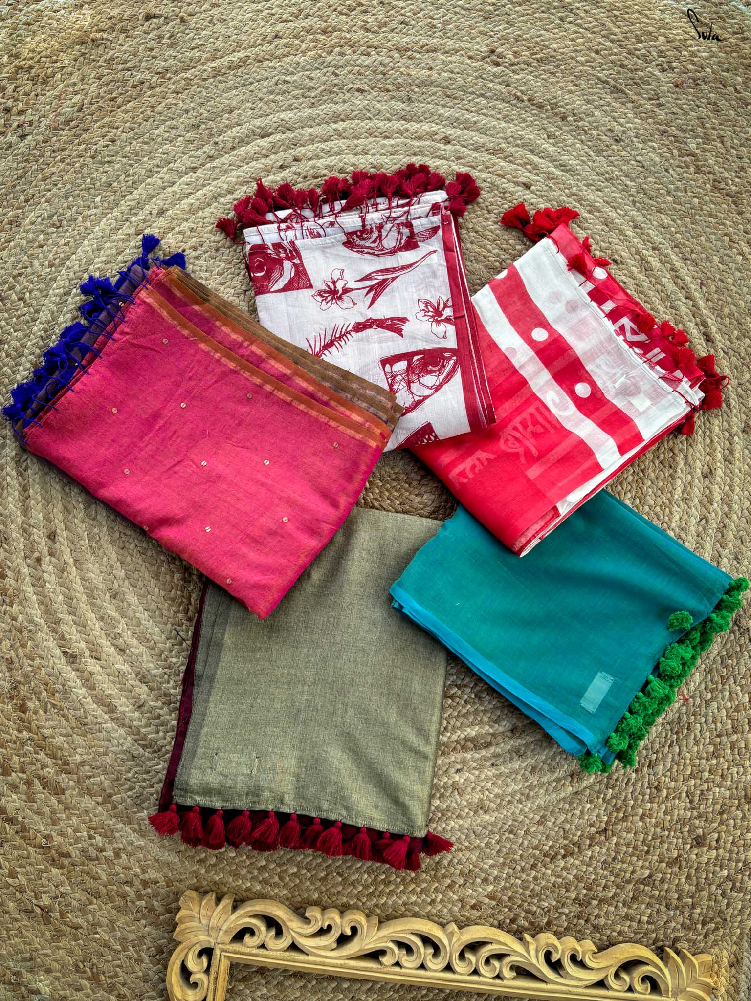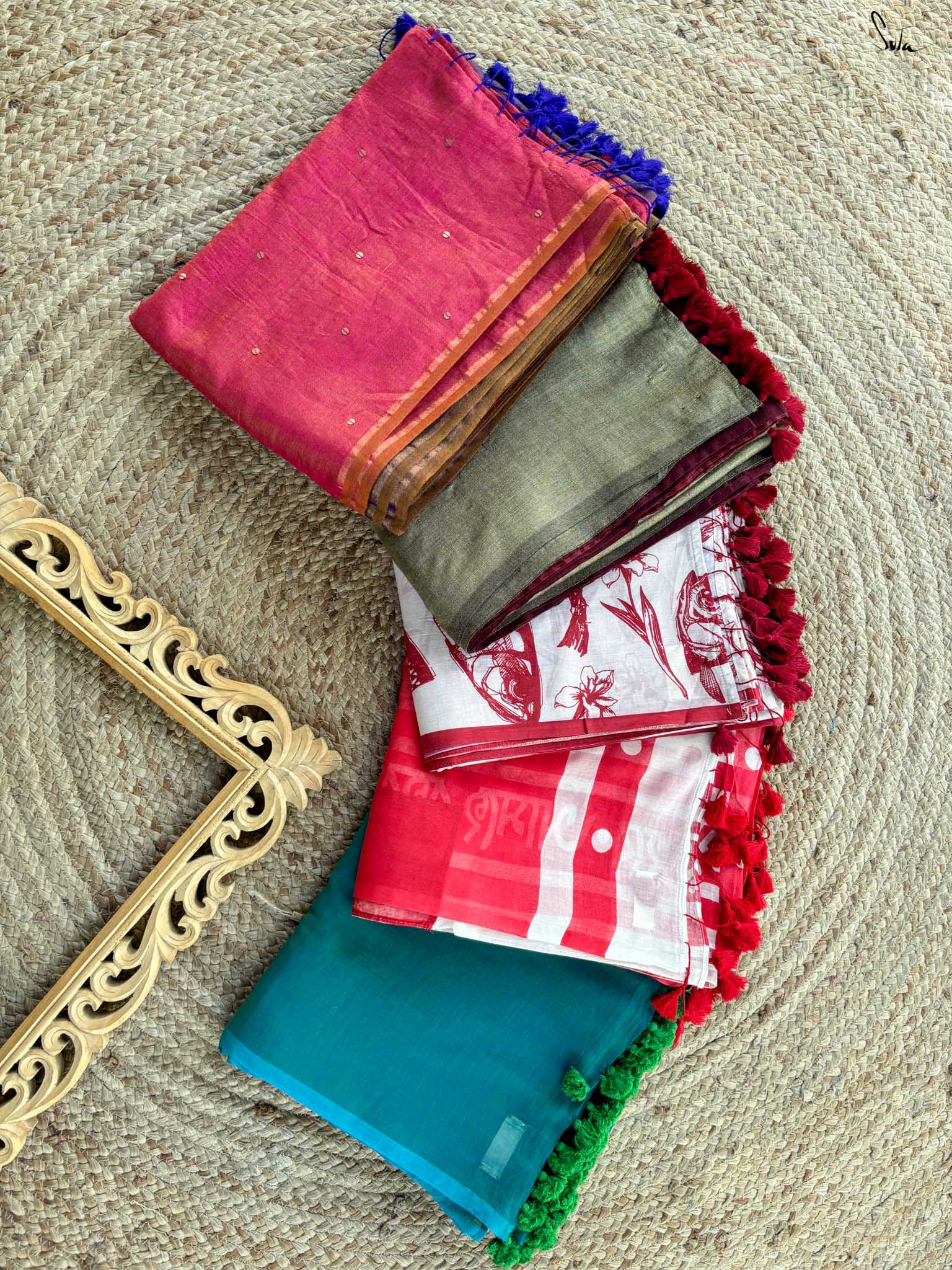 Let your confidence flourish with our heartwarming "Blush Bloom" saree combo! This charming collection of 5 sarees, curated from a diverse range of fabrics, seamlessly blends tradition with modern style, creating a fresh and feminine look. Each saree is designed to make the wearer bloom like a flower, with soft hues, delicate patterns, and a touch of elegance.