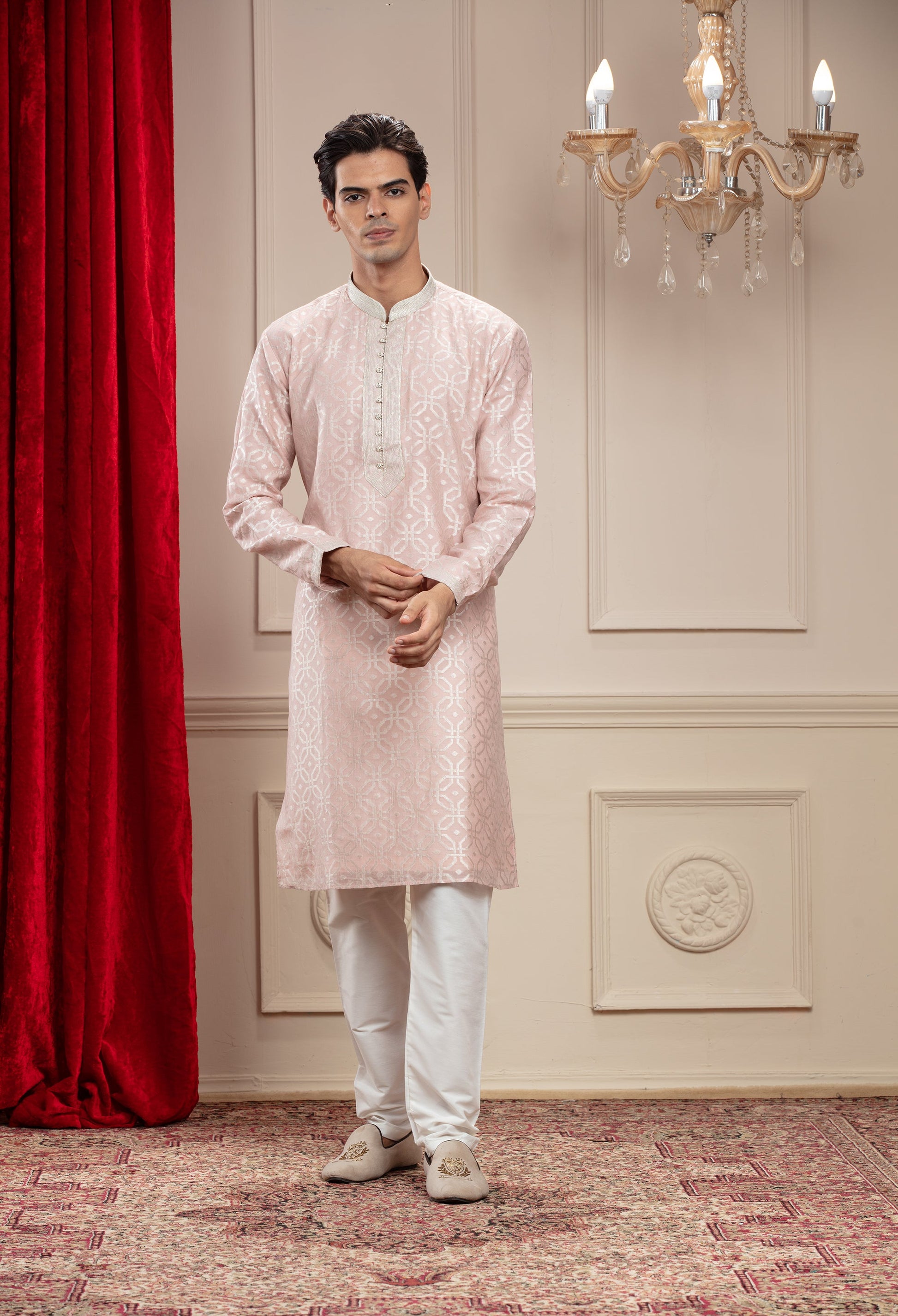 Blush Pink Banarasi Printed Silk kurta pajama set