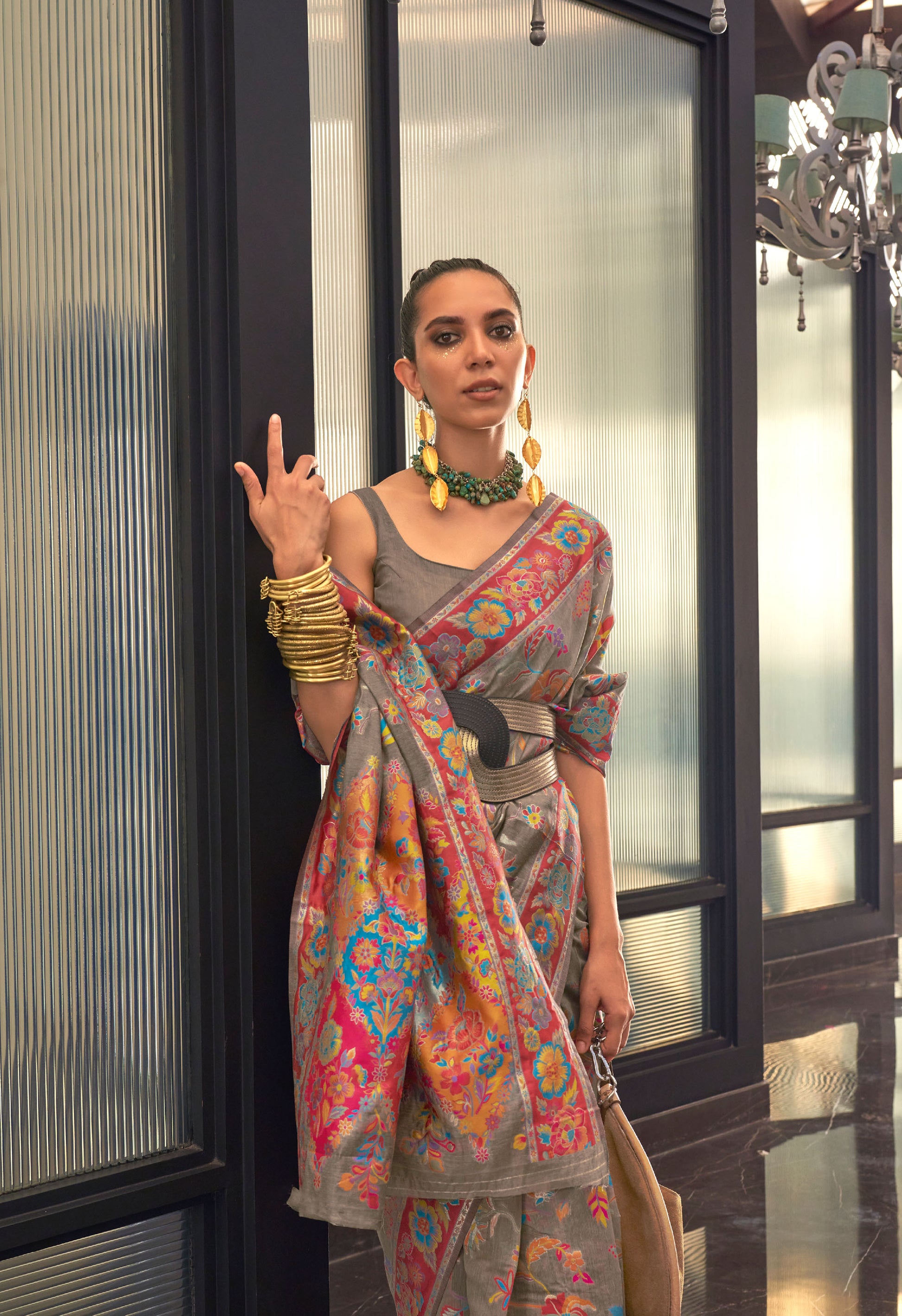 Does your wardrobe need more versatility? Then, check out this. Let your skin feel the refreshing touch as you adorn this superior-quality lightweight Saree to match the overall modest design.