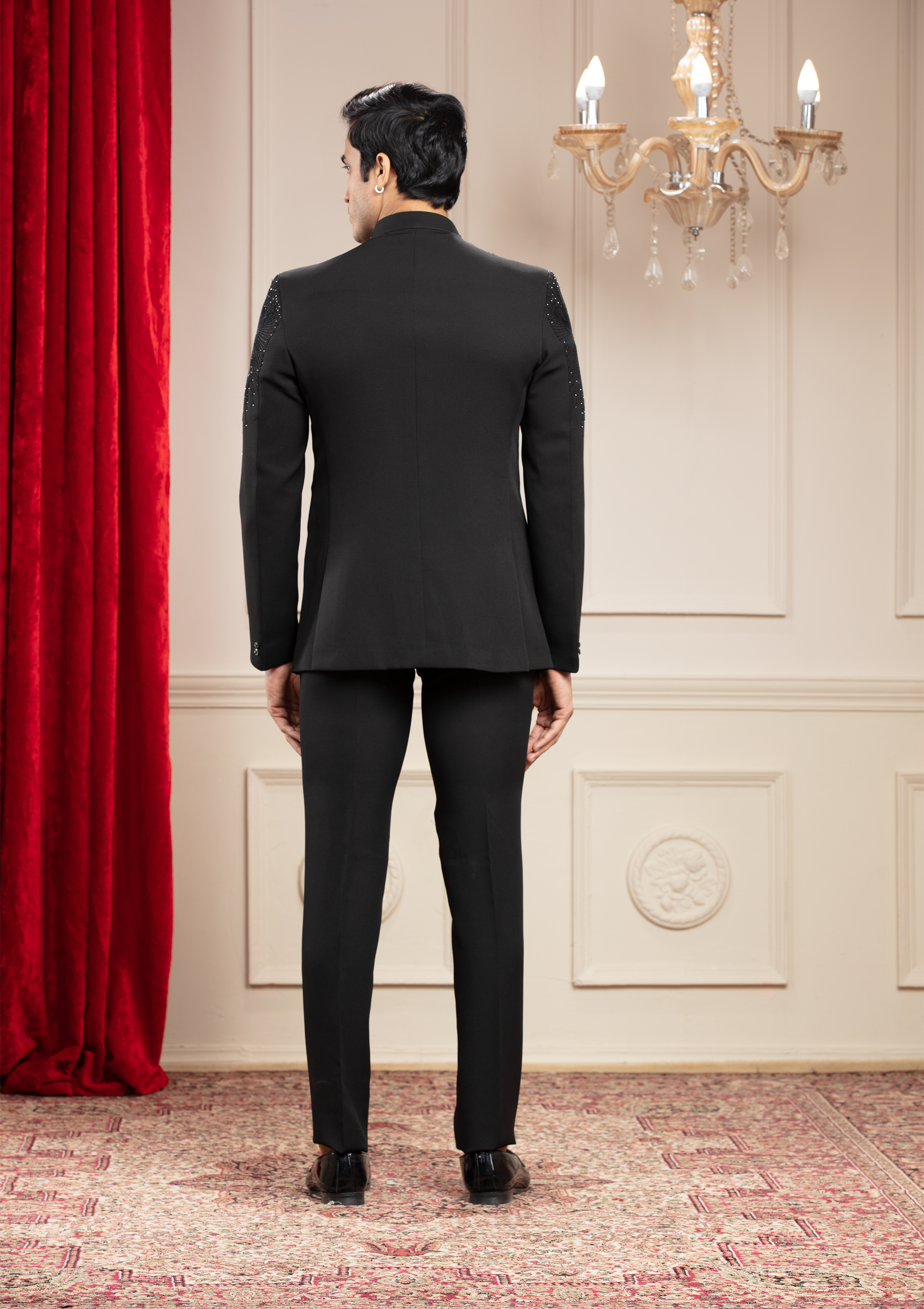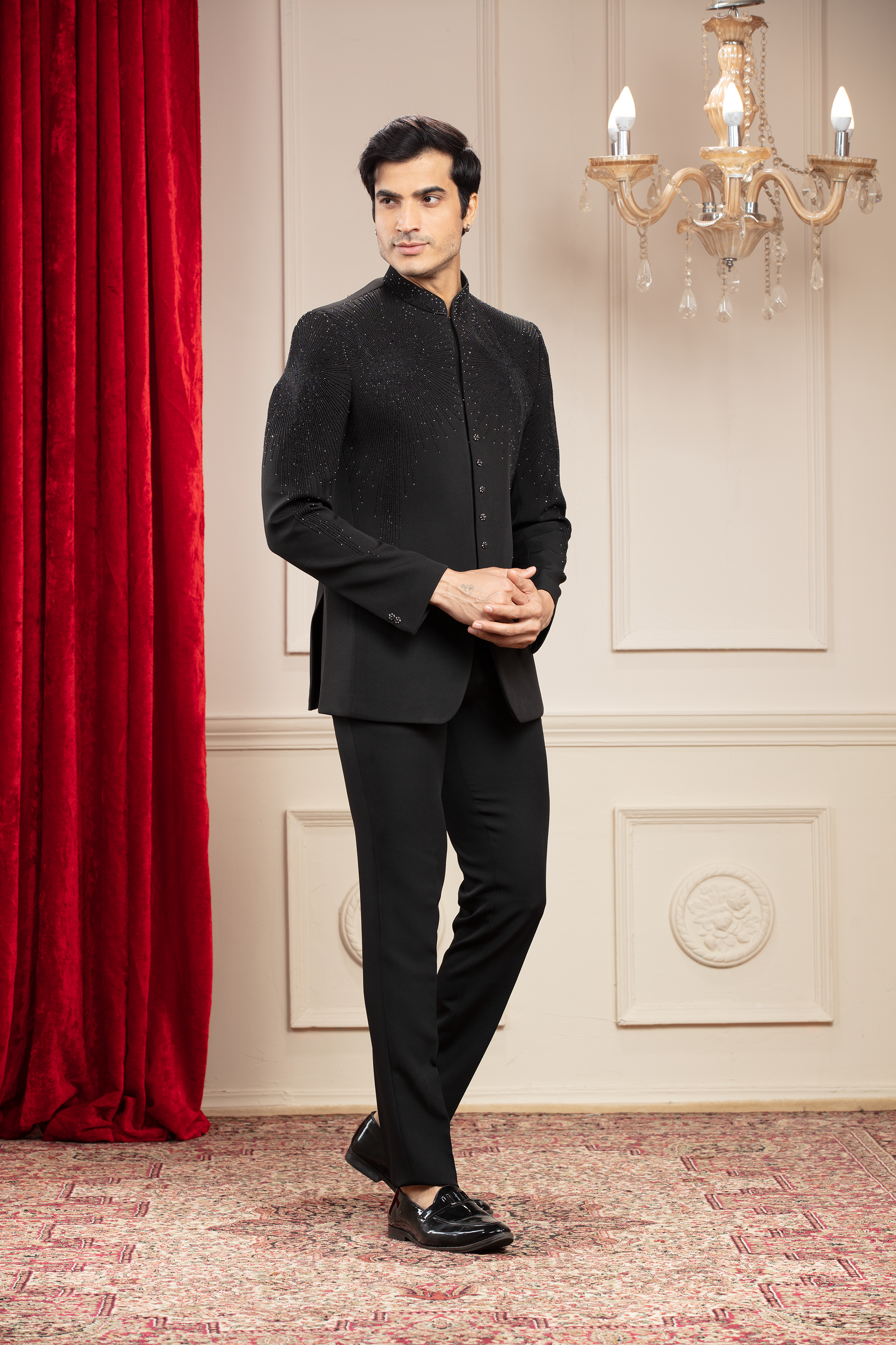 Coal Black Jodhpuri with Imported Japanese Fabric and cutdana work