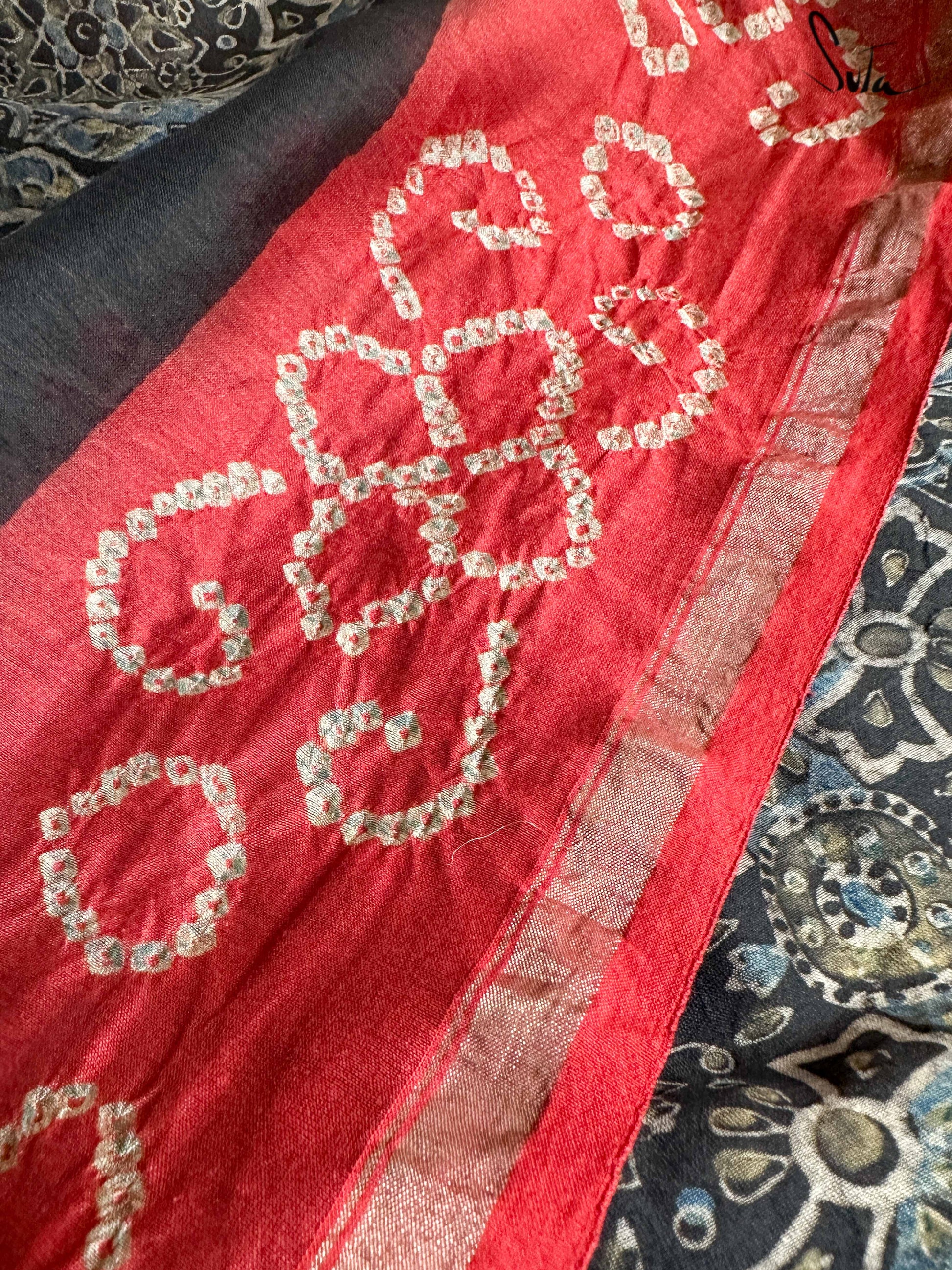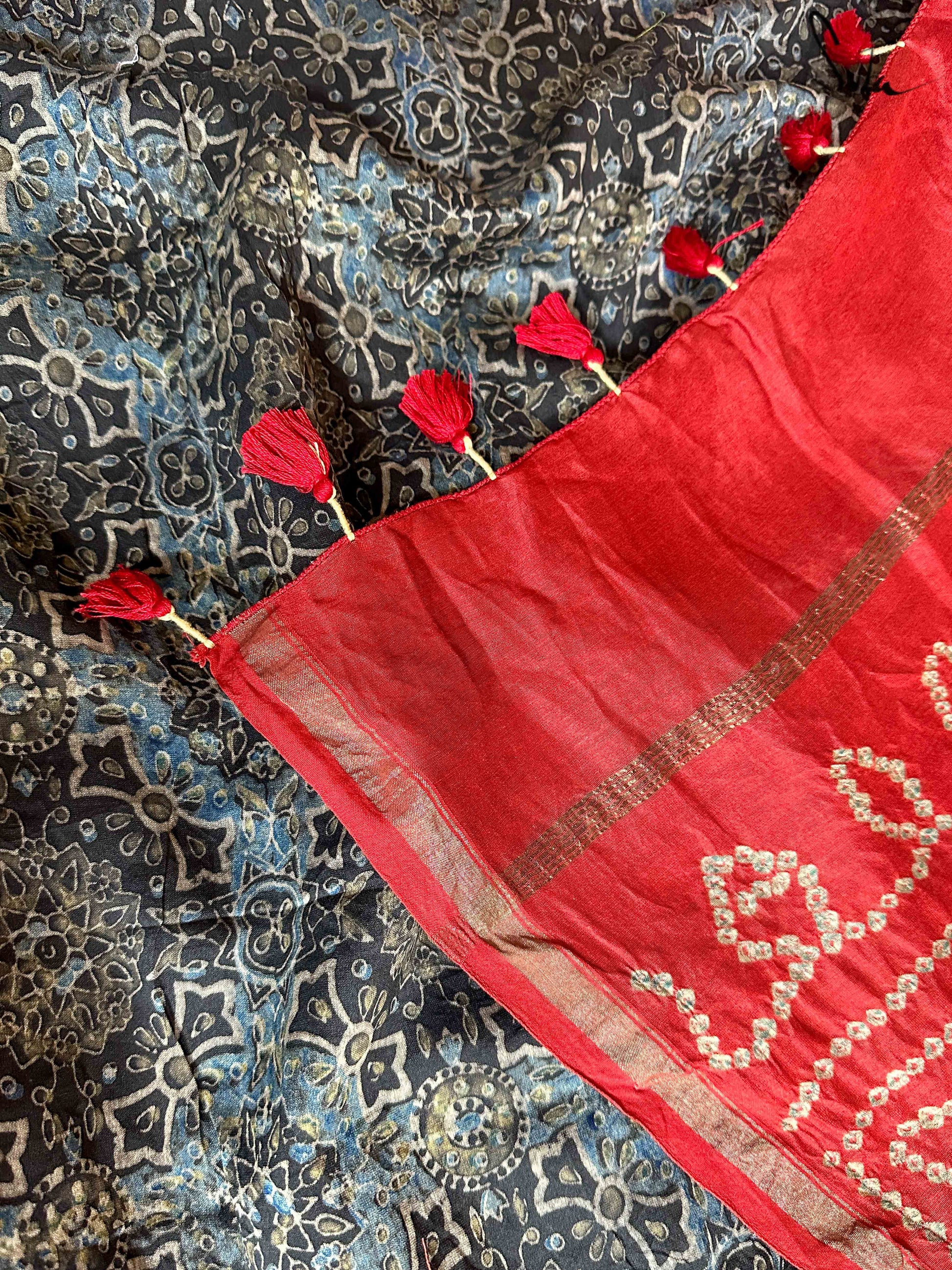 Fabric: Chanderi body ajrak bandhani Silk Georgette with Zari