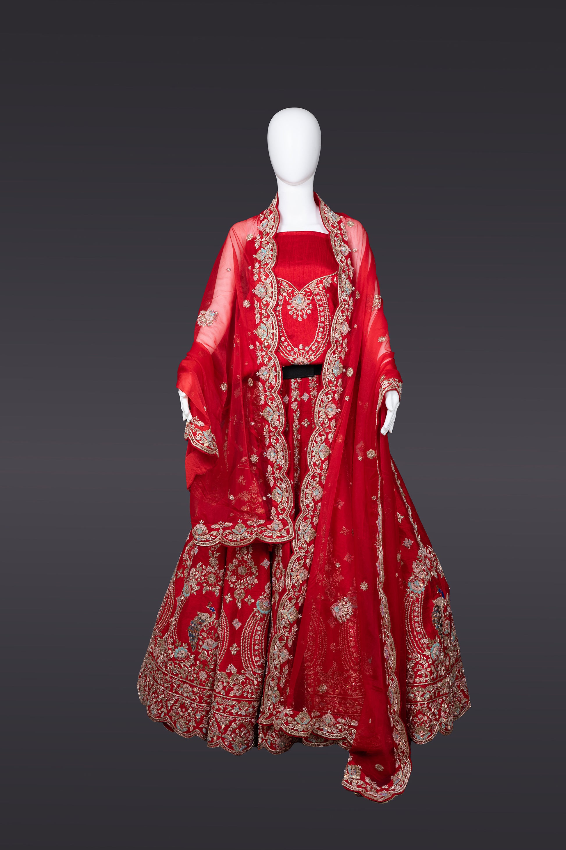 Made from luxurious fabrics this Lehenga boasts a perfect blend of traditional elegance and modern sophistication. Whether you're a classic bride or a contemporary beauty, this breathtaking Lehenga is sure to make you feel like a queen on your wedding day. Pair it with our matching blouse and dupatta to create a truly unforgettable look.