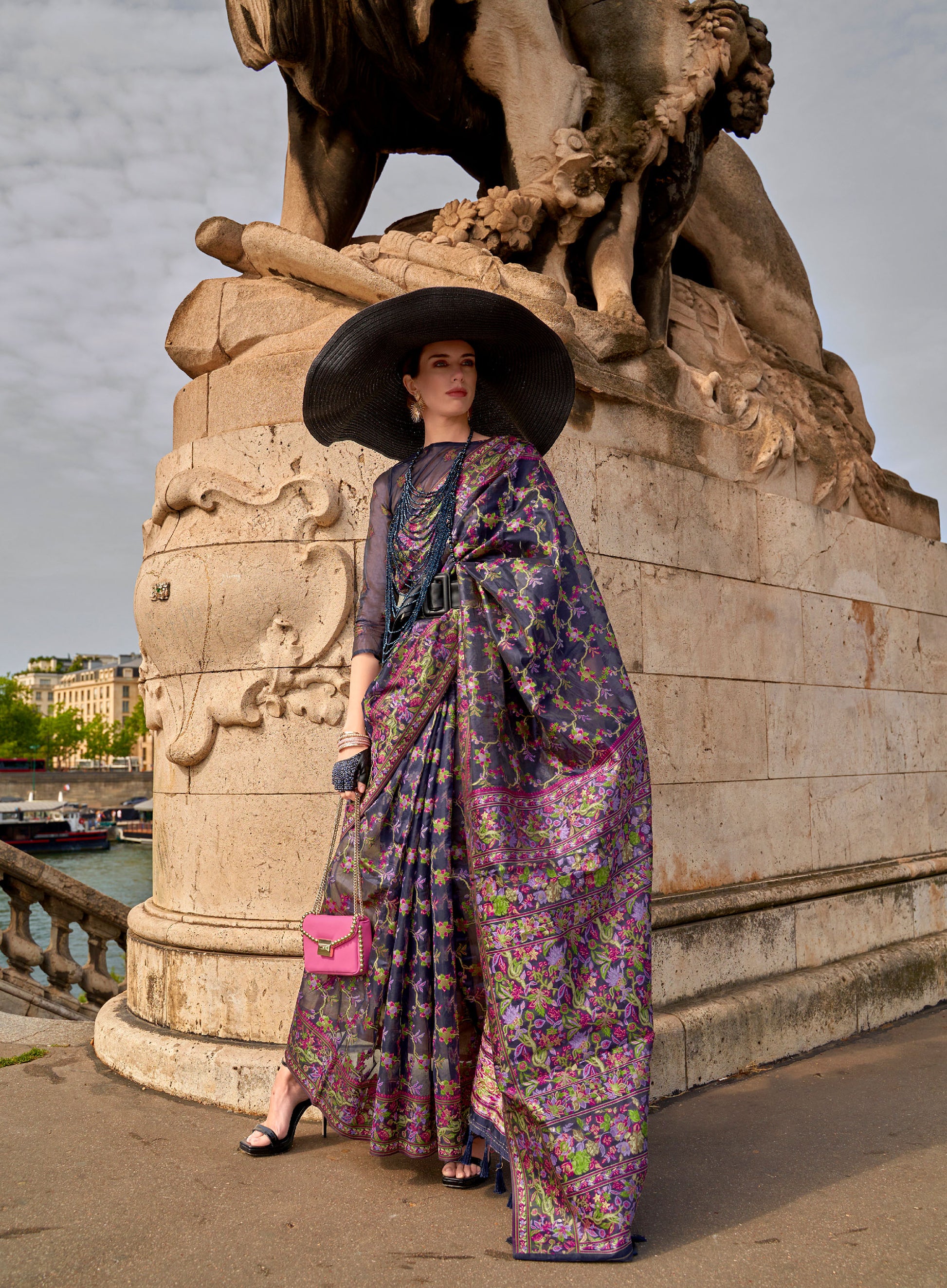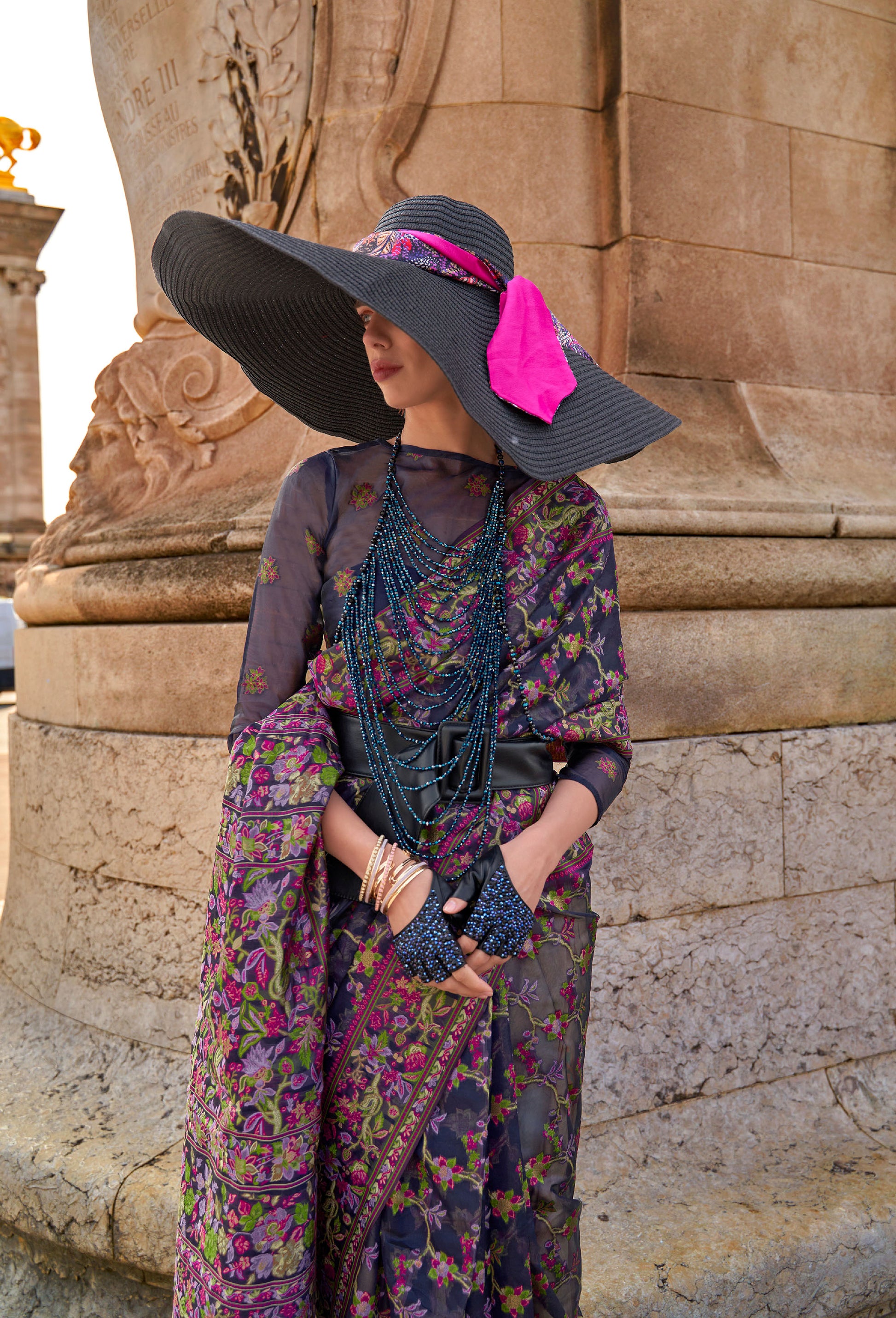 Dark Blue Kaarsi Organza Silk Handloom Saree