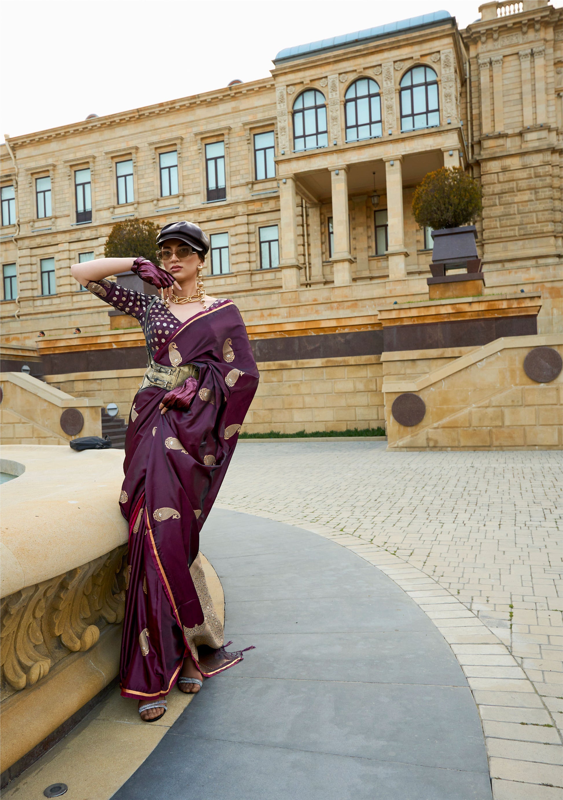 Deep Maroon Kanthkala Pure Satin Handloom Silk Saree