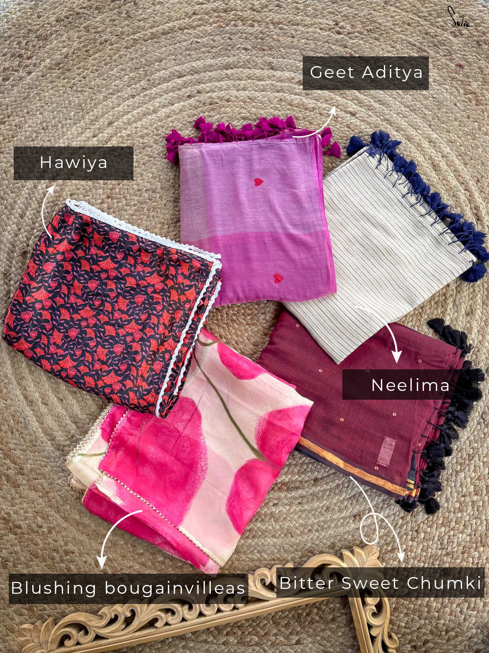 Step into a world of vibrant elegance with our "Desi Dreamscape" saree combo! This captivating collection of 5 sarees features a versatile range of fabrics, carefully crafted to provide a dreamy look that's uniquely yours. With their mesmerizing colors and captivating designs, these sarees are sure to light up every occasion, from casual gatherings to grand celebrations.