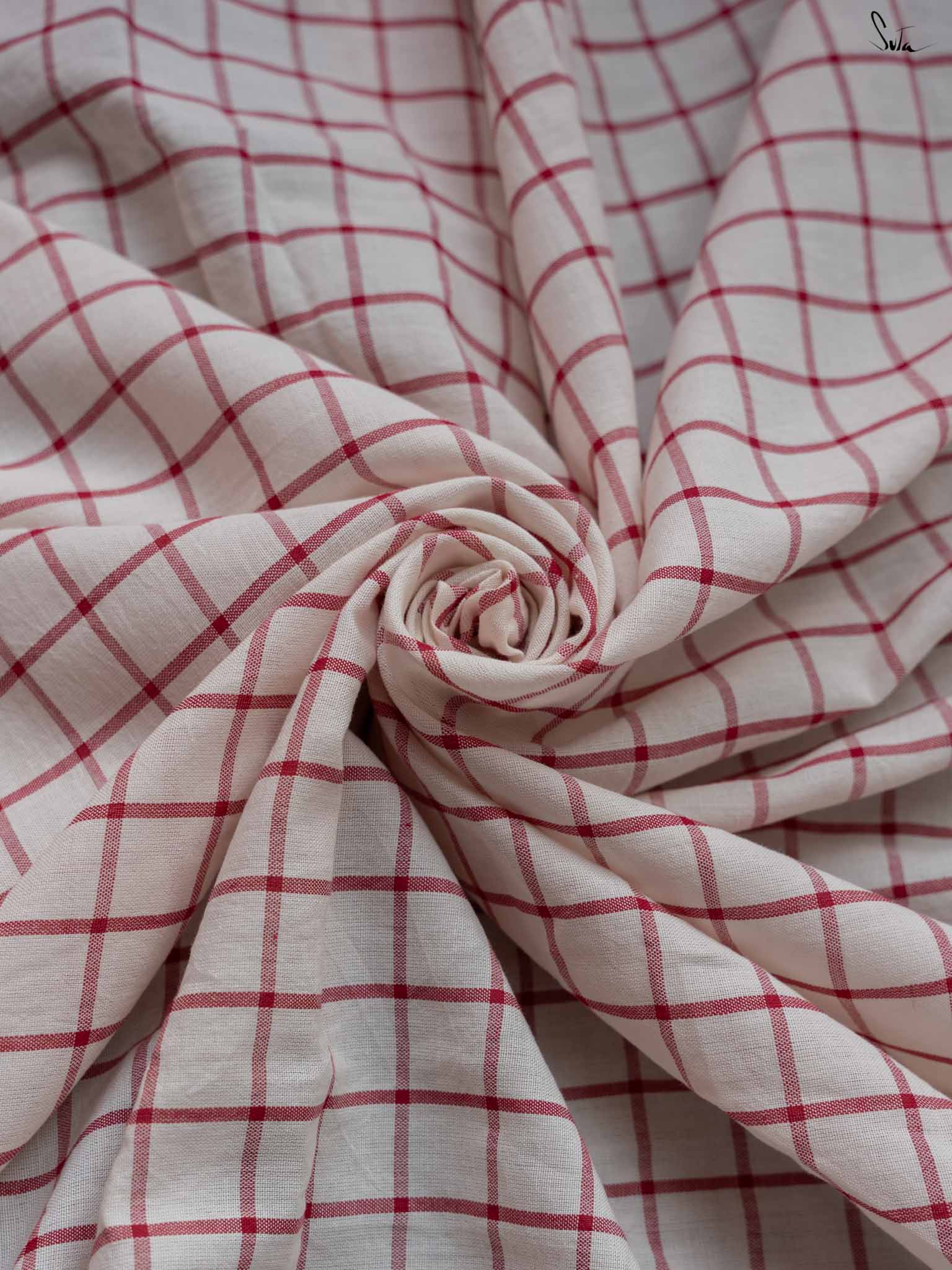 Blouse Piece Colour: Off White and Pale Maroon Checks