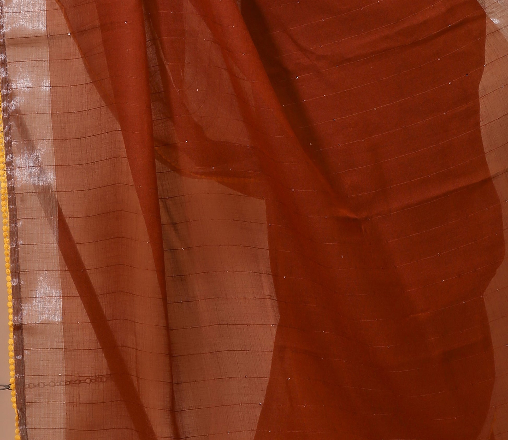 Dori Brown Yellow Linen Silk Saree