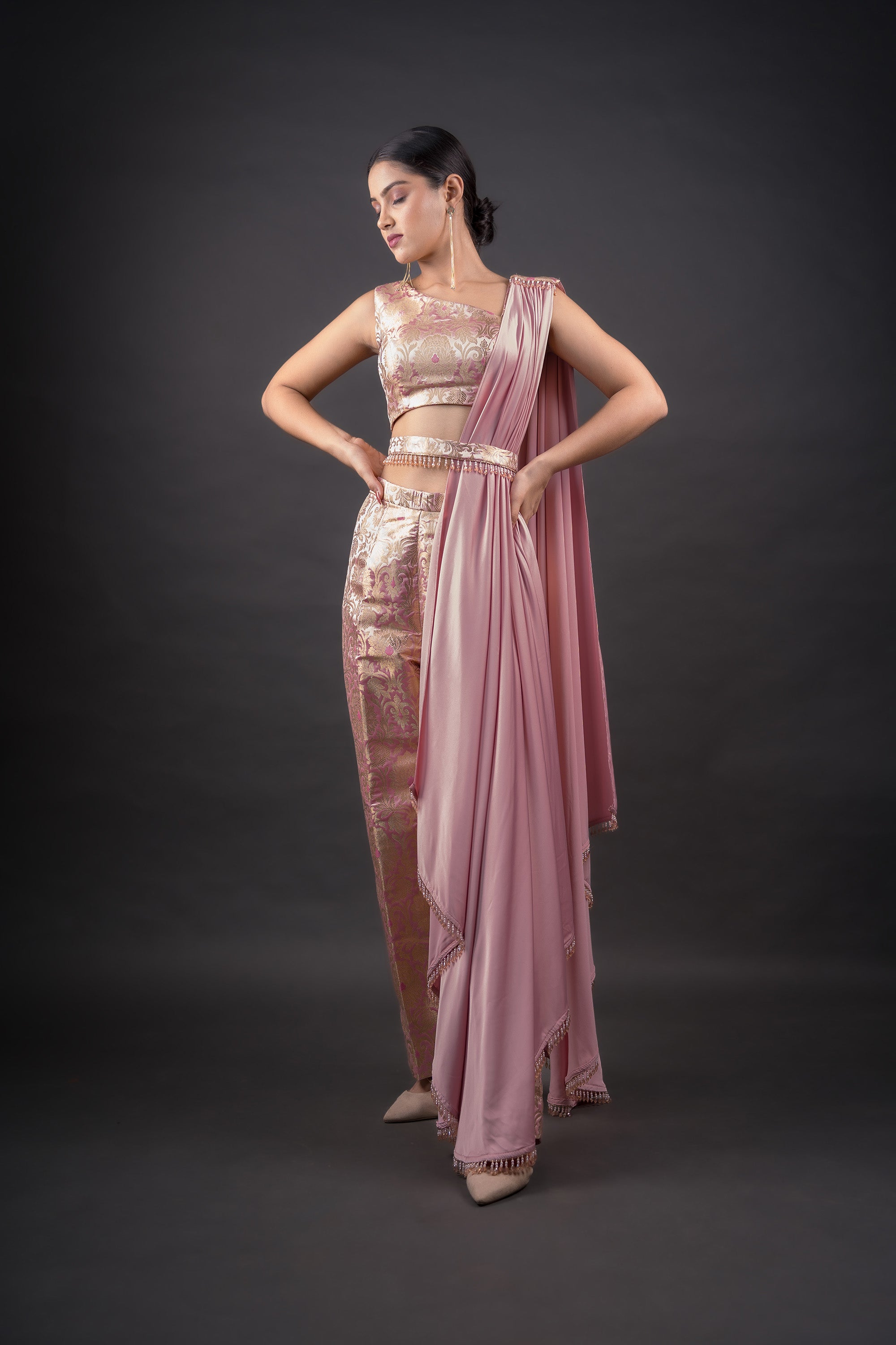 English pink crop top, Straight ideal brocade pants, playful stall - Ensemble