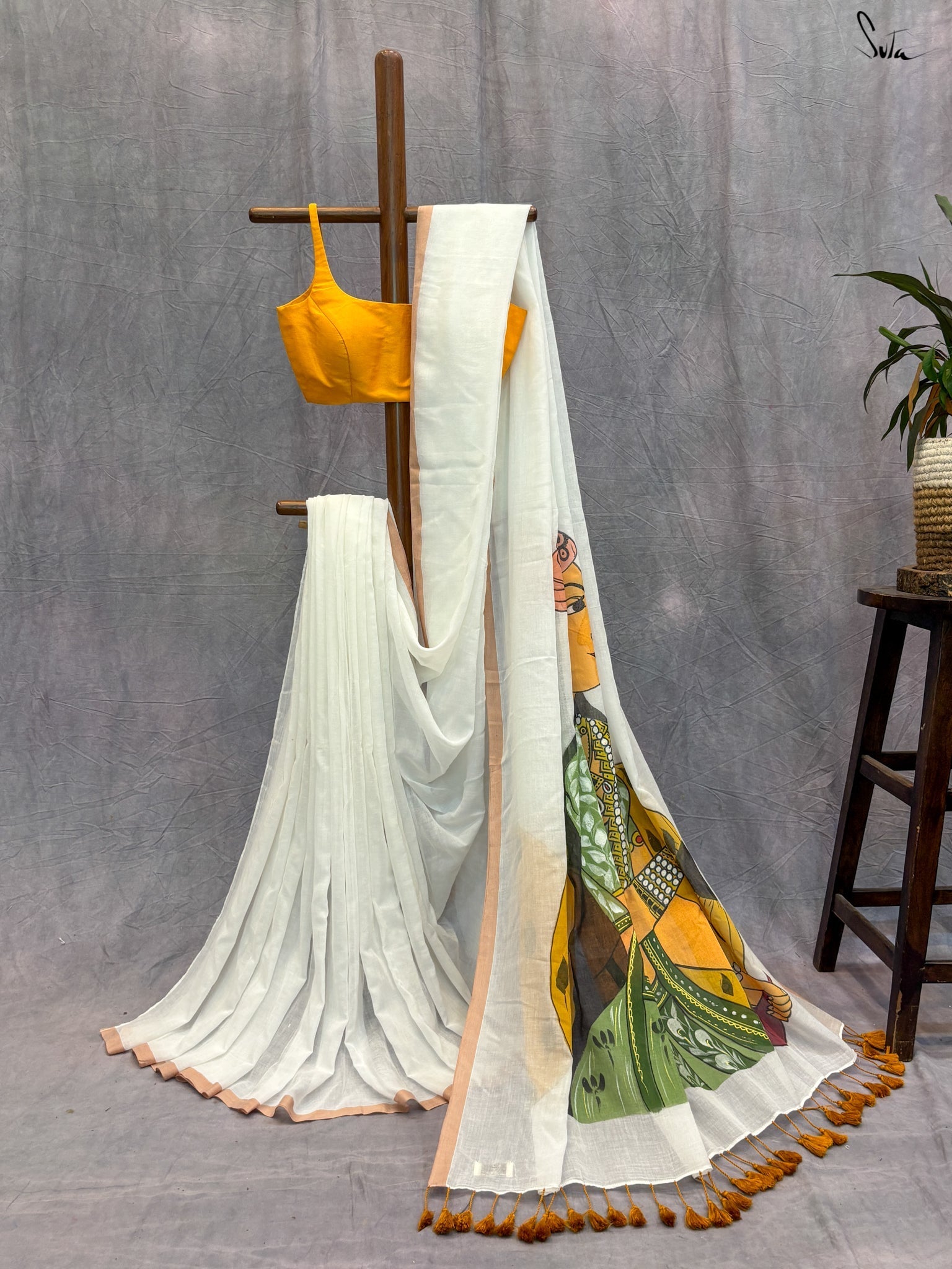 The mul cotton is what we call ˜made in heaven at Suta. Known in West Bengal as mul mul, the fabric is buttery soft and delicately beautiful. The weave of this fabric is very fine, and this lends a very fluid texture to it that makes draping it a breeze. It is truly like a hug that wraps you in its love!