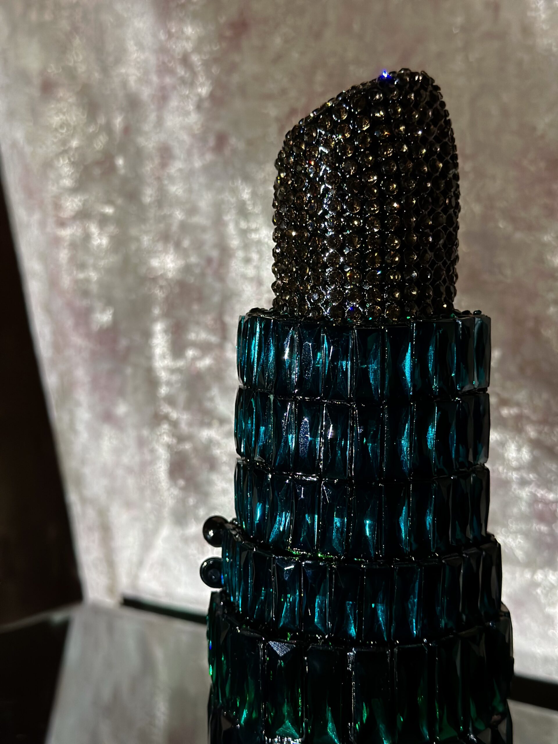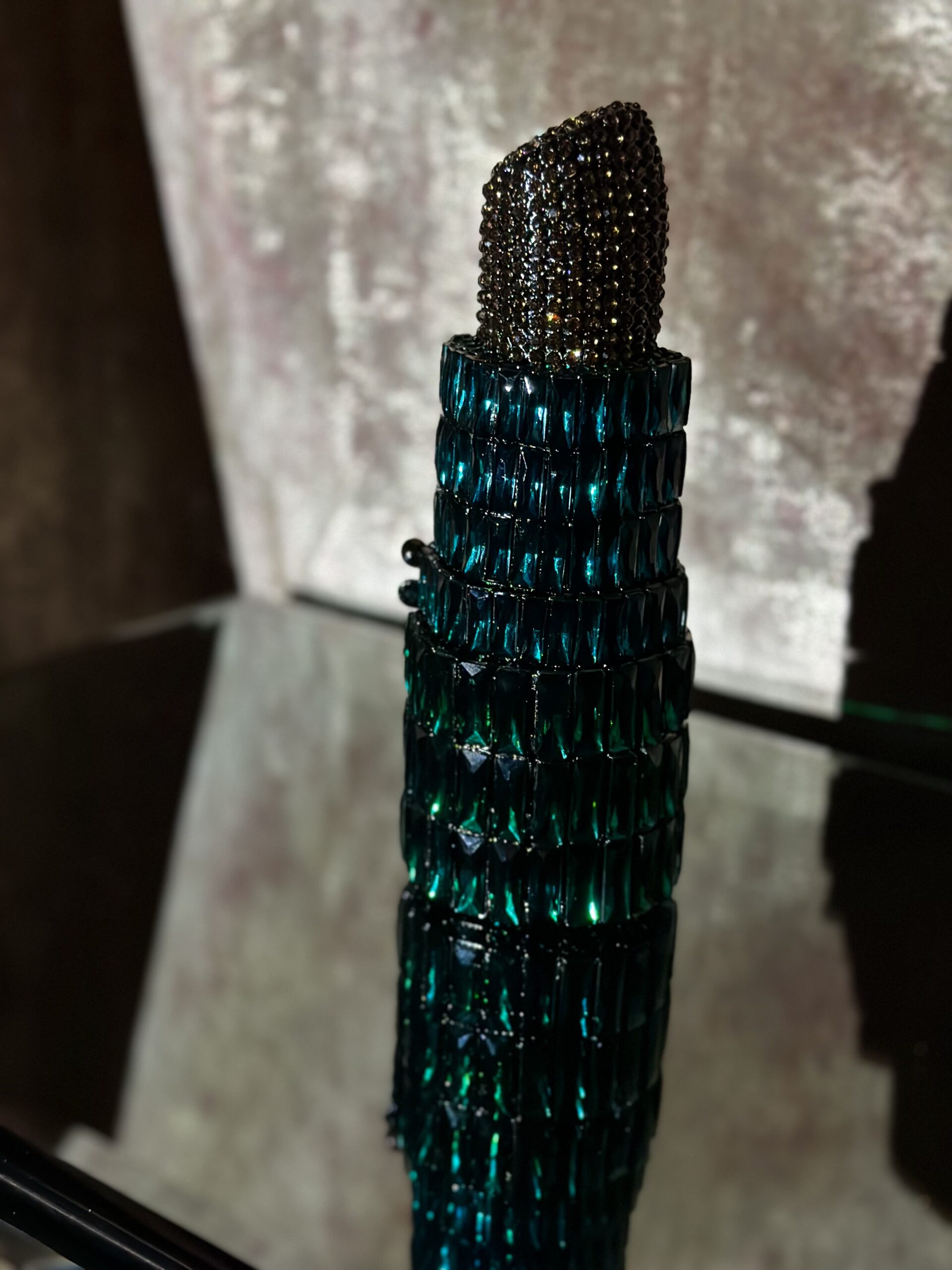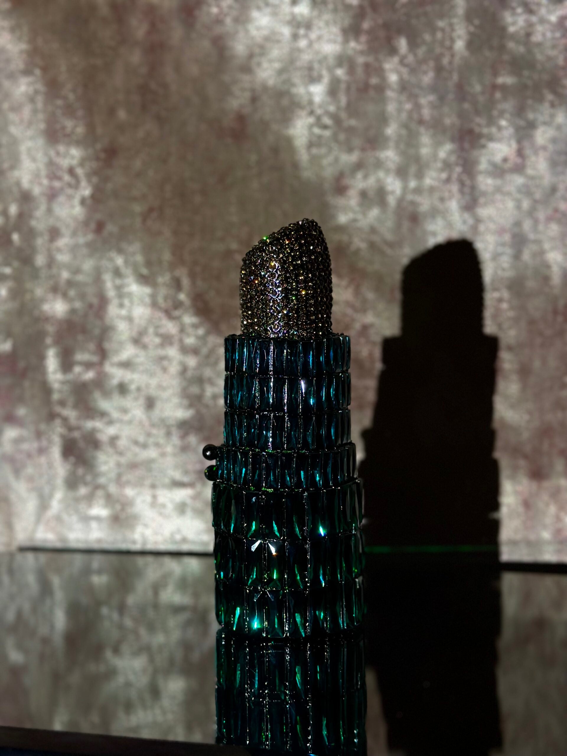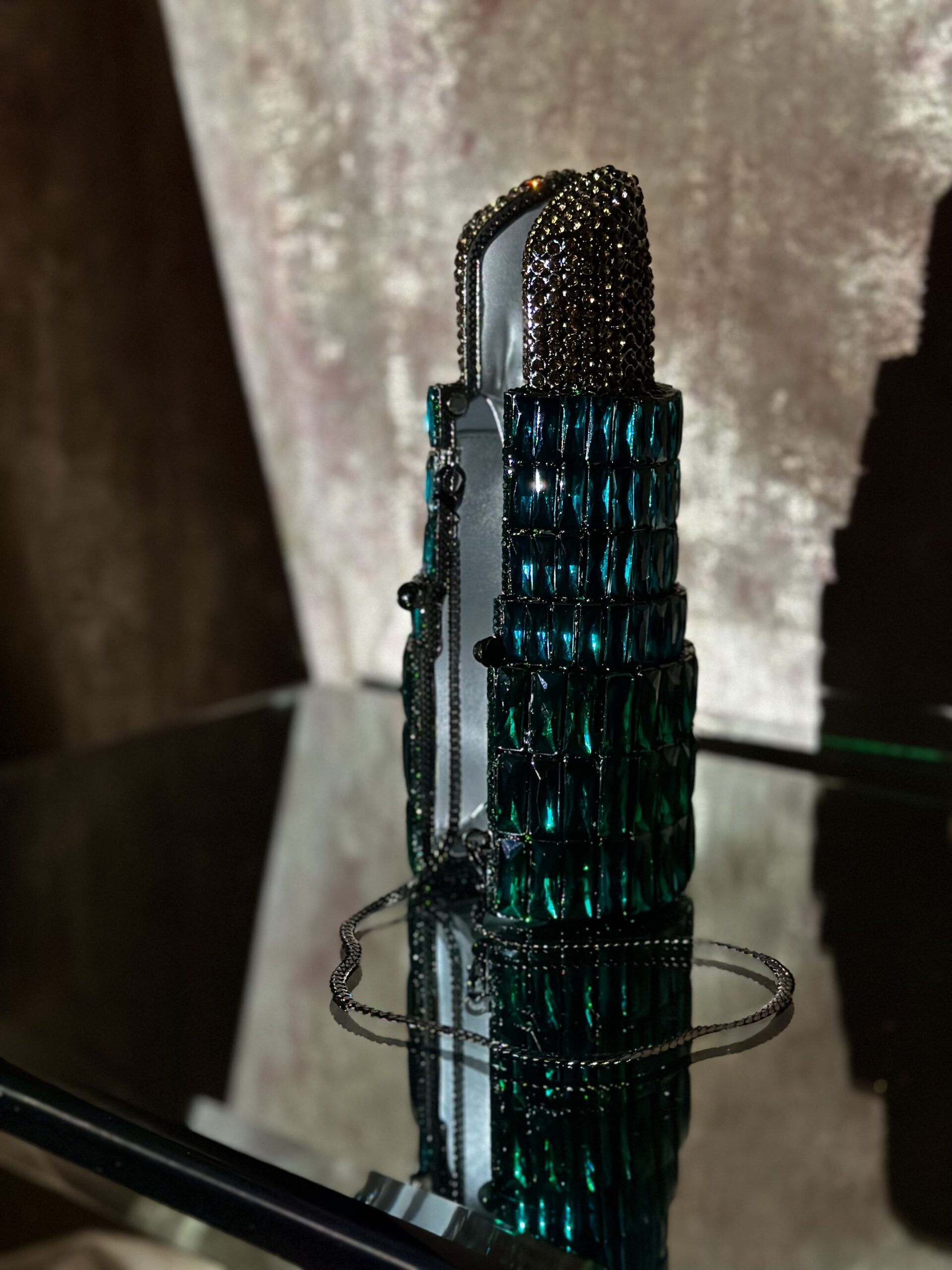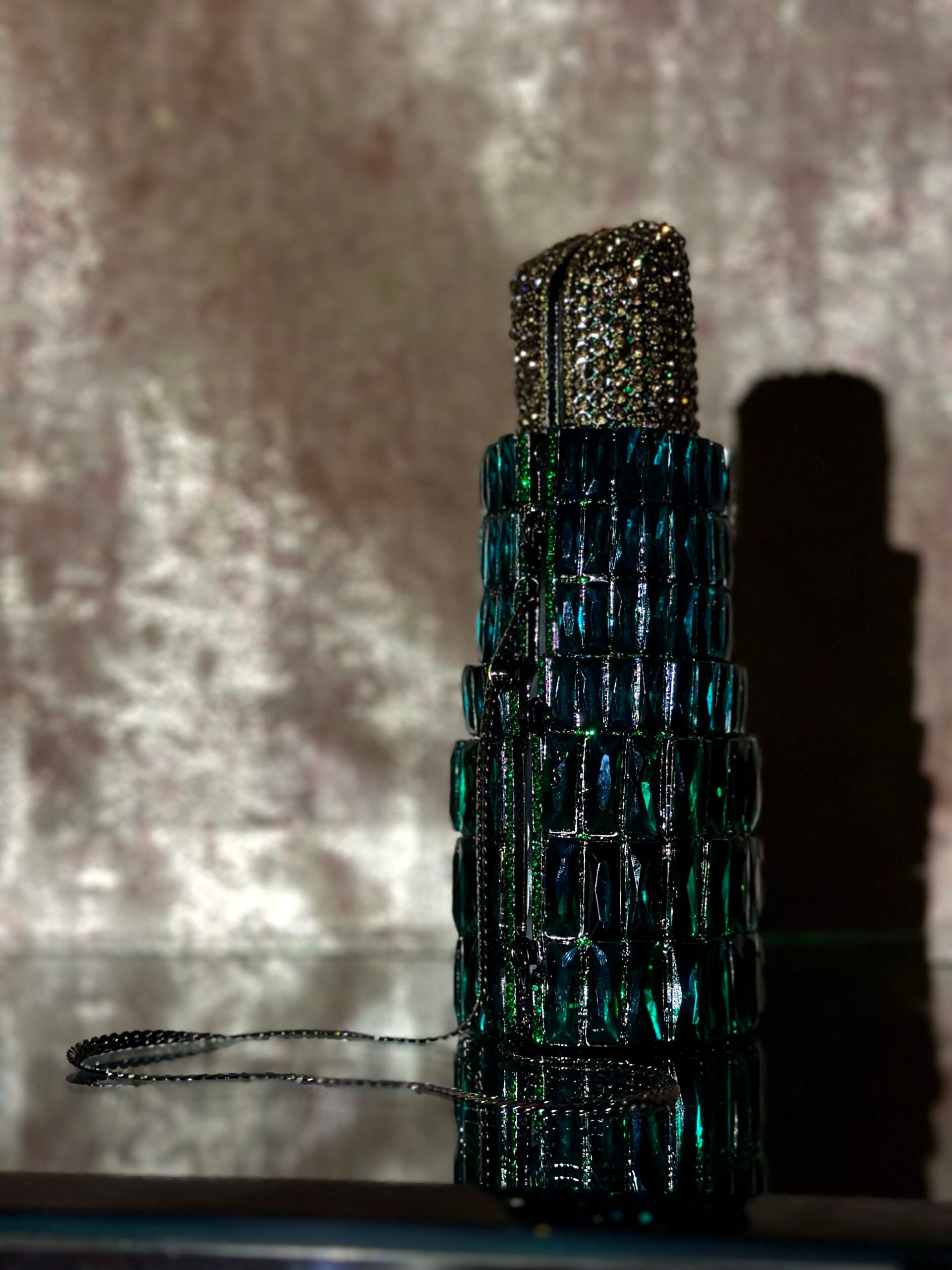 Extravagant Green Emerald & Gold Chain Clutch Set