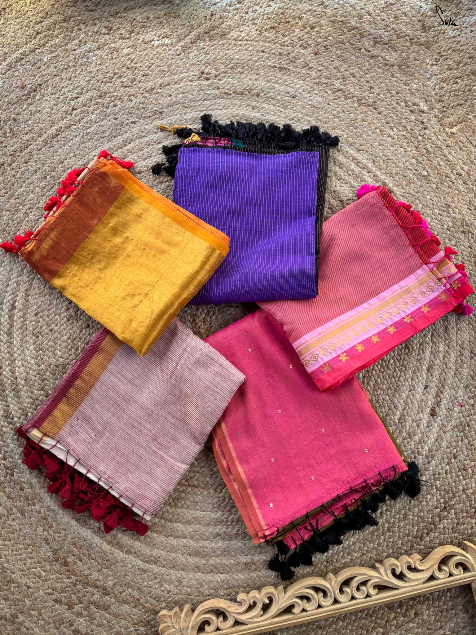 Indulge in the magic of a winter wonderland with our stylish "Frosted Dreams" saree combo! This mesmerizing collection of 5 sarees, curated from a myriad range of fabrics, is as cool as a frosty winter evening. Each saree is designed to fill every moment with joy and glam, with intricate designs, and a dash of sparkle.