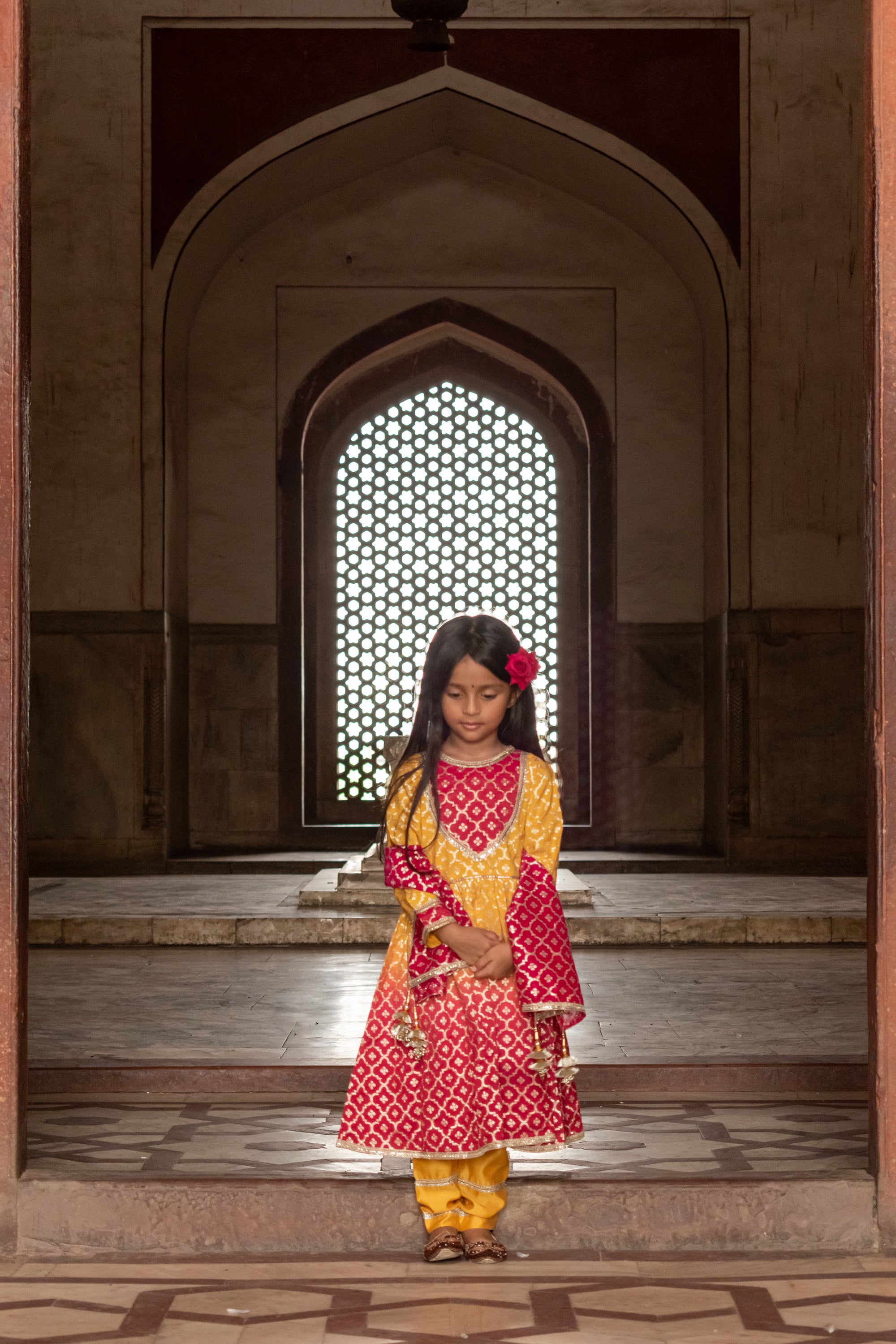 Fuschia Applique Ombre Kids Anarkali