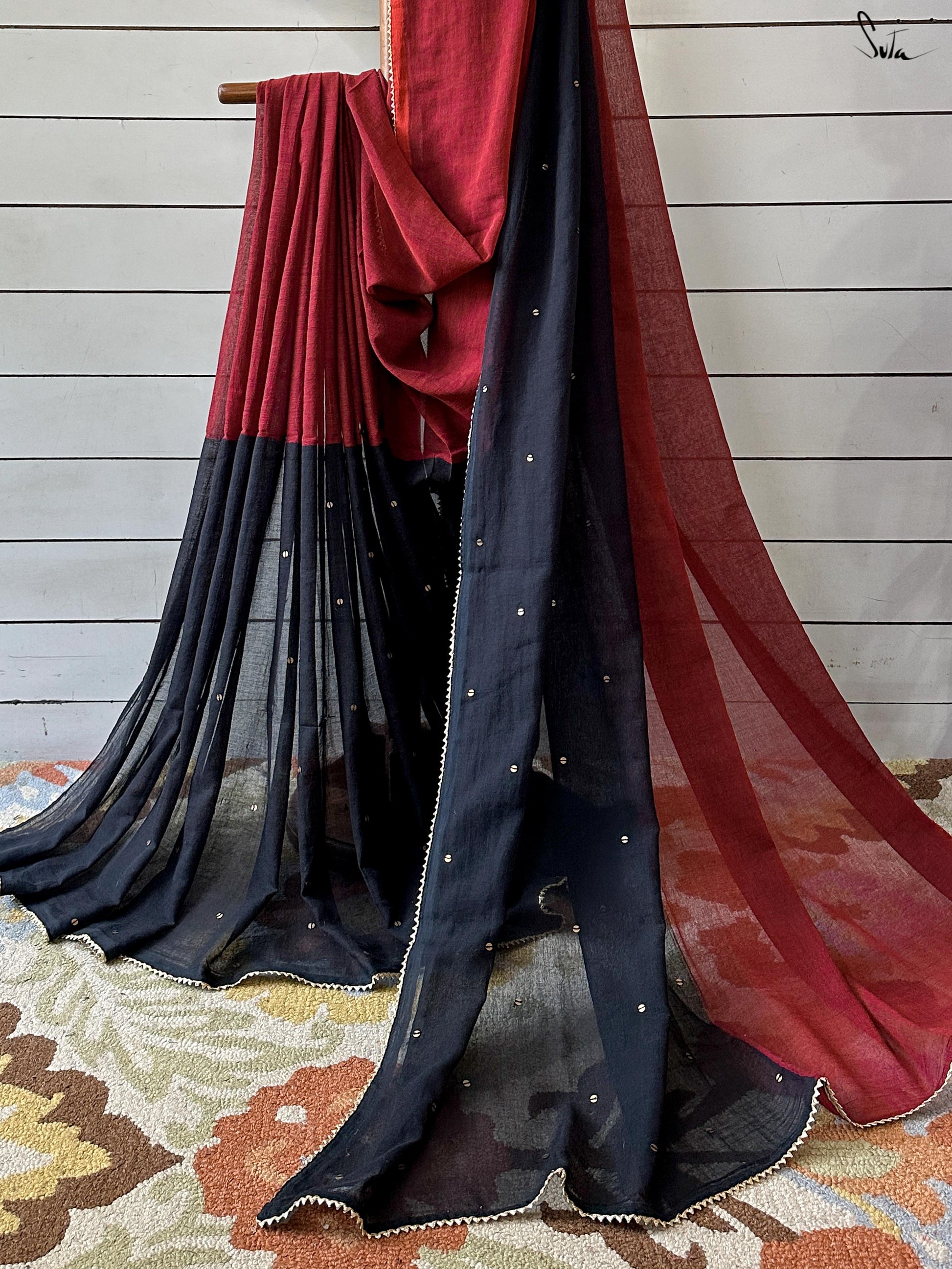 The mul cotton is what we call ˜made in heaven at Suta. Known in West Bengal as mul mul, the fabric is buttery soft and delicately beautiful. The weave of this fabric is very fine, and this lends a very fluid texture to it that makes draping it a breeze. It is truly like a hug that wraps you in its love!