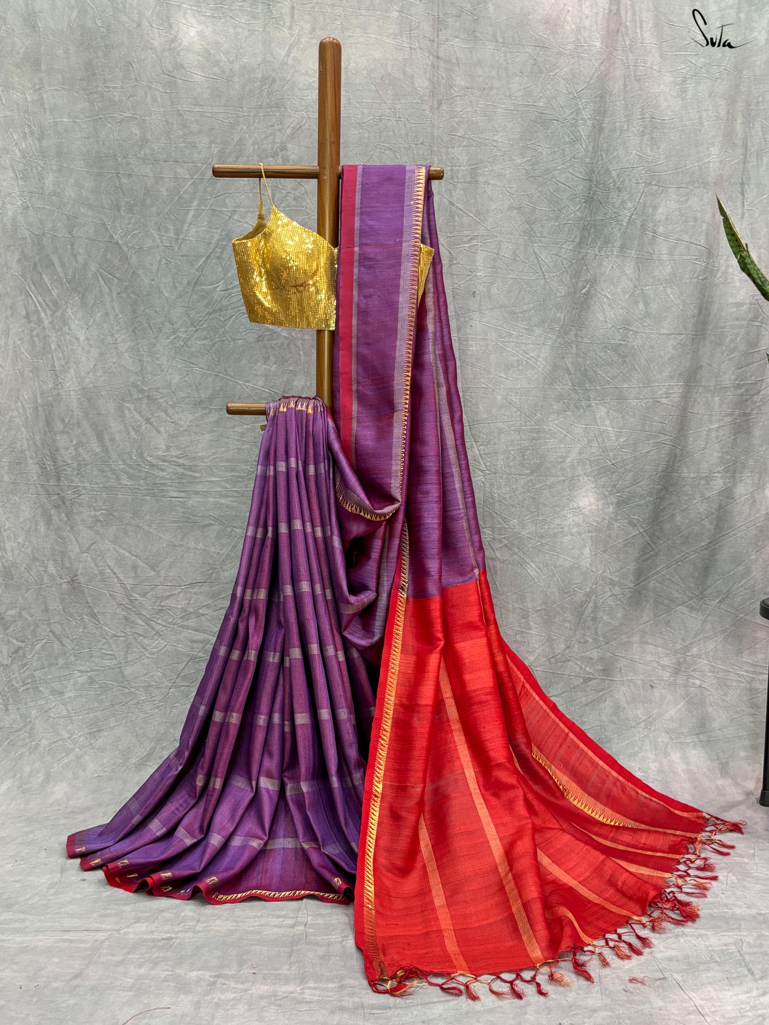 Wear a piece of elegance with this Tussar silk saree with cutwork patchwork designs that make for a gorgeous, spotlight-ready drape!
