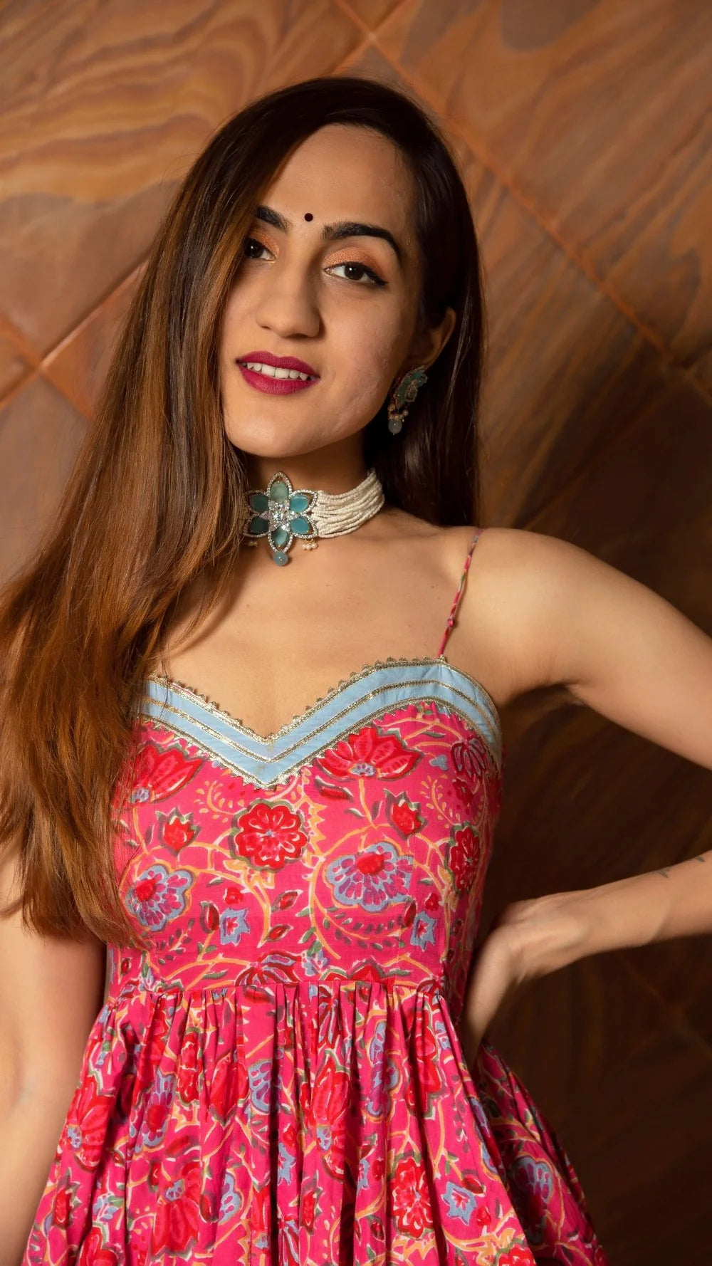 Ganguar adhya Floral Hand Block Pure Cotton Anarkali set