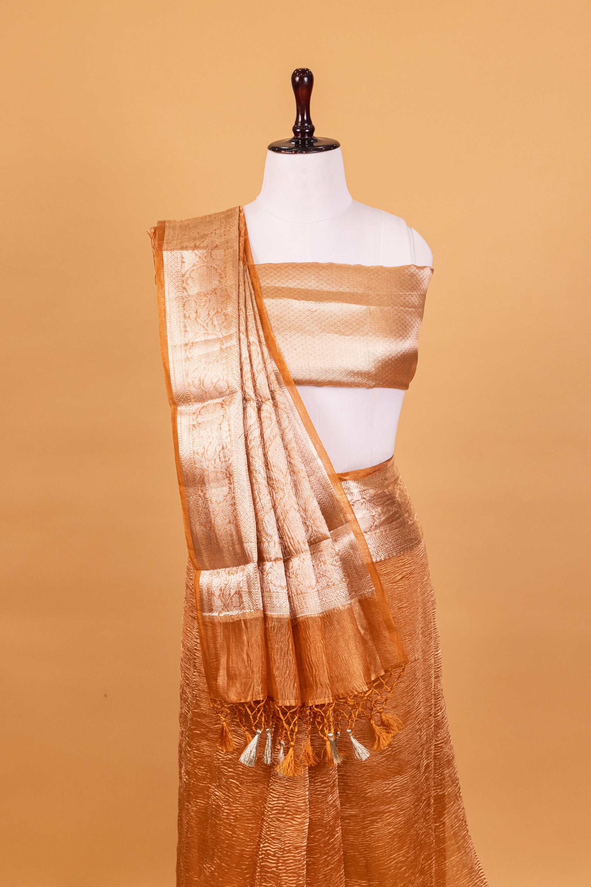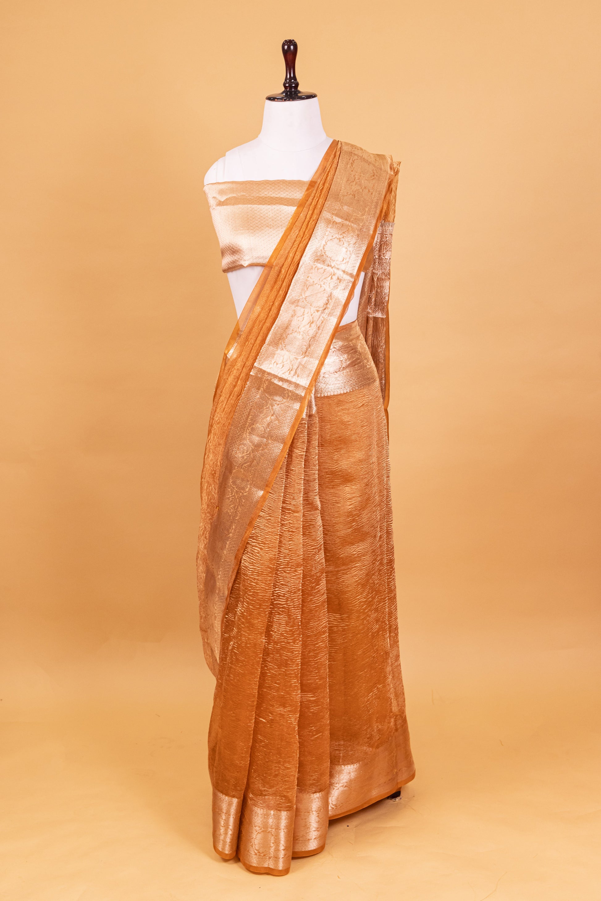 Description: Unleash your bold and adventurous side with our Gold Tissue Pure Silk Dyed Saree. The luxurious pure silk fabric and dazzling gold hue will make you stand out in any event. Elevate your style game and make a statement with this saree's elegant and captivating design. Take a risk, be fearless!