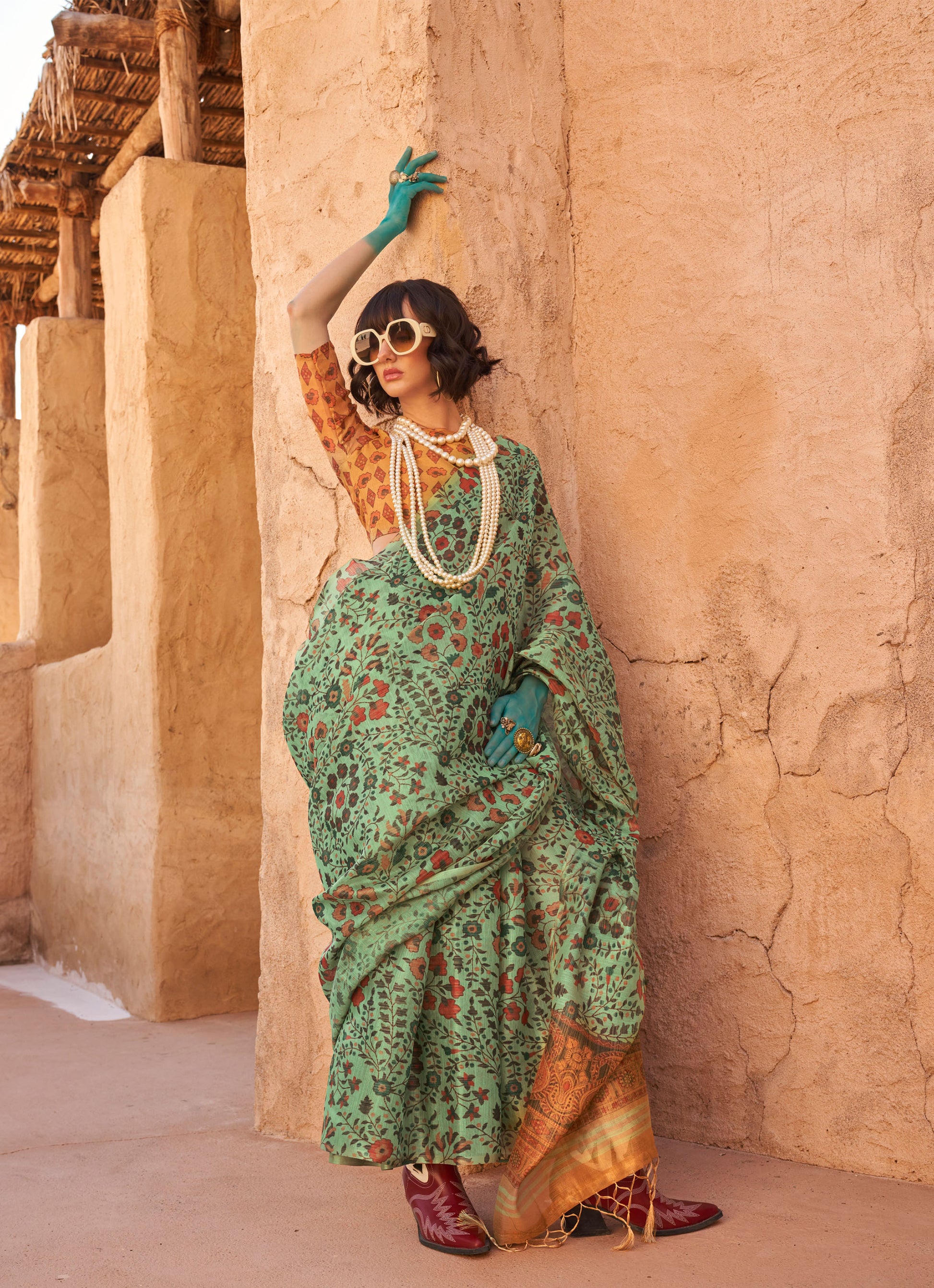 Does your wardrobe need more versatility? Then, check out this. Let your skin feel the refreshing touch as you adorn this superior-quality lightweight Saree to match the overall modest design.