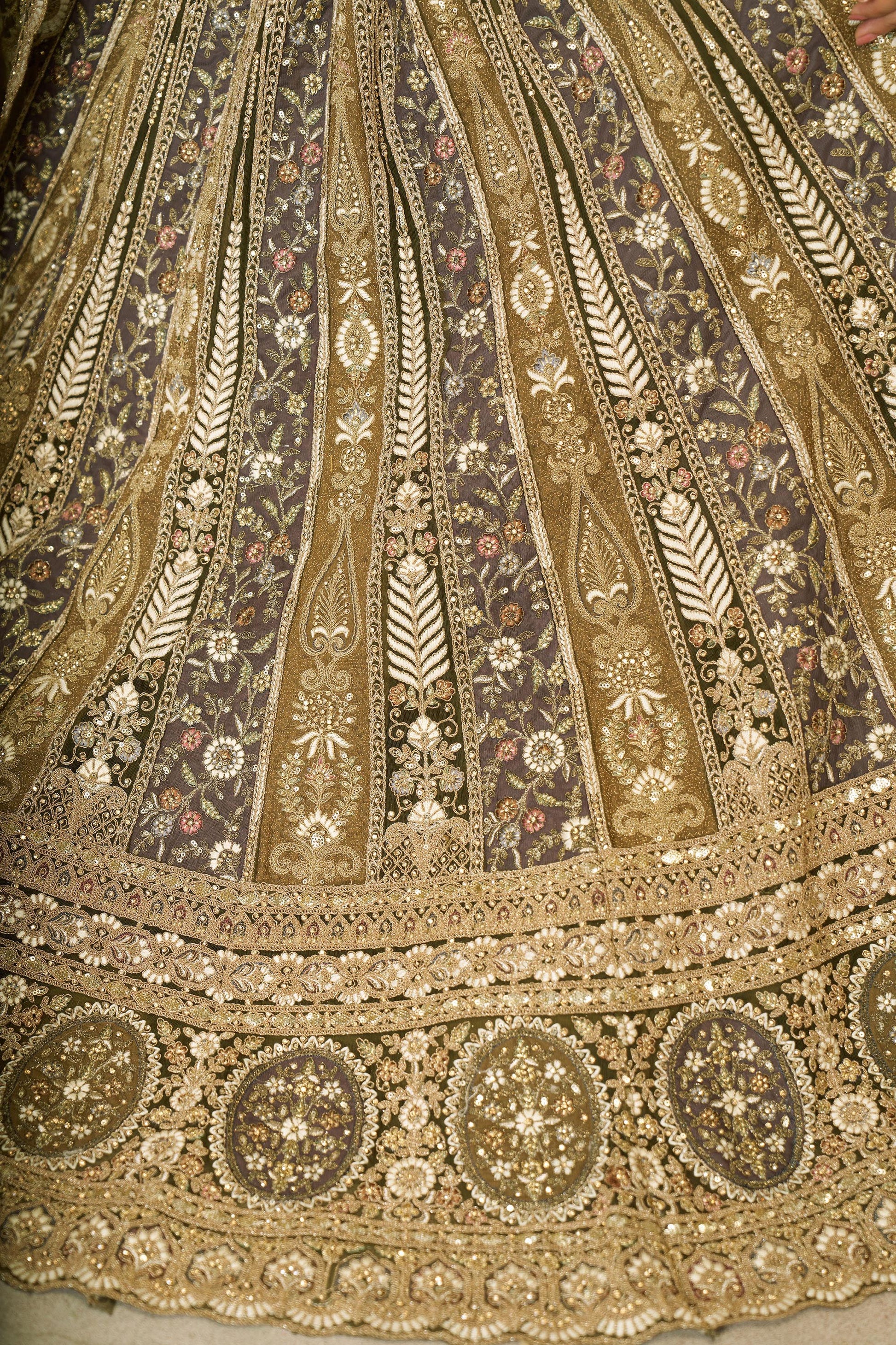 Embroidery and Embellishments: Pay attention to the embroidery style and embellishments on the lehenga. Choose motifs and patterns that resonate with your personal style and the overall theme of the wedding.