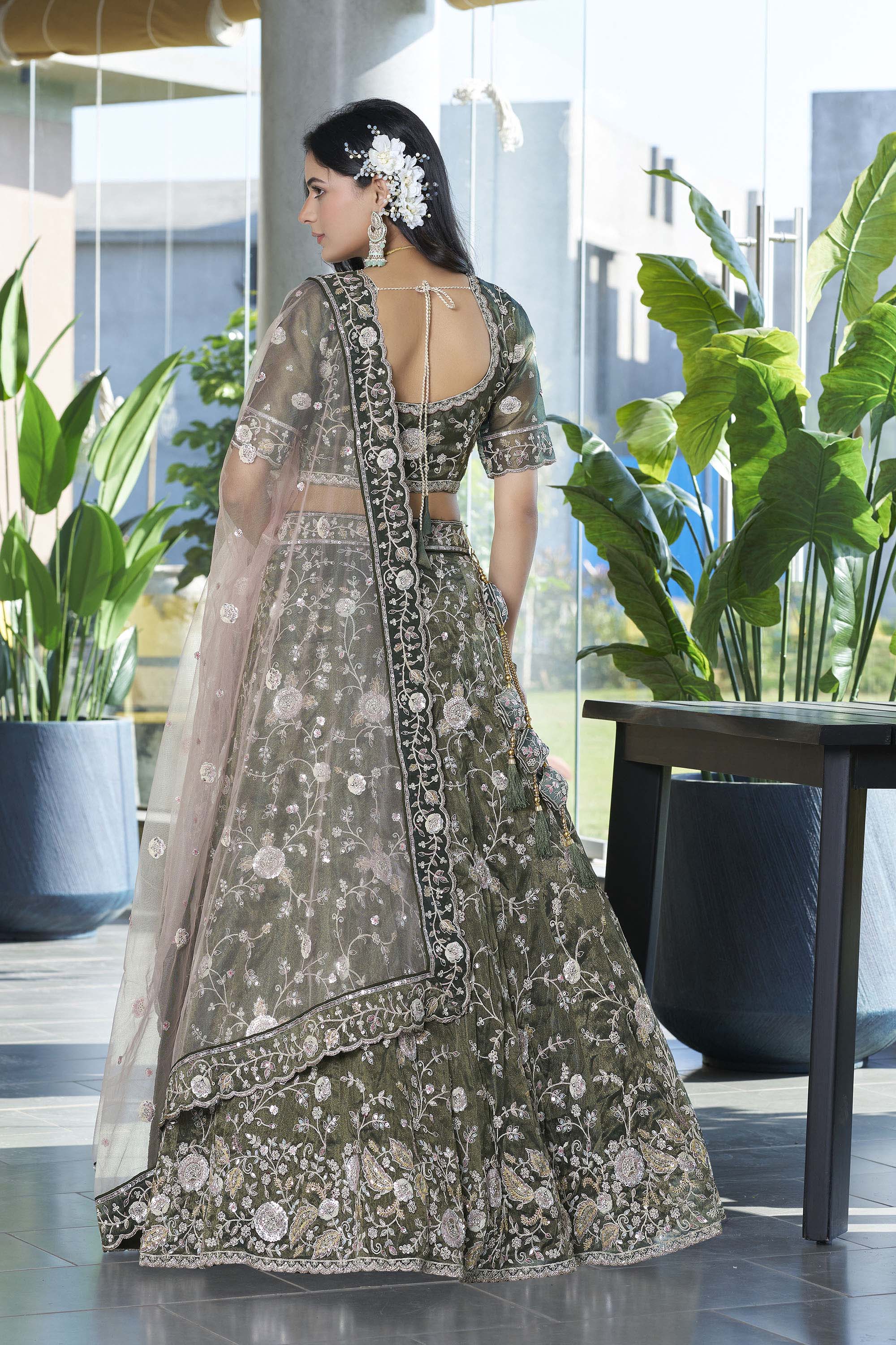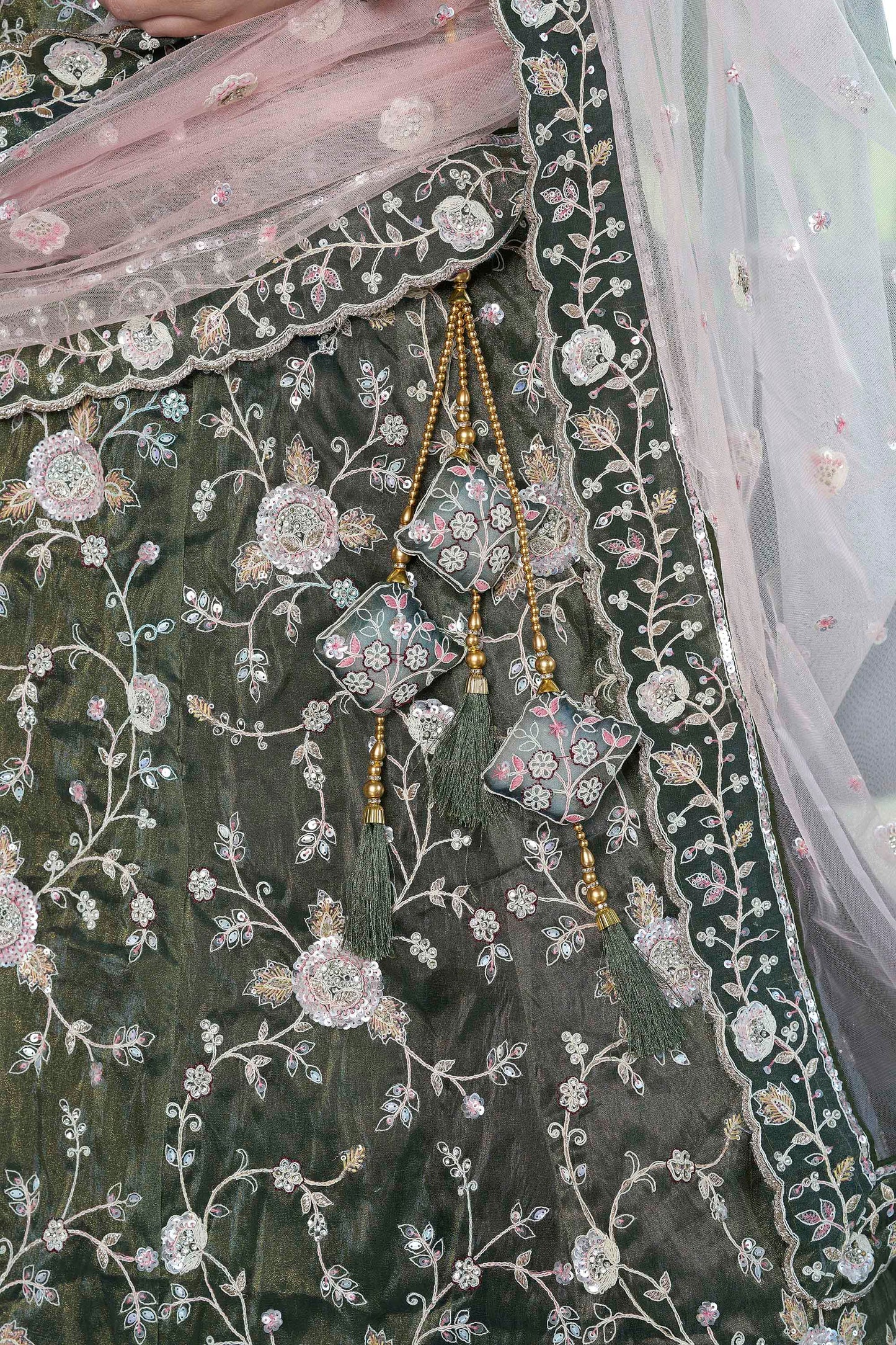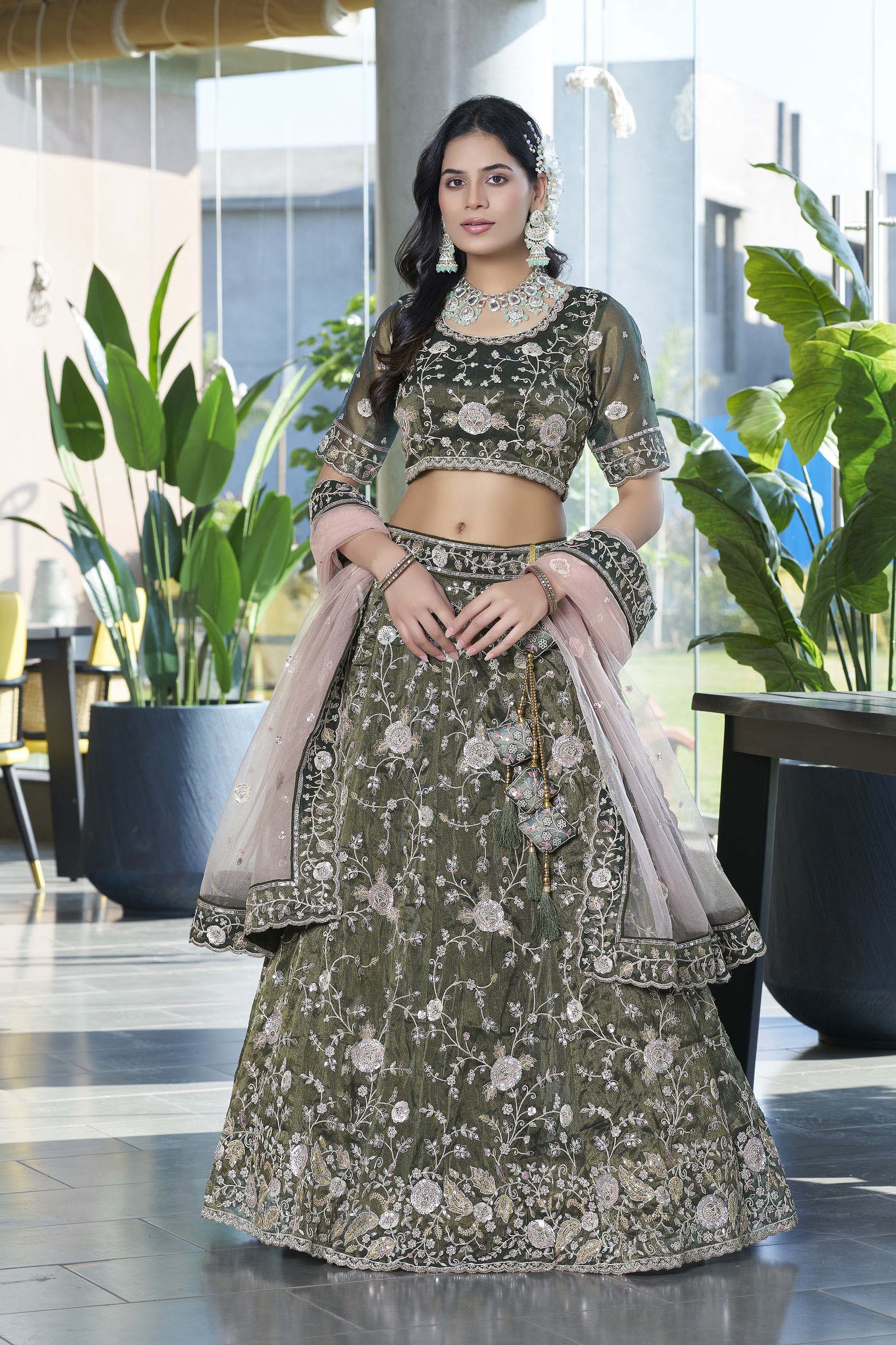 Green Zarkan Embroidery Silk Mehendi Lehenga
