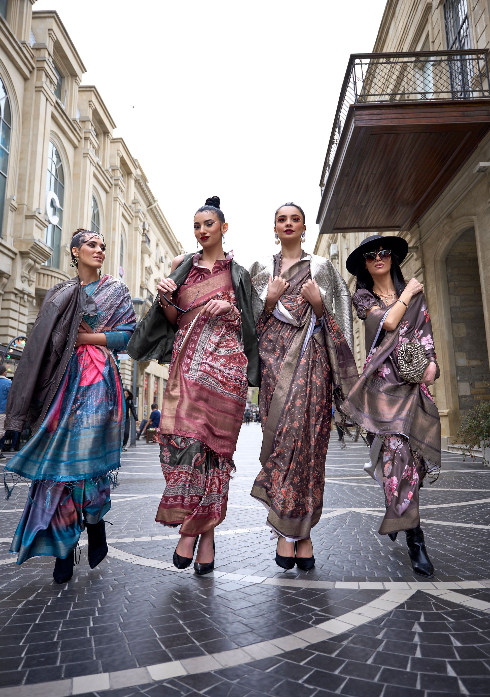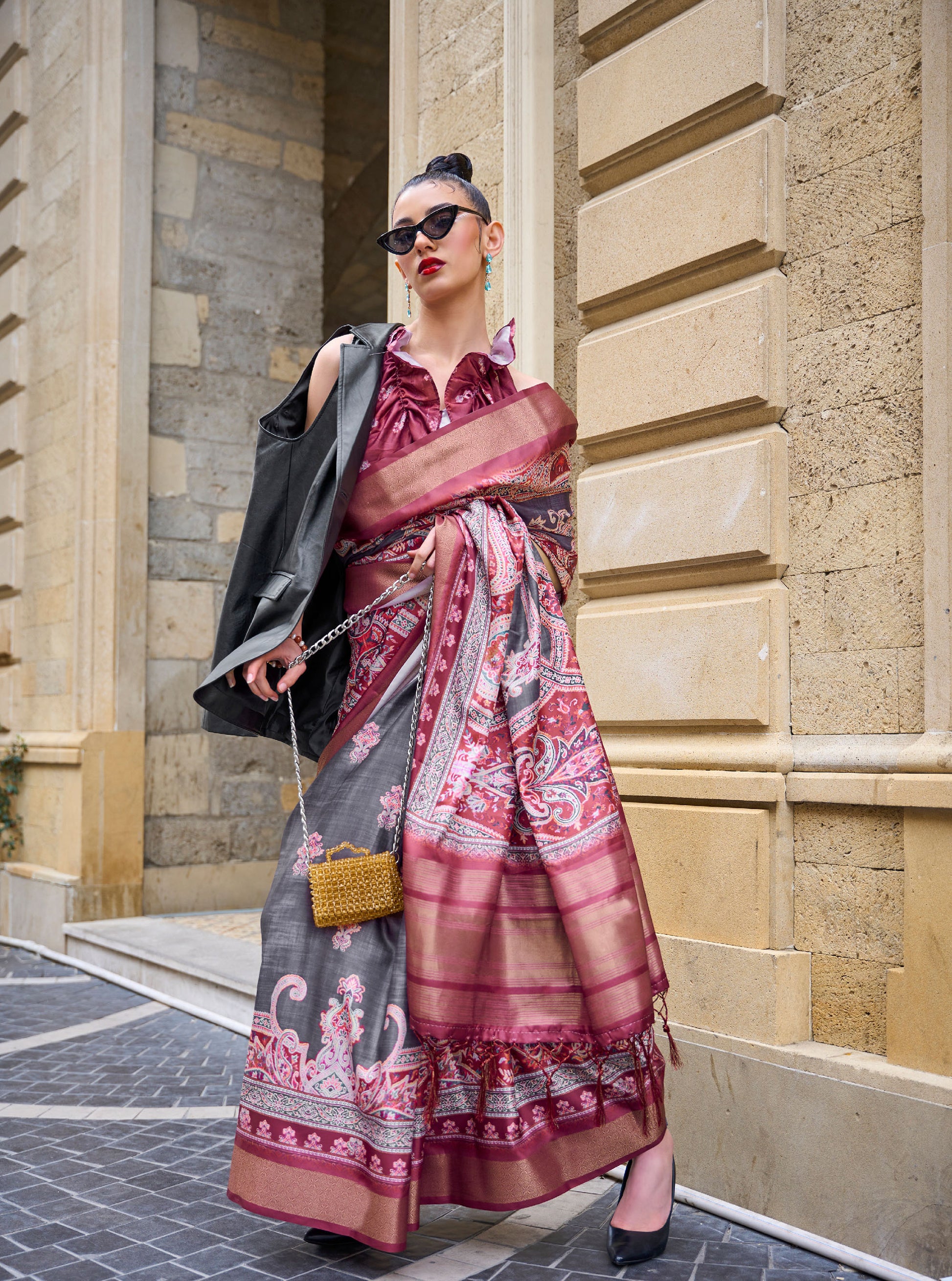 Grey and Wine Kopper Pure Gaji Silk Handloom Saree
