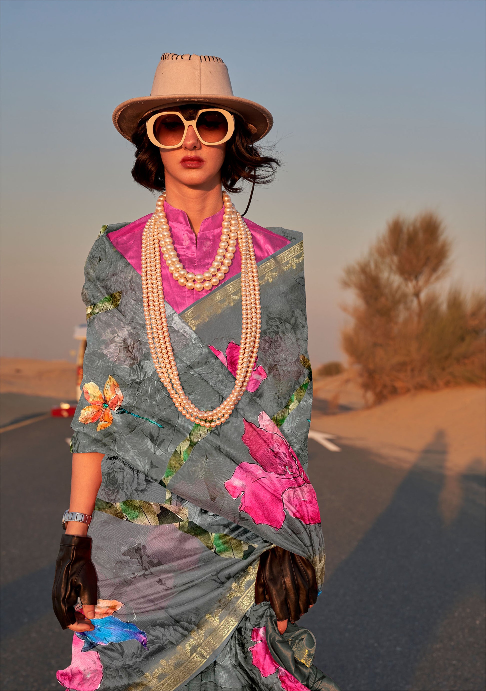 Does your wardrobe need more versatility? Then, check out this. Let your skin feel the refreshing touch as you adorn this superior-quality lightweight Saree to match the overall modest design.
