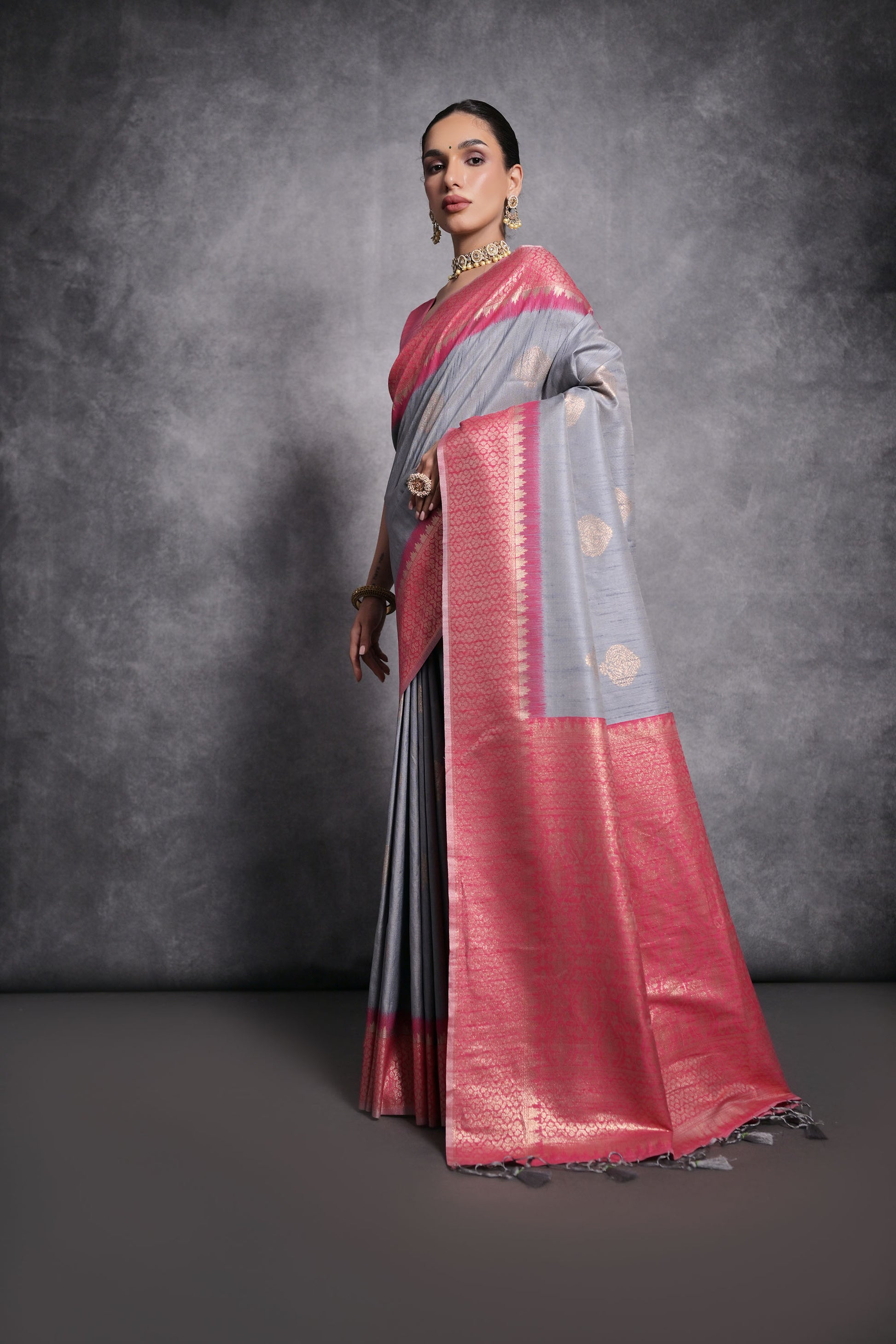 Grey Vaishali Tussar Silk Zari Woven Saree