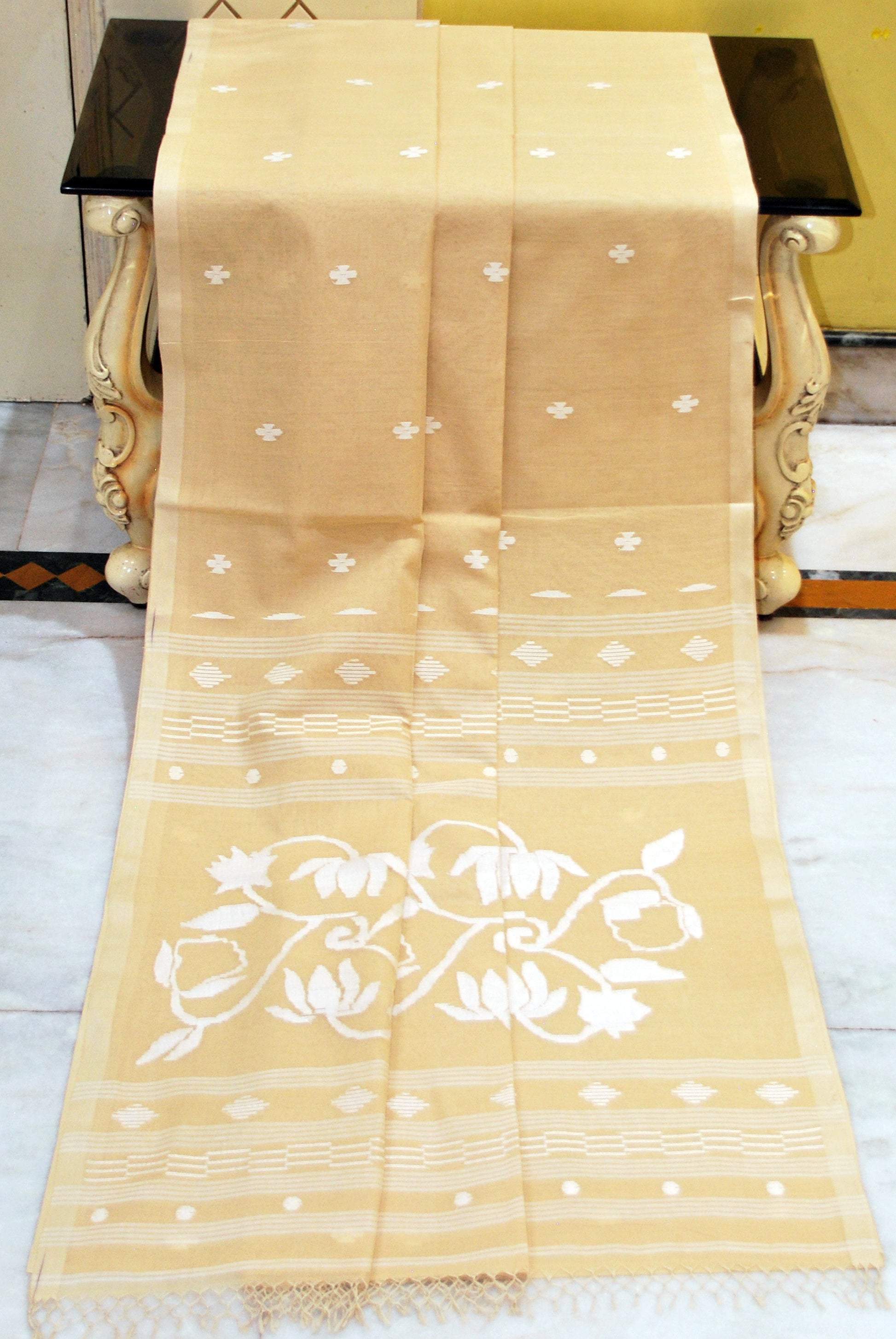 Hand Woven Work Cotton Jamdani Saree in Warm Beige and Off White