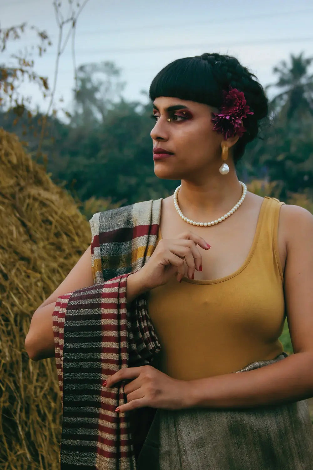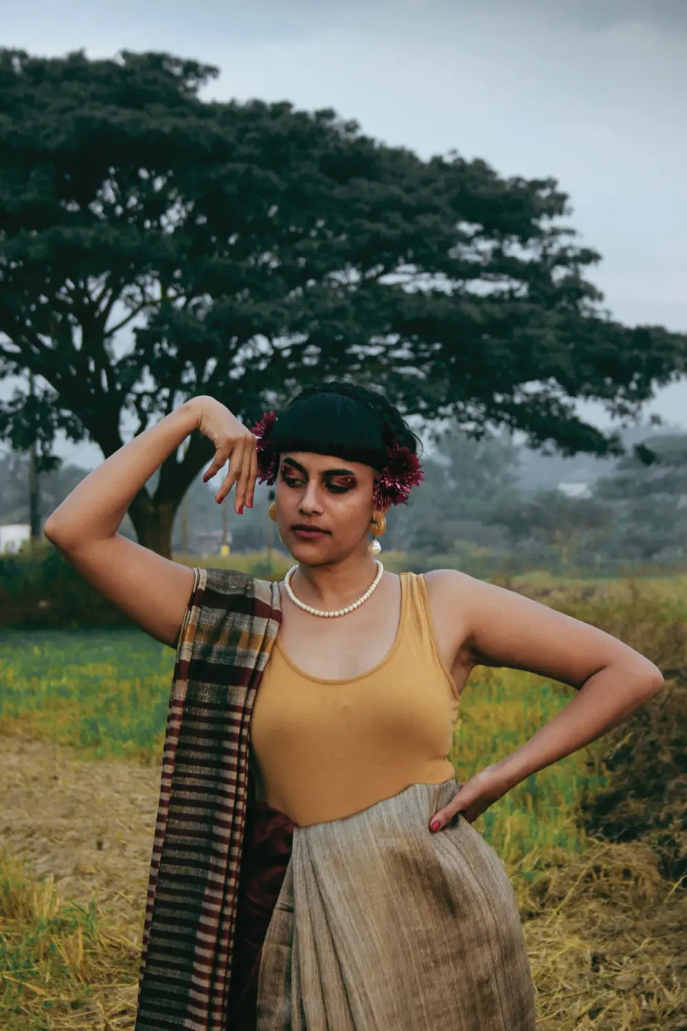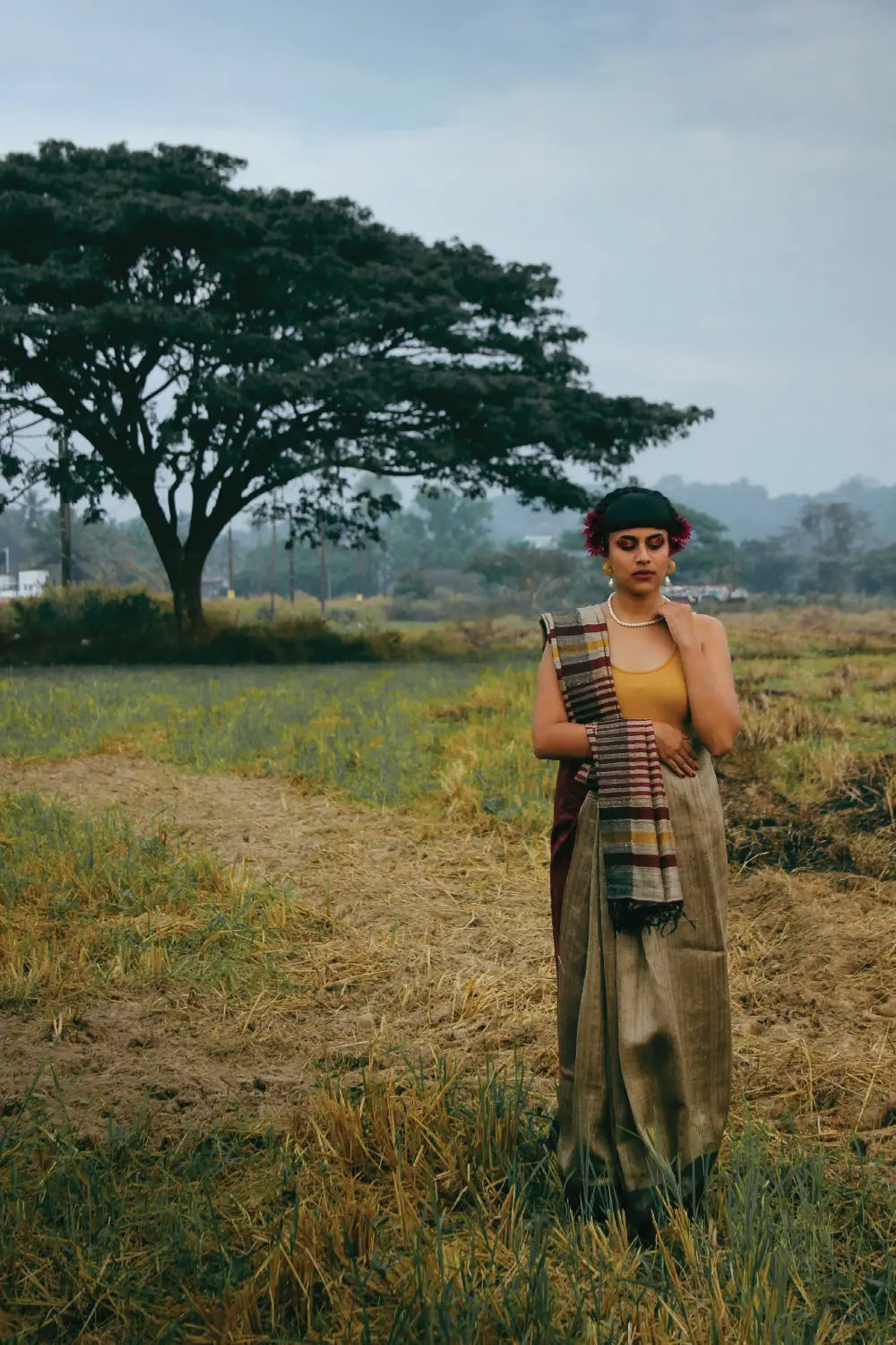 Explore sophistication with our Handloom Light Brown Kosa Silk Saree, an ode to timeless allure. Enhanced by a deep Maroon pallu, this saree harmonizes tradition with contemporary flair. Draping it uniquely, inspired by the provided picture, unveils a modern, avant-garde style. The delicate light brown Kosa silk radiates refinement, adding a unique and modern touch to classic saree aesthetics. Embrace a fashion statement that transforms your look, seamlessly blending the grace of handloom craftsmanship with a modern edge. Redefine your style effortlessly with this distinctive piece.