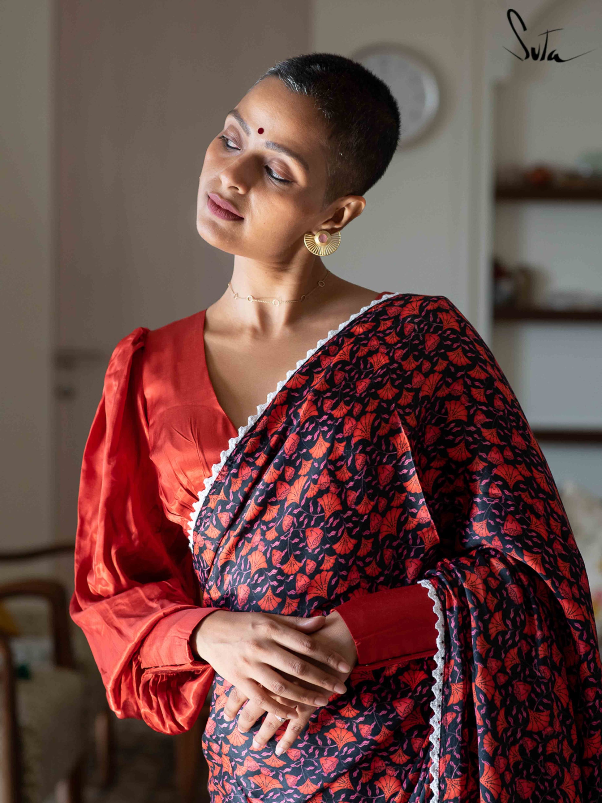 Note : Please note that these sarees will not come with a fall so as to retain and highlight the beautiful flow of the fabric. However, you may choose to have a fall attached at your own discretion.