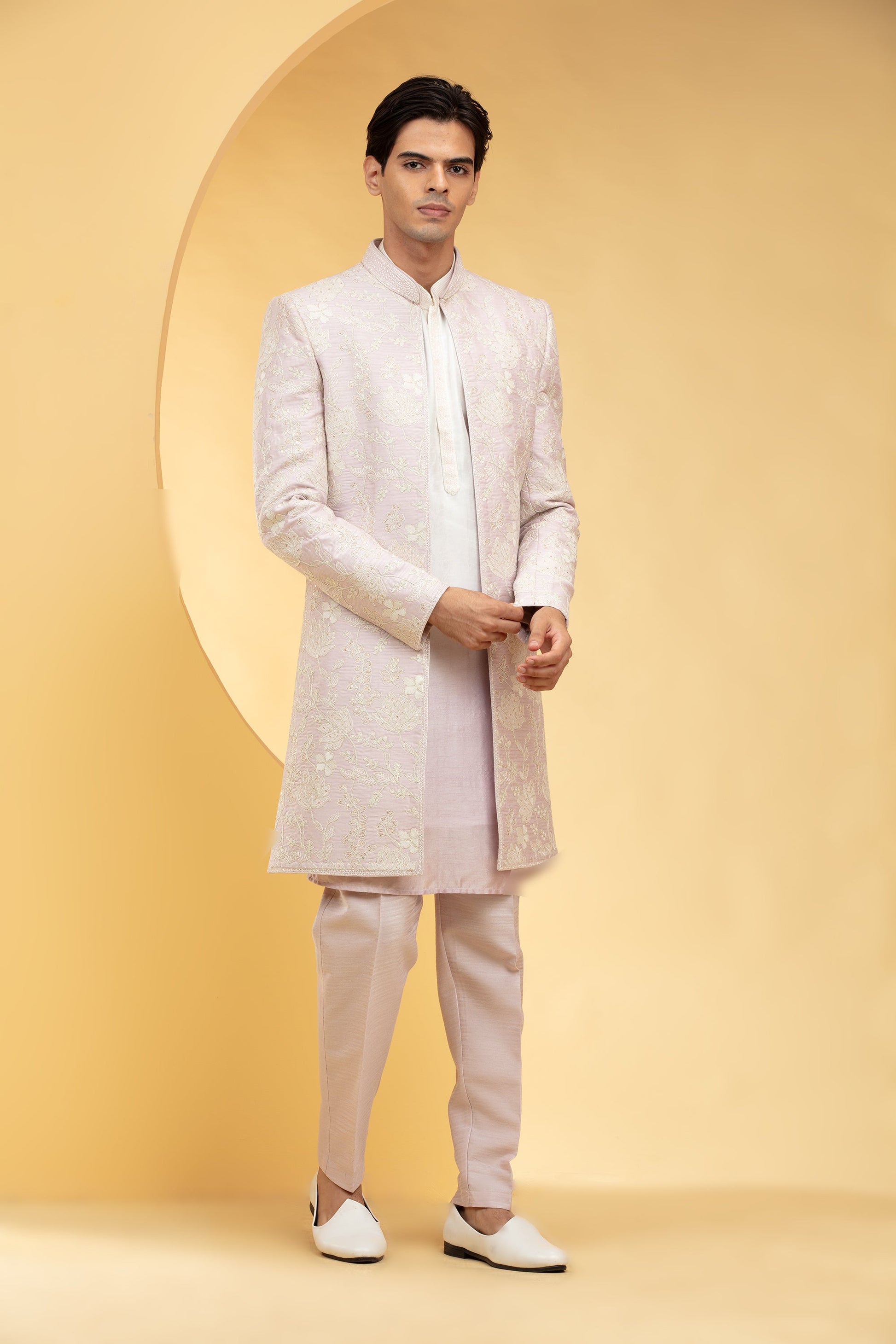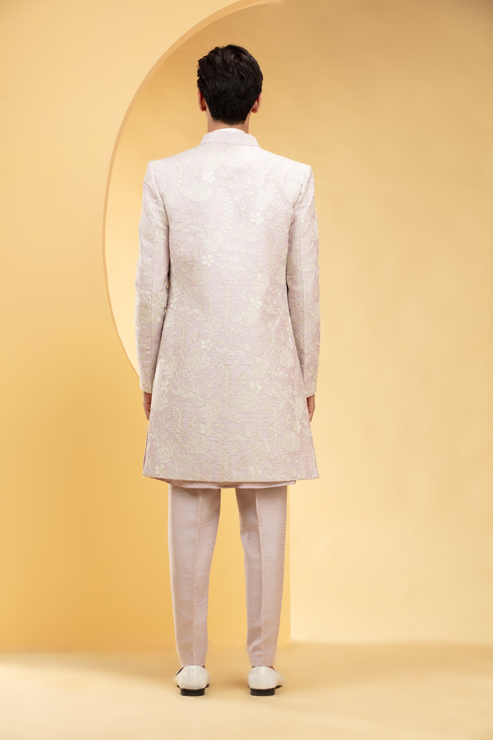 Heavenly Pink Ombre open Indo Western set with all over thread work