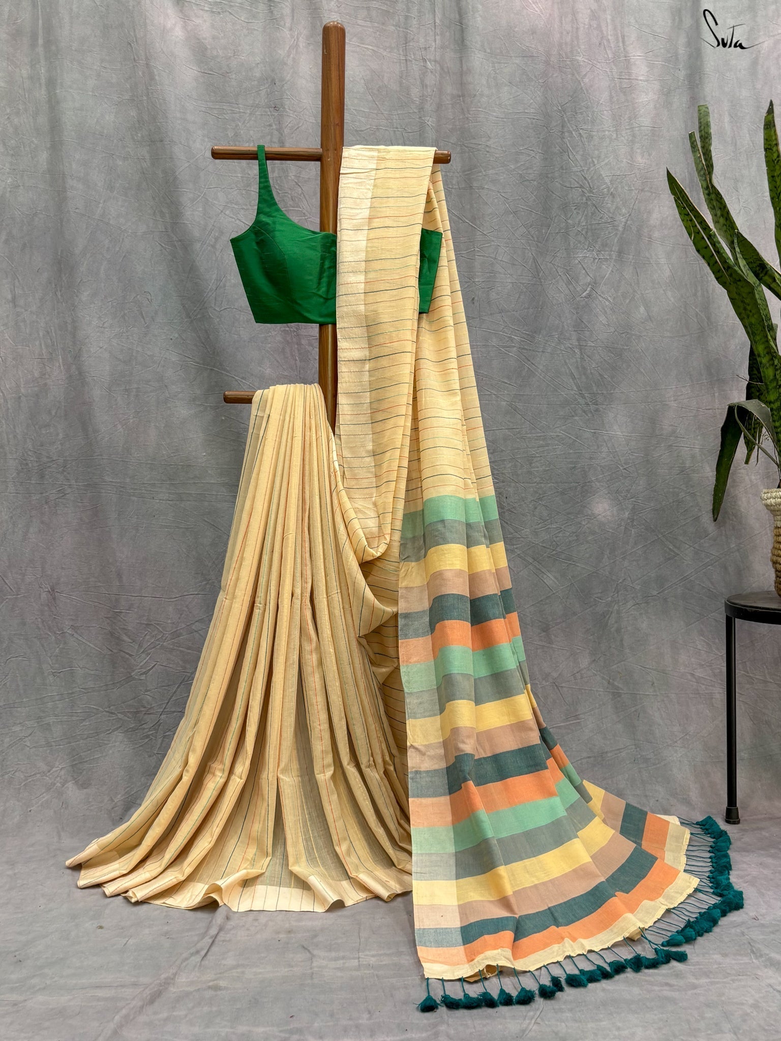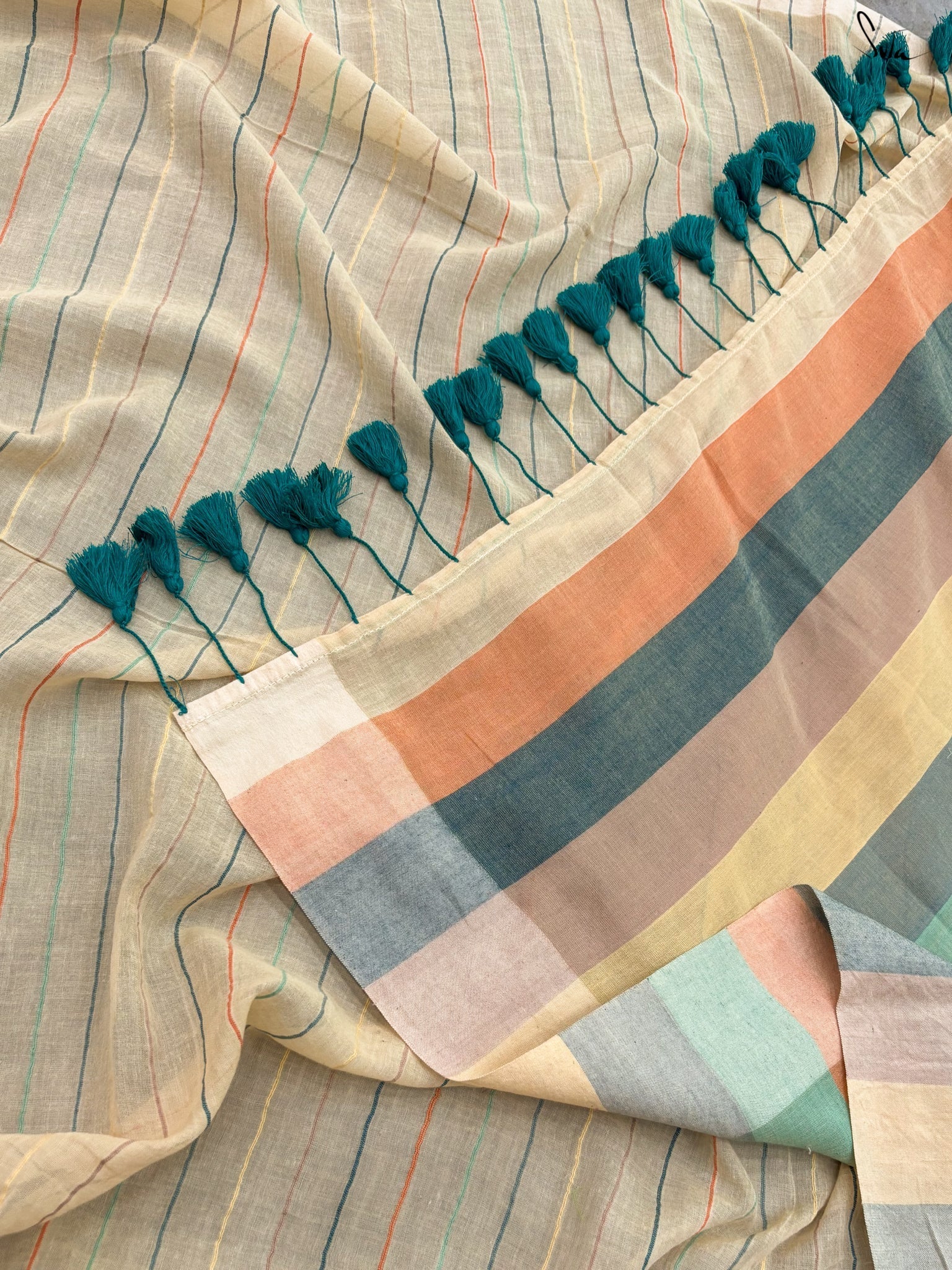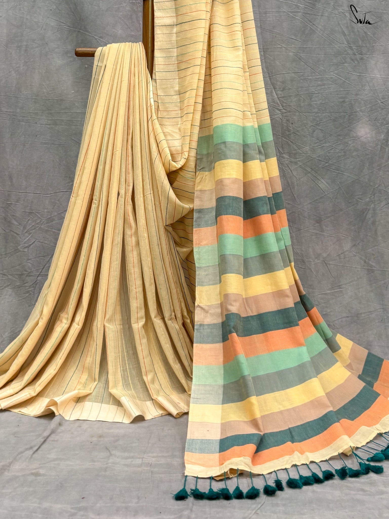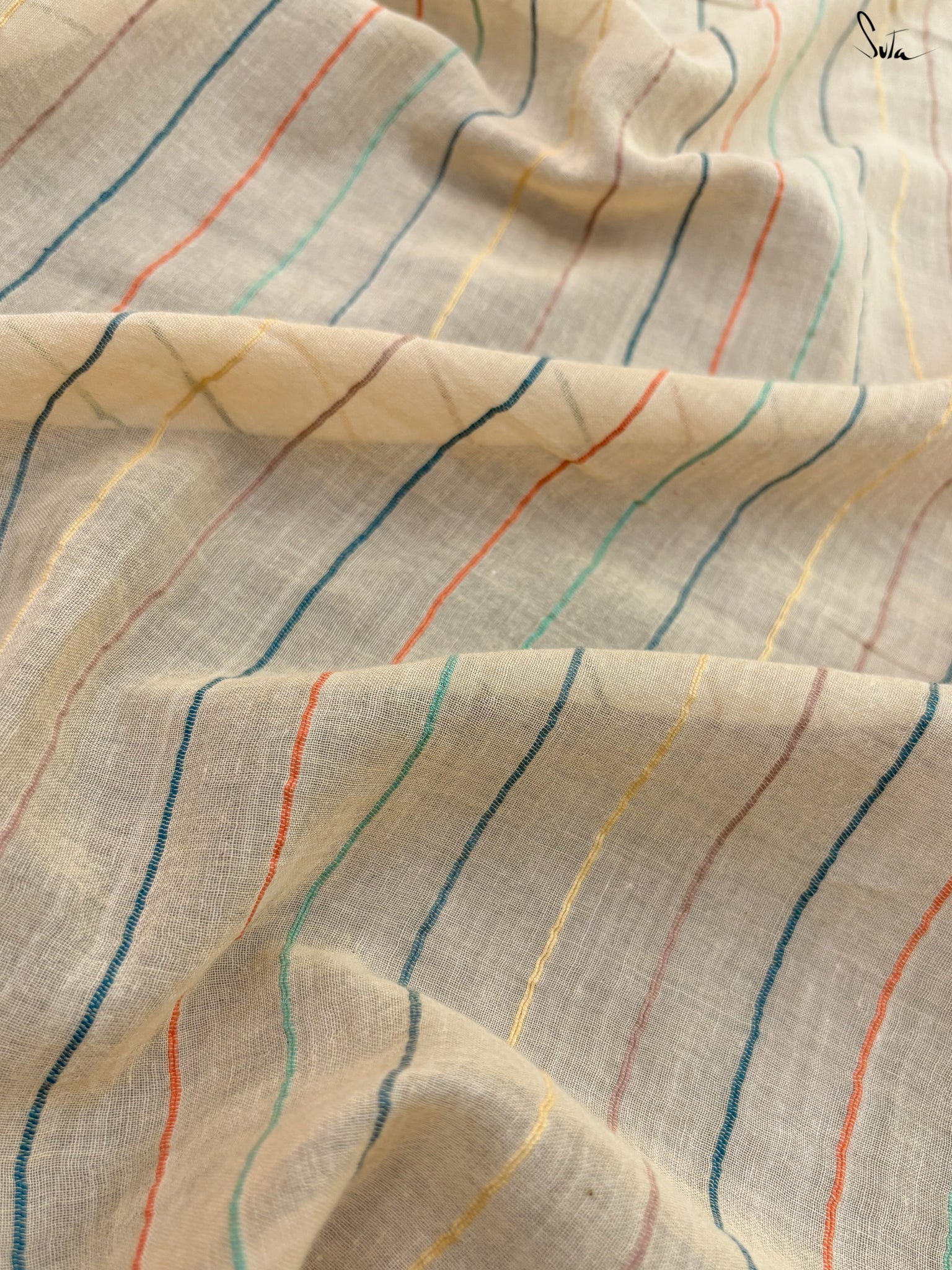 The mul cotton is what we call ˜made in heaven at Suta. Known in West Bengal as mul mul, the fabric is buttery soft and delicately beautiful. The weave of this fabric is very fine, and this lends a very fluid texture to it that makes draping it a breeze. It is truly like a hug that wraps you in its love!