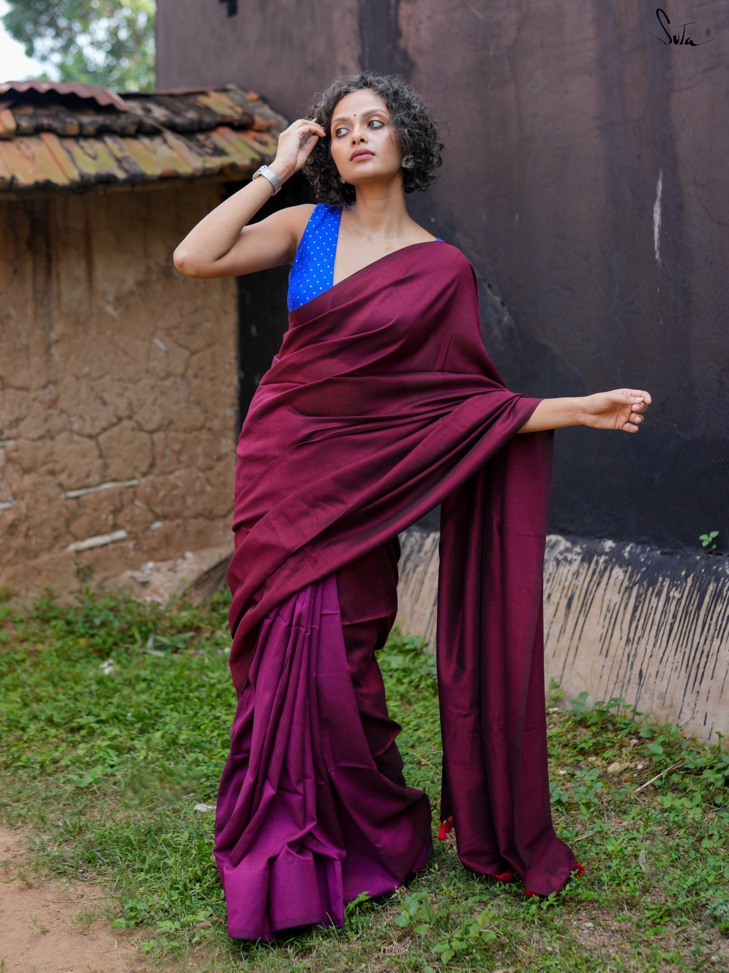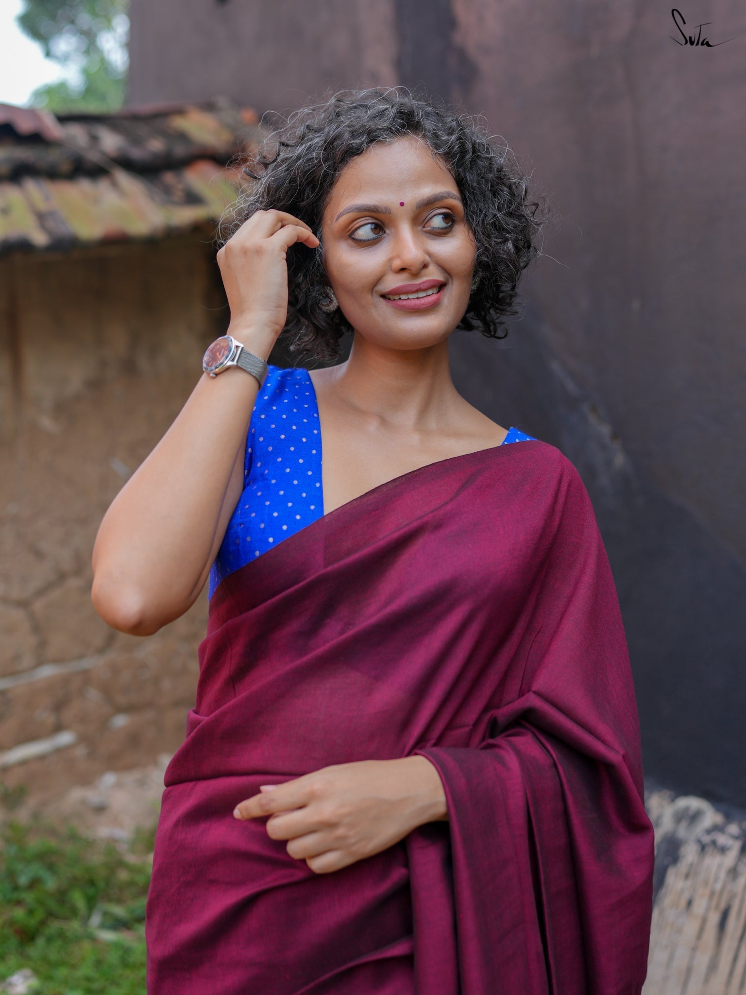 Blouse: Su, the model is wearing size S of blouse is from our in house collection. To view similar blouses