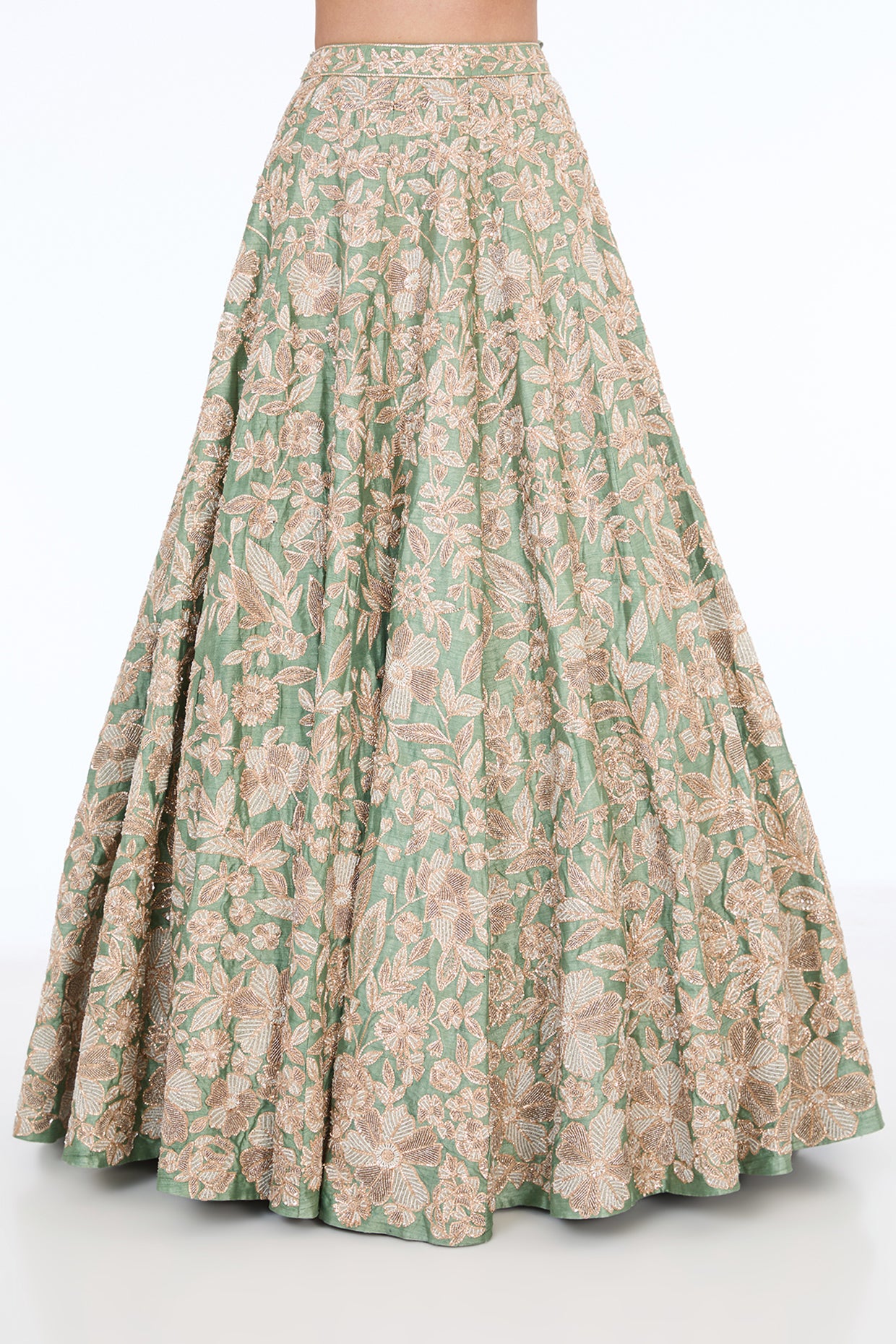 ice blue raw silk hand embroidered lehenga set