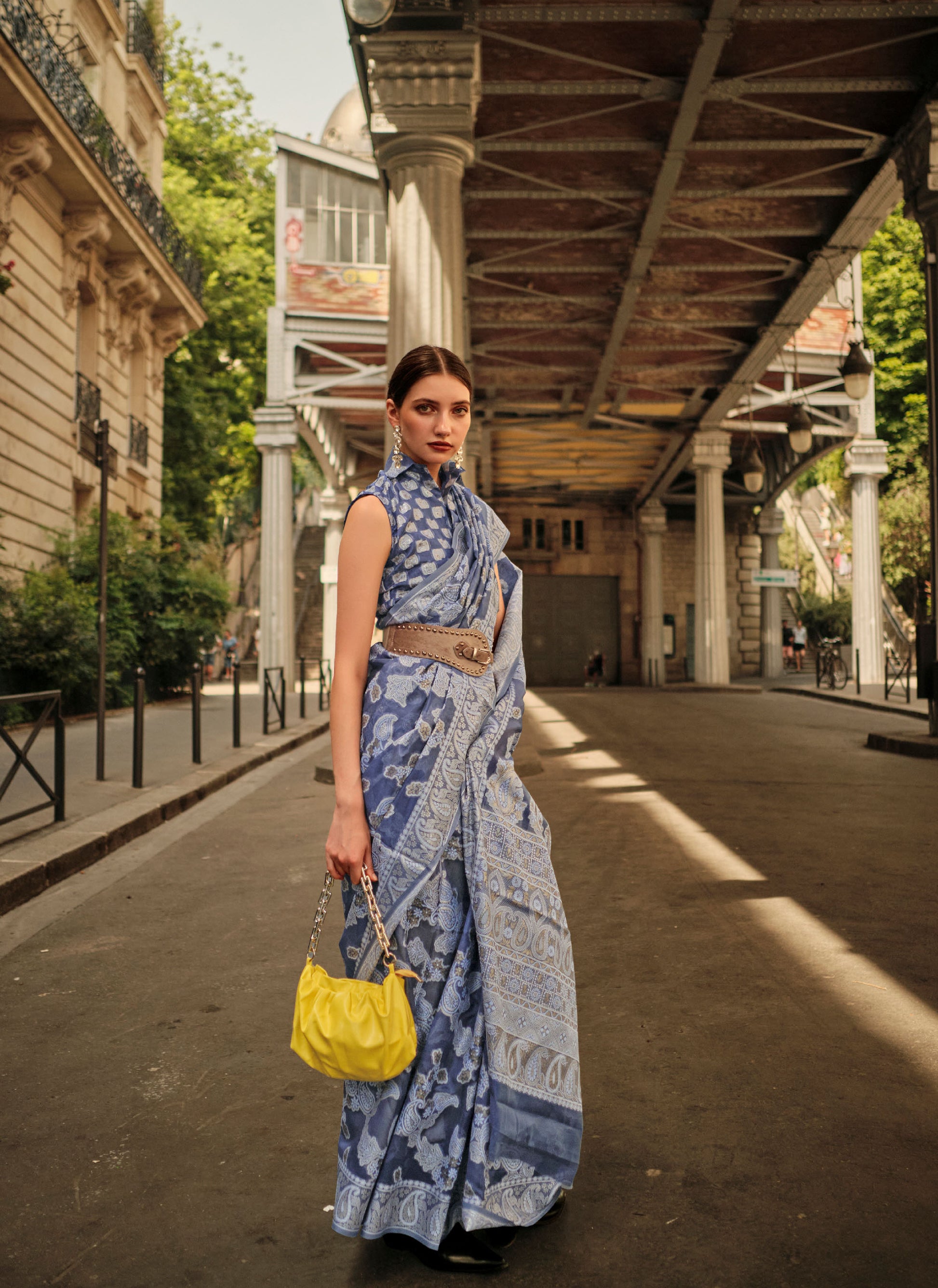 Does your wardrobe need more versatility? Then, check out this. Let your skin feel the refreshing touch as you adorn this superior-quality lightweight Saree to match the overall modest design.