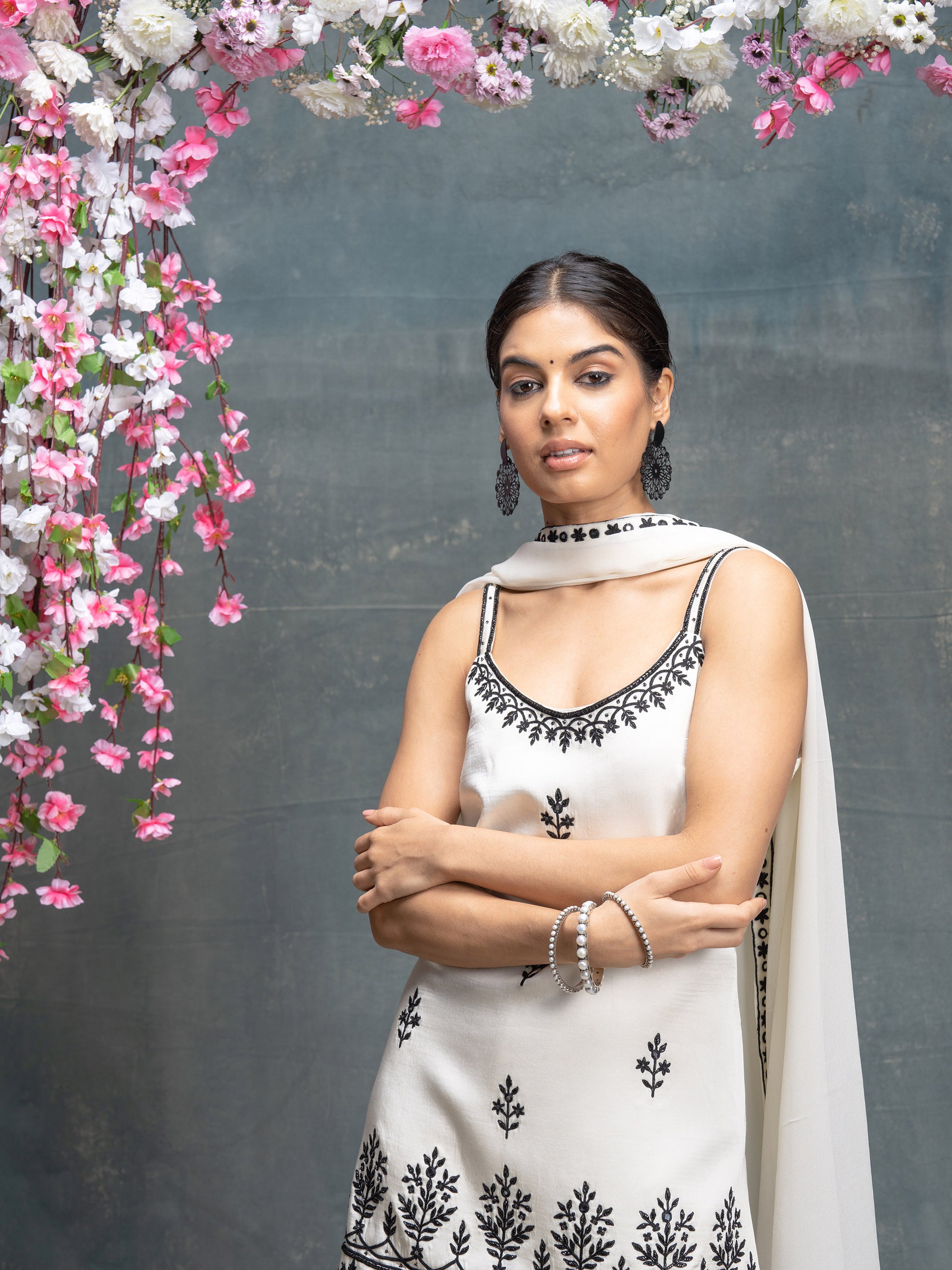 Ivory And Black Gharara Set With Mirror And Dori Work Embroidery
