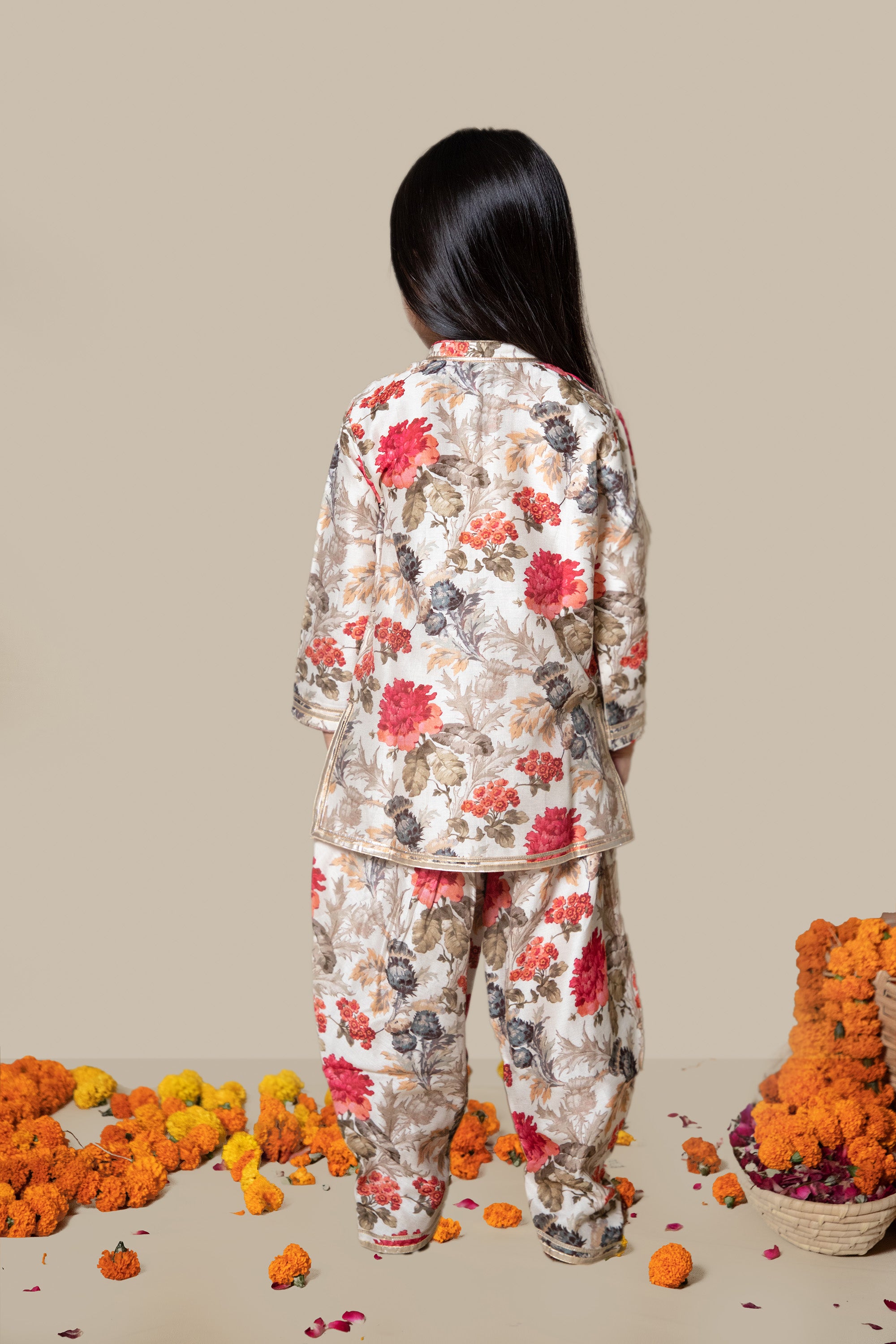 Ivory Floral Dhoti Kurta comes with Net Dupatta