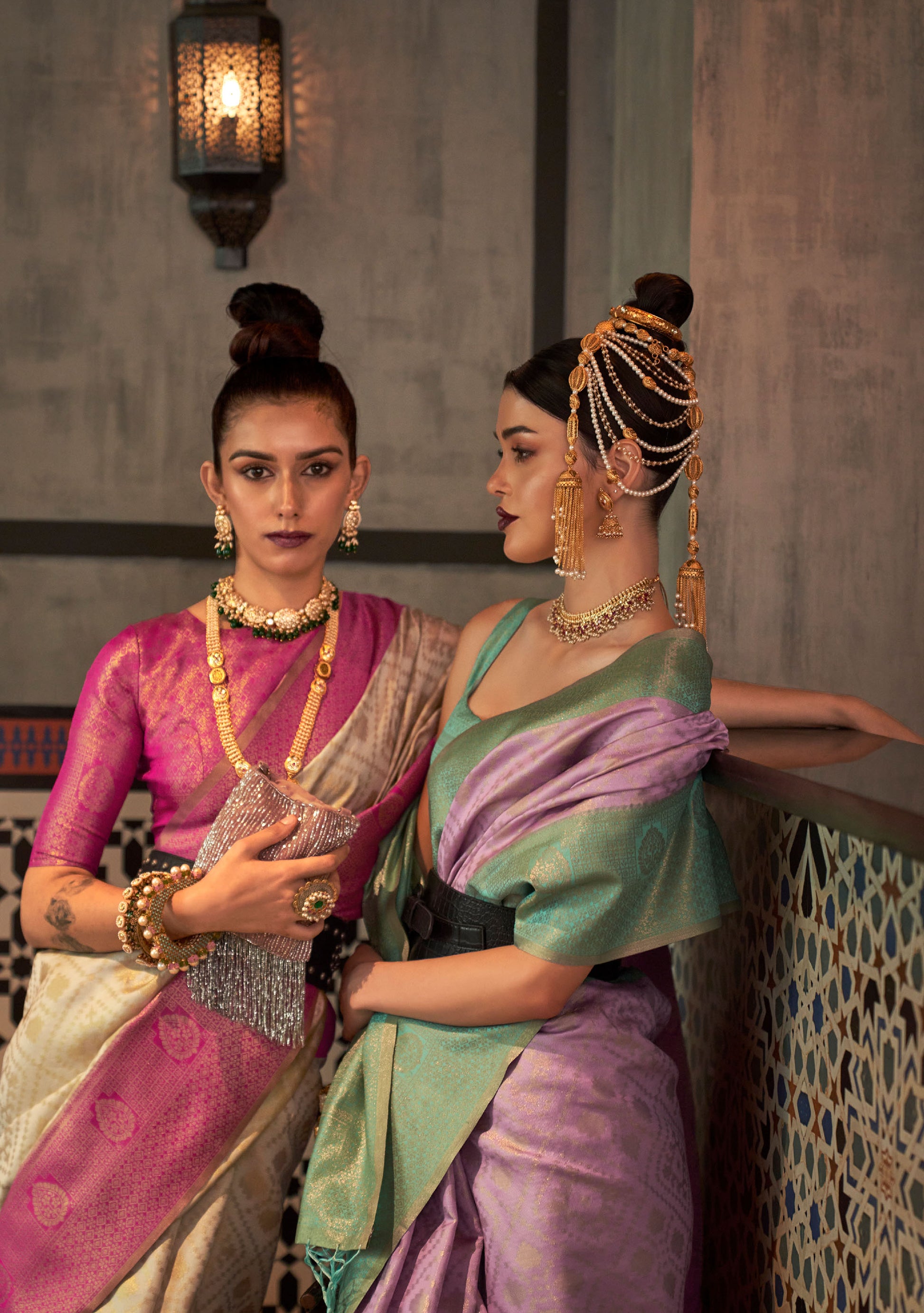 Beige Kaizaa Silk Zari Base Chaap Handloom Saree