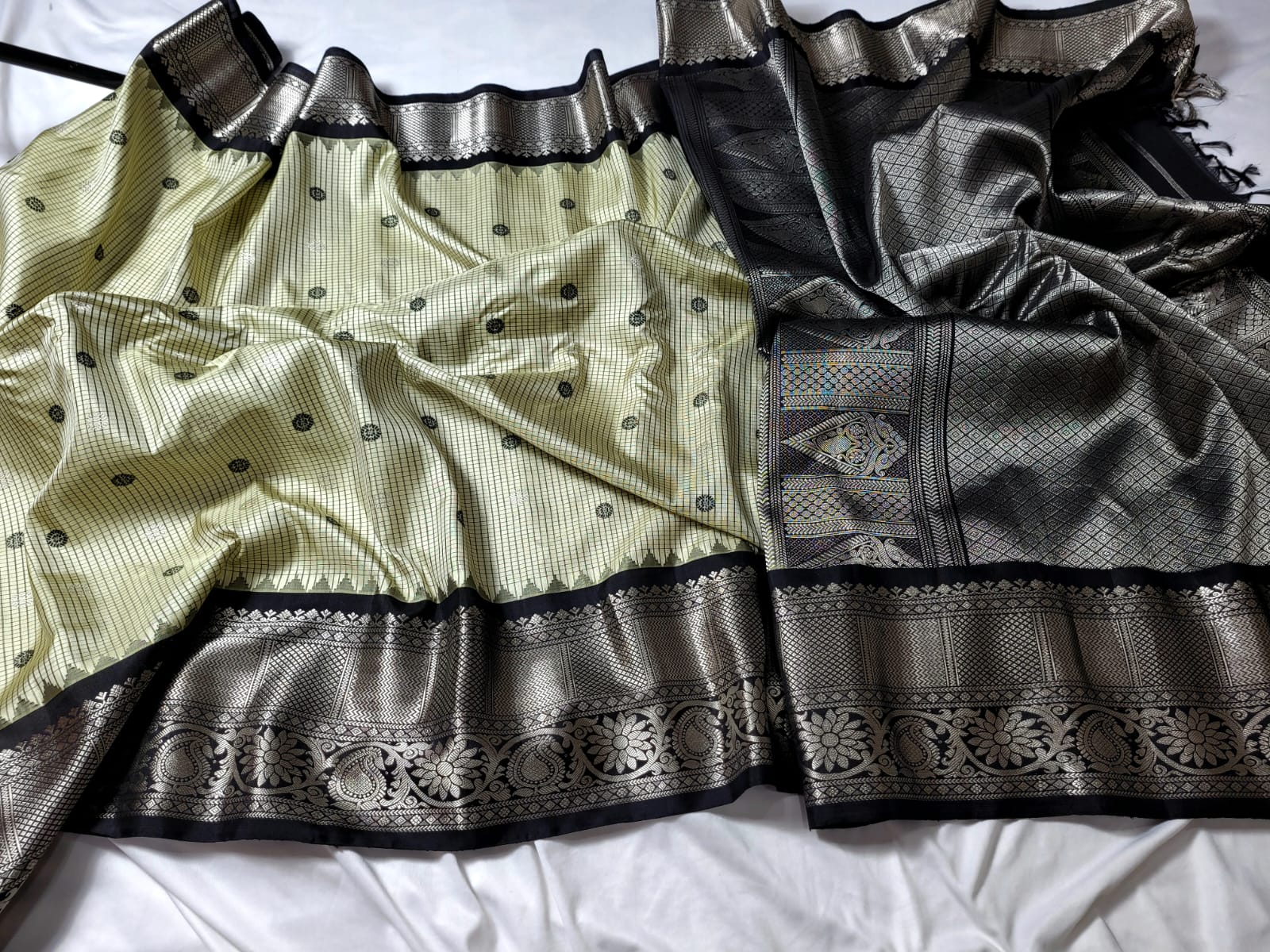 Ivory with Black Pallu Pure Gadwal Pattu handloom Saree
