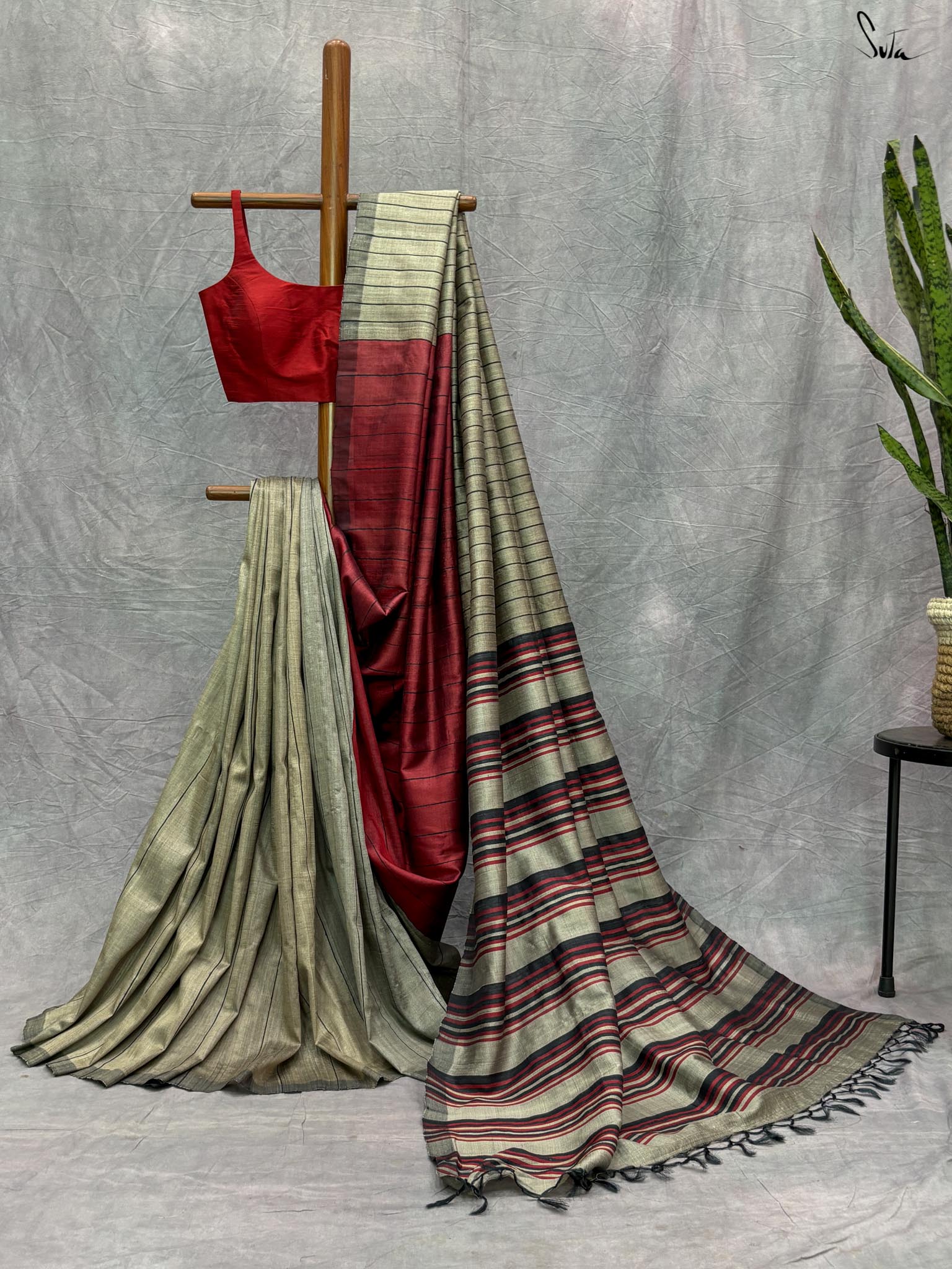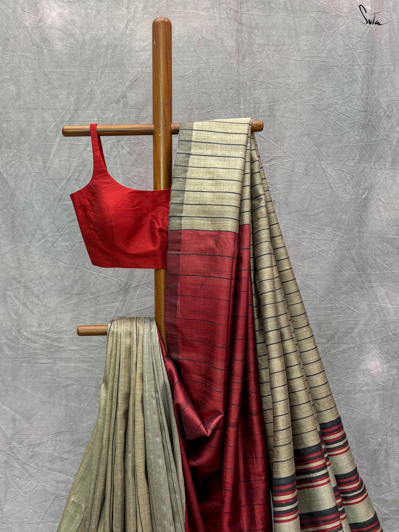 Wear a piece of elegance with this Tussar silk saree with cutwork patchwork designs that make for a gorgeous, spotlight-ready drape!