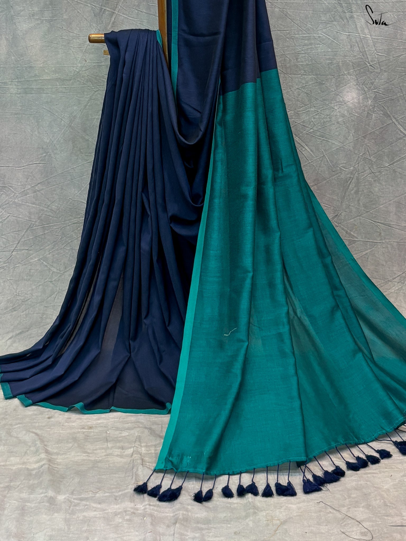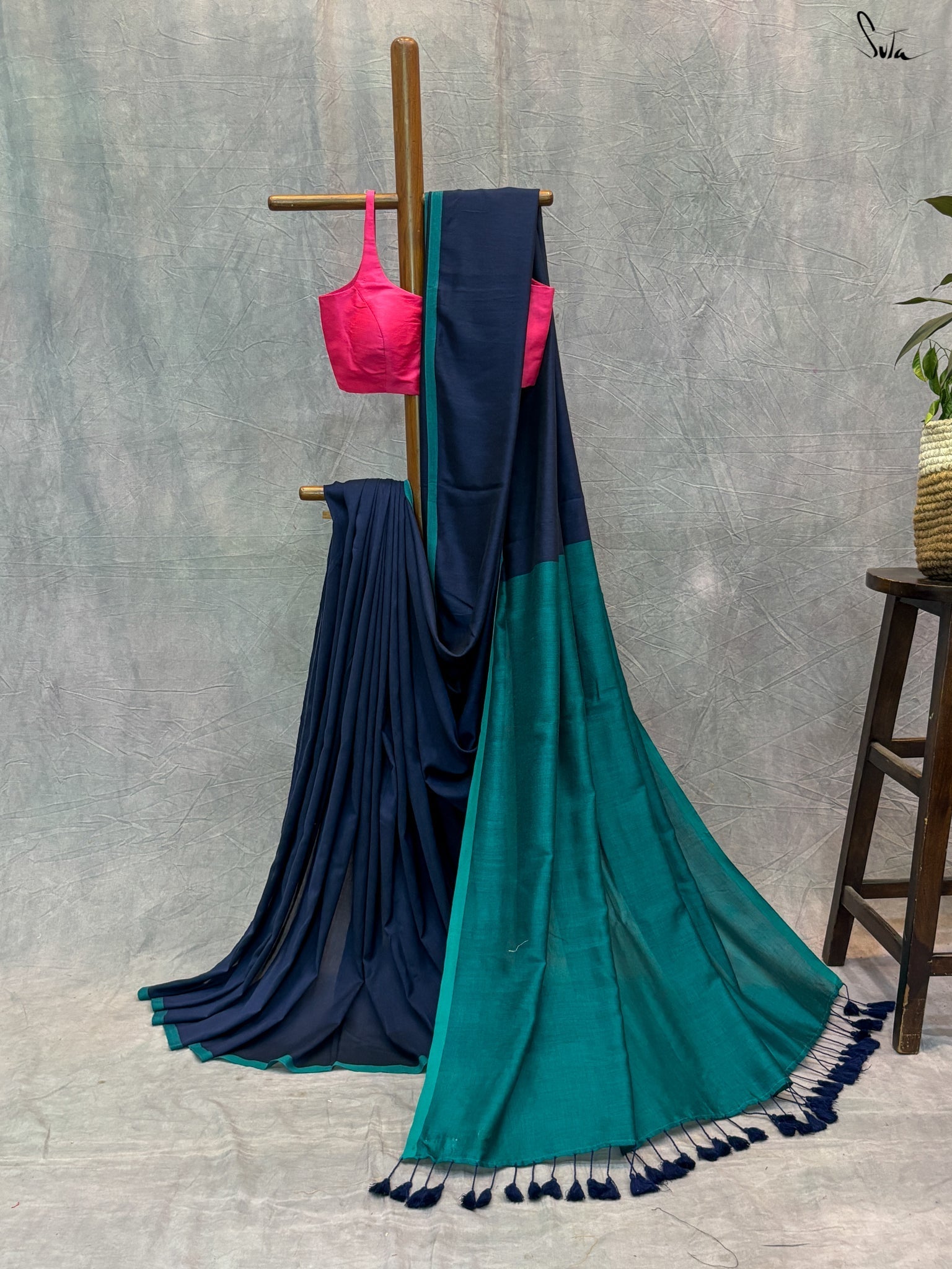 Cotton fabric dates back to some of the most ancient civilisations and it has a strong presence in the modern wardrobe as well. The softness and lightness of cotton combined with its strength and versatility makes it one of the most popular choices, especially for the Indian climate. We took this simple, elegant fabric and combined it with acrylic for that added sheen and voila! We love what we see and the saree falls so beautifully that it feels like second-skin!