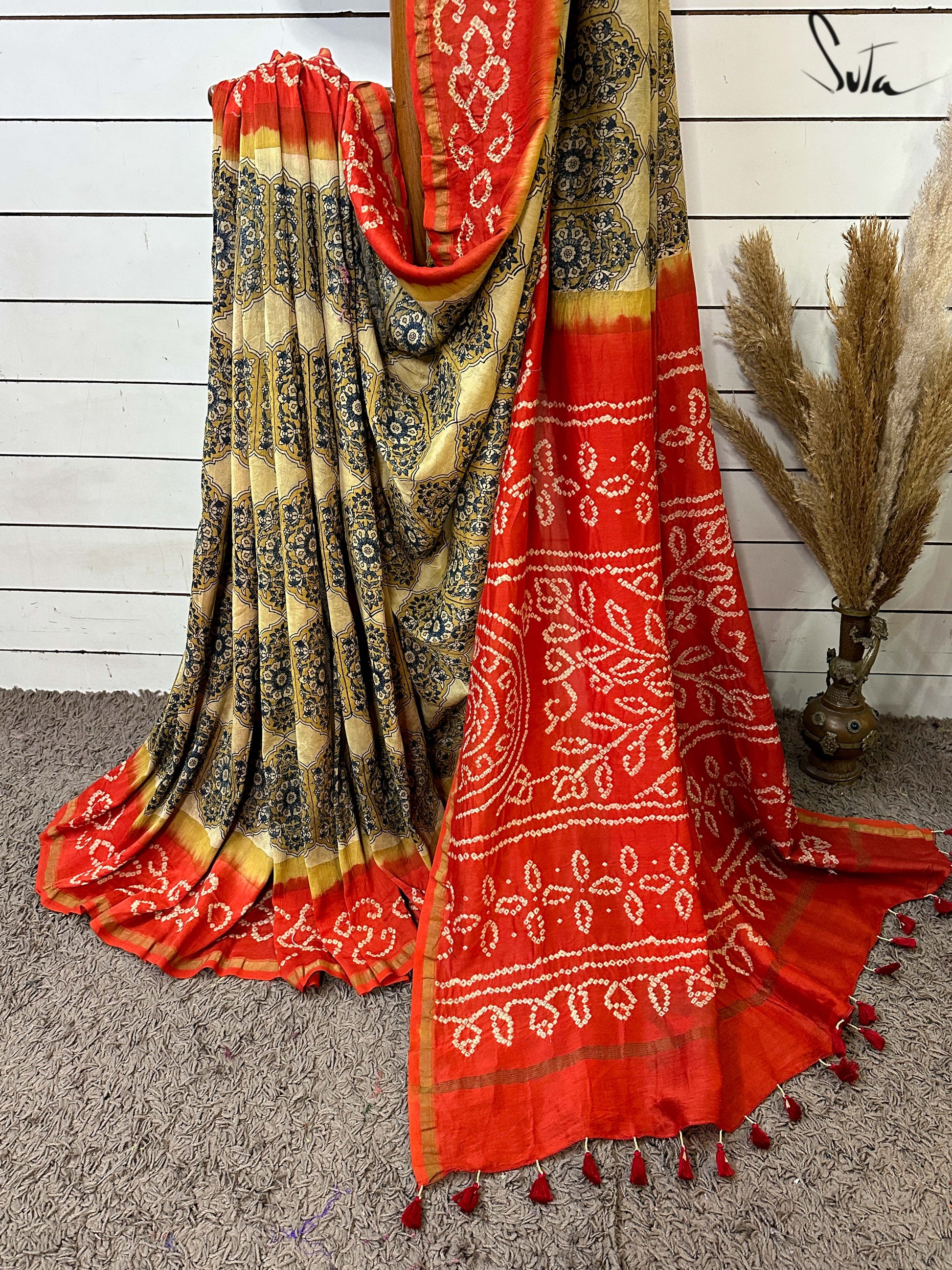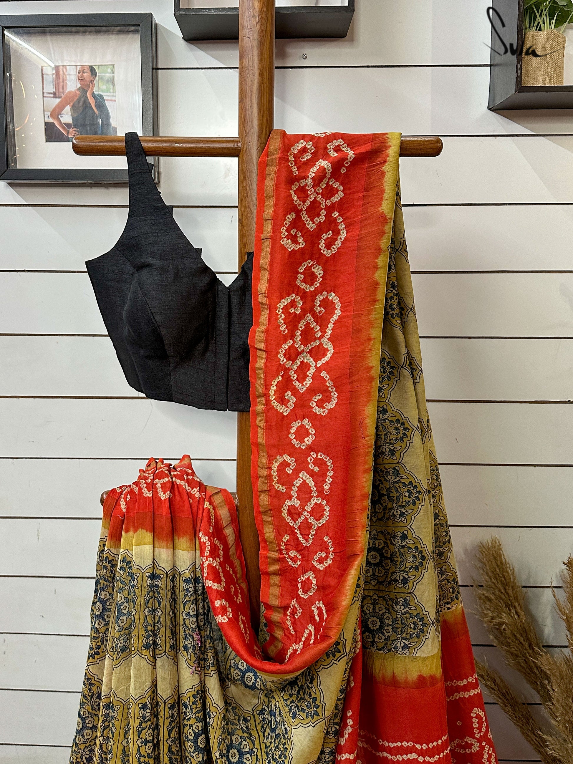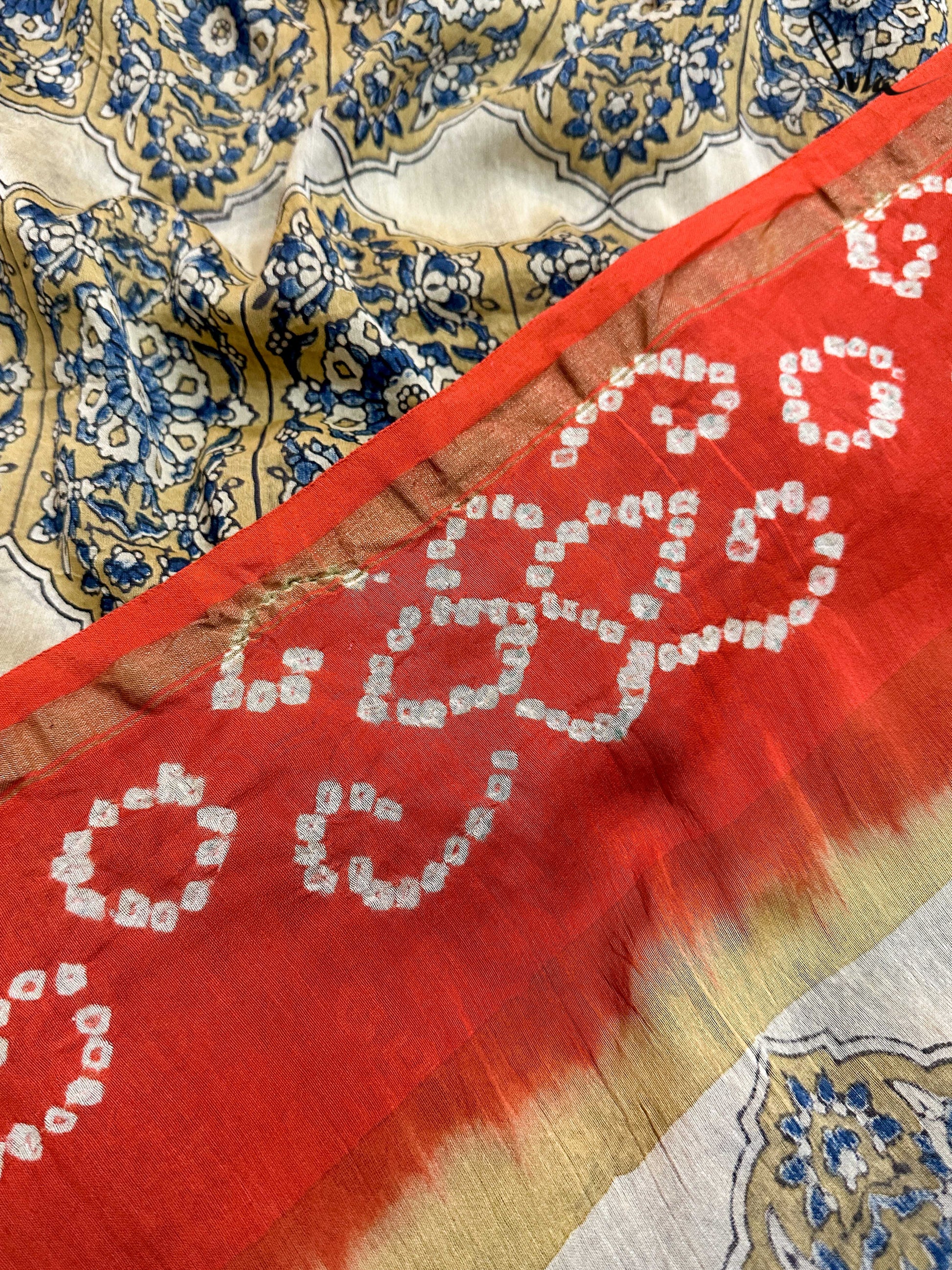 Fabric: Saree chanderi pbb ajrakh body bandhani